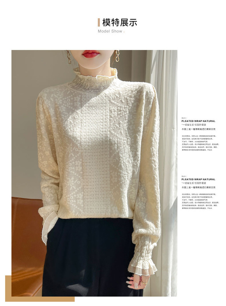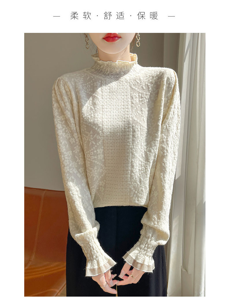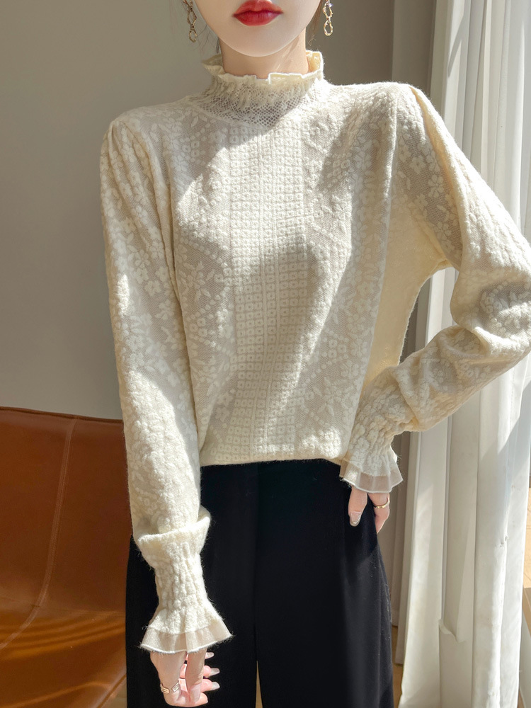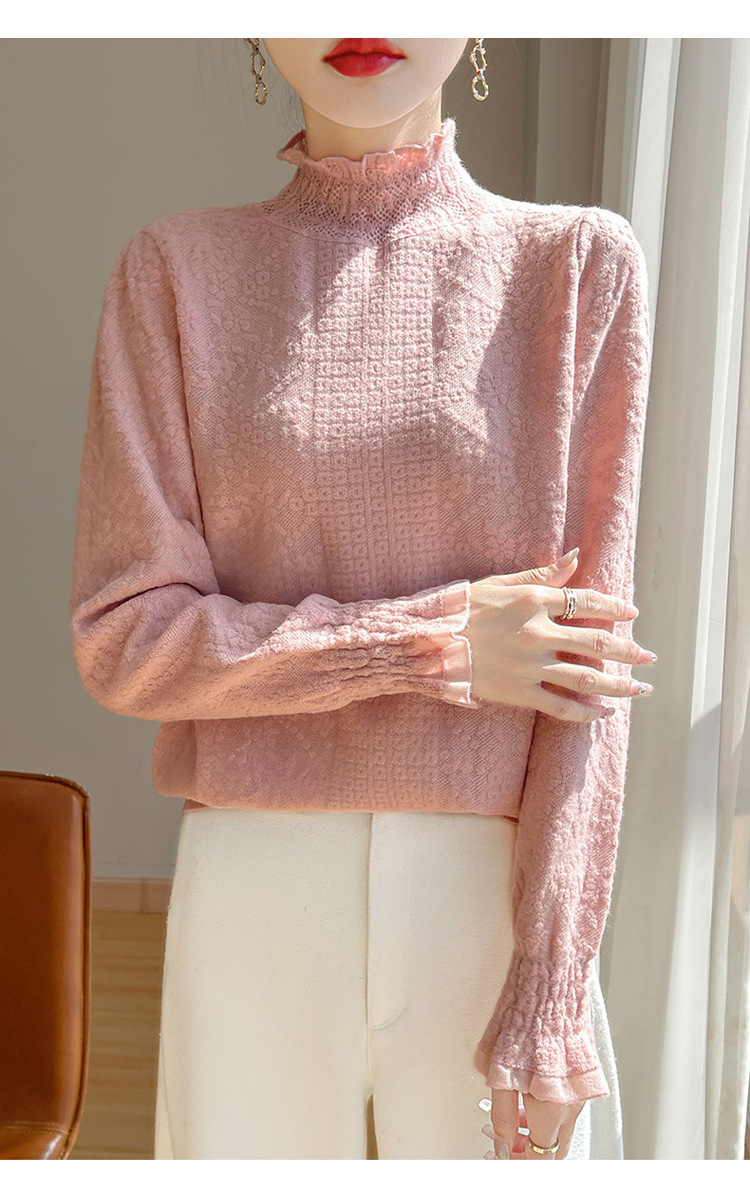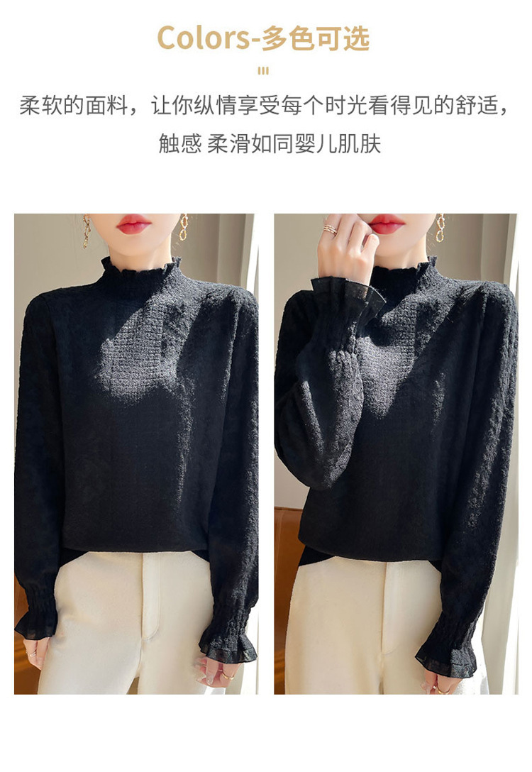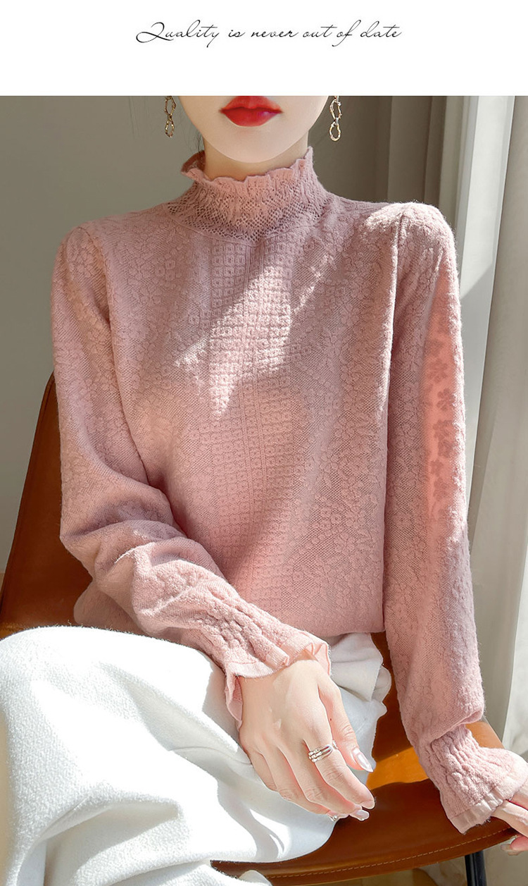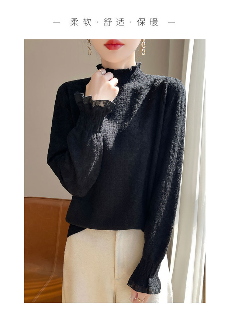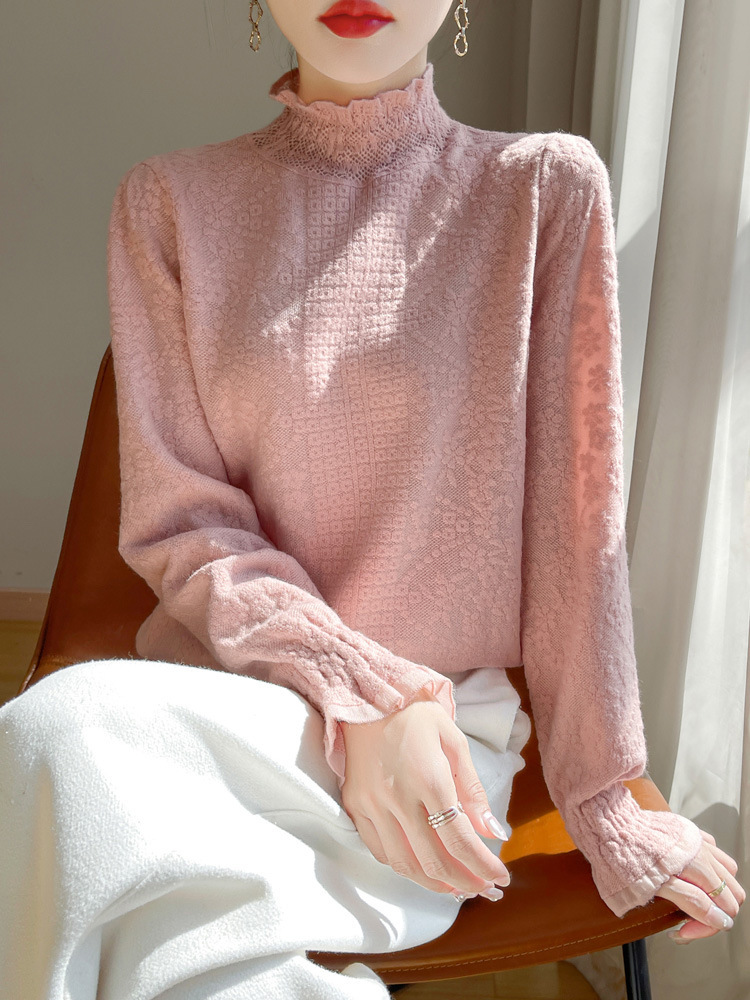 Нижняя рубашка новый топ свободный трикотаж с воротником свитер осень-зима сплошной гриб 2025 половинный воротник женская осень-зима