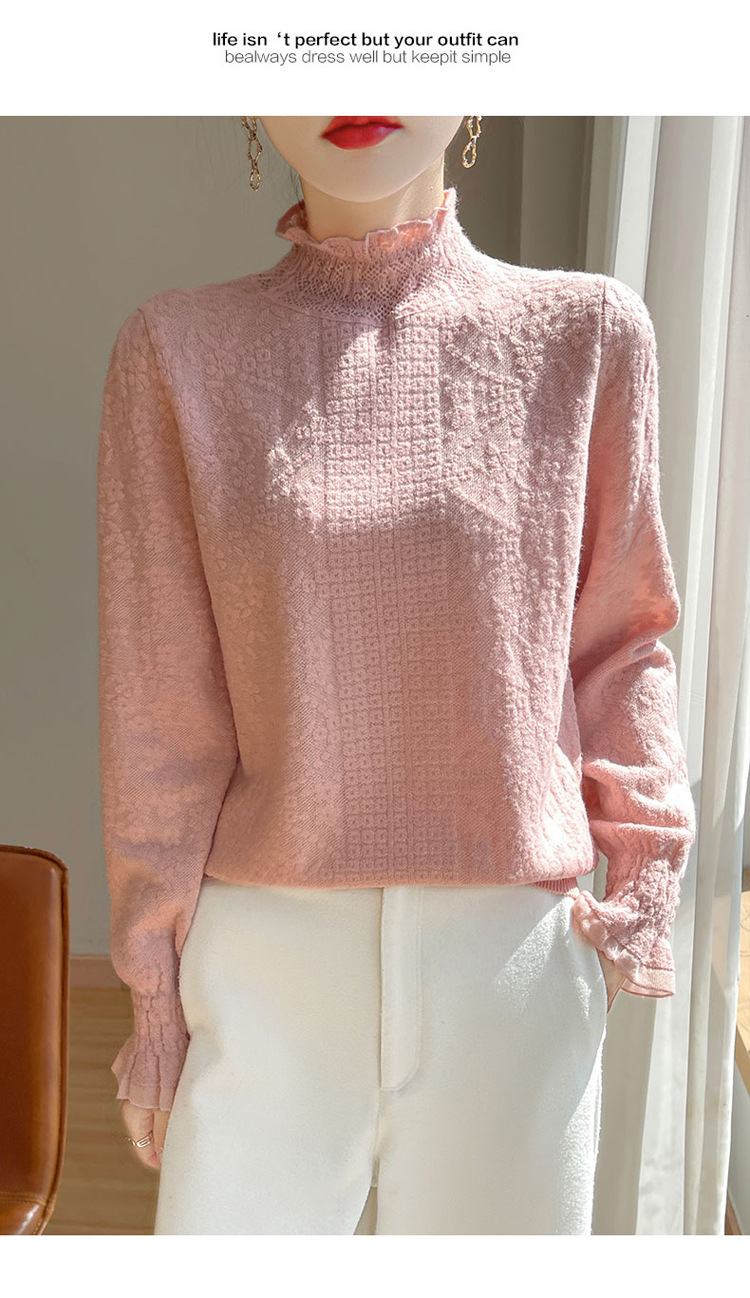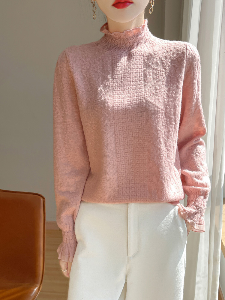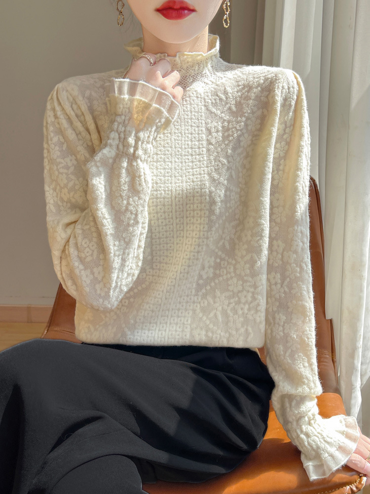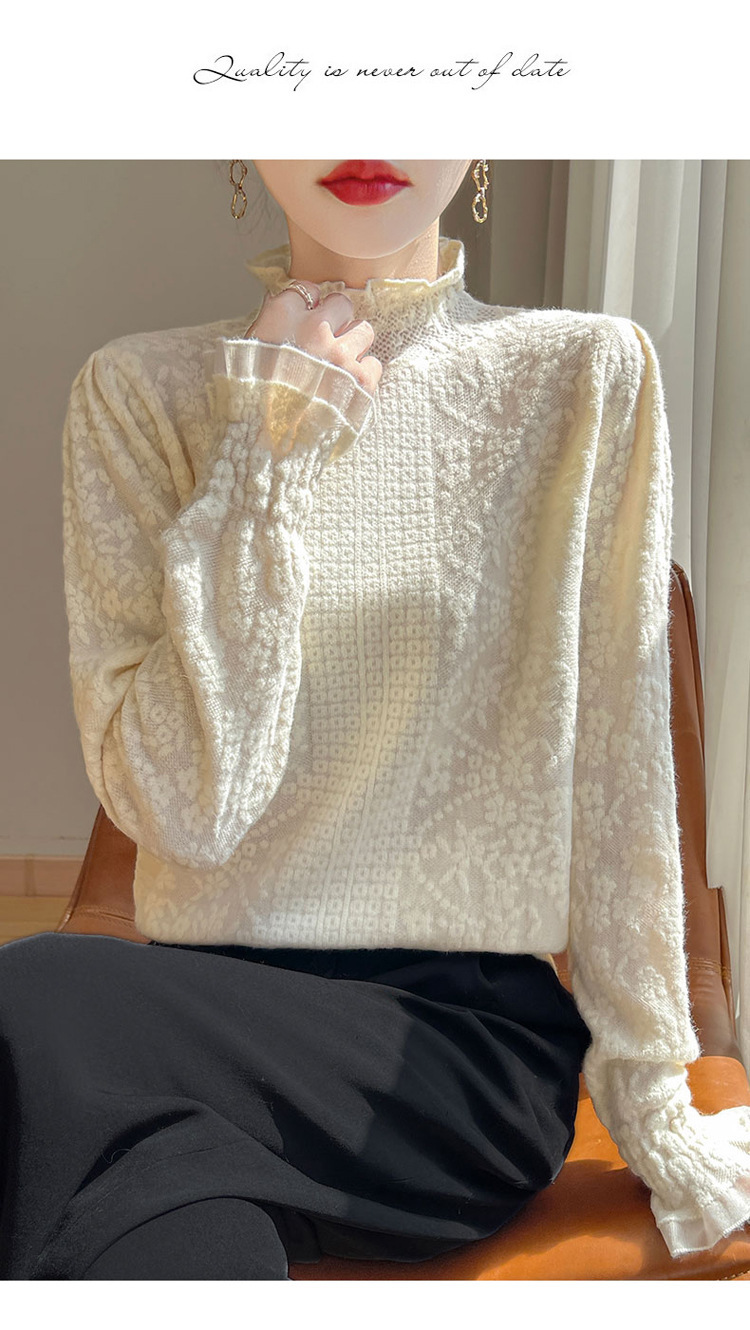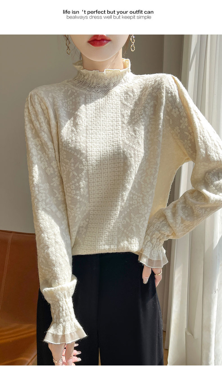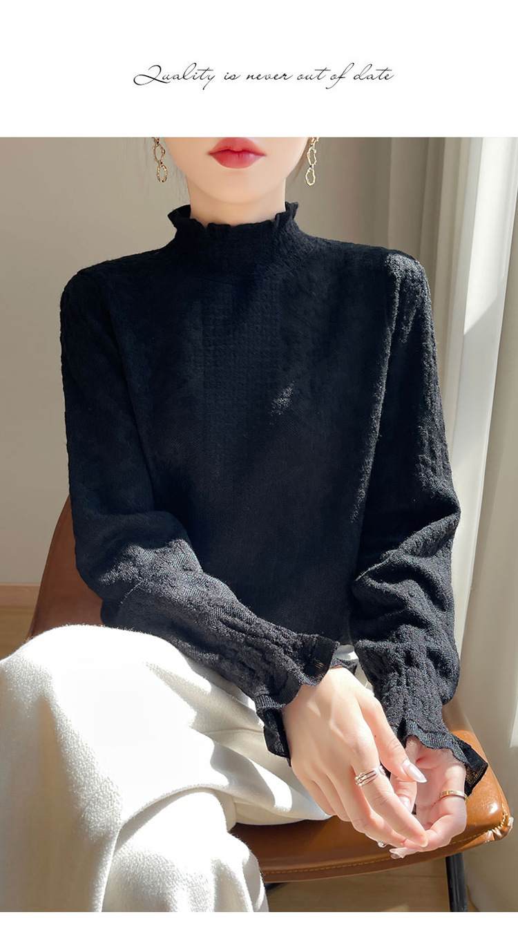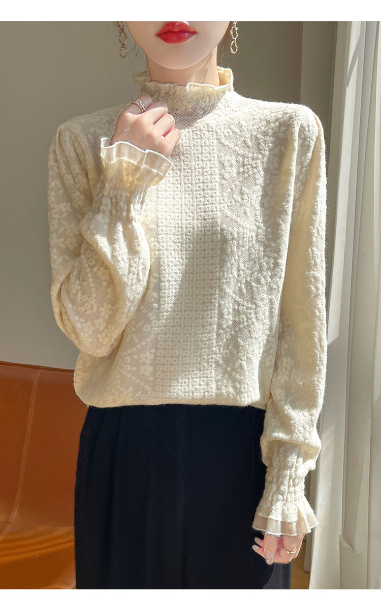 Нижняя рубашка новый топ свободный трикотаж с воротником свитер осень-зима сплошной гриб 2025 половинный воротник женская осень-зима
