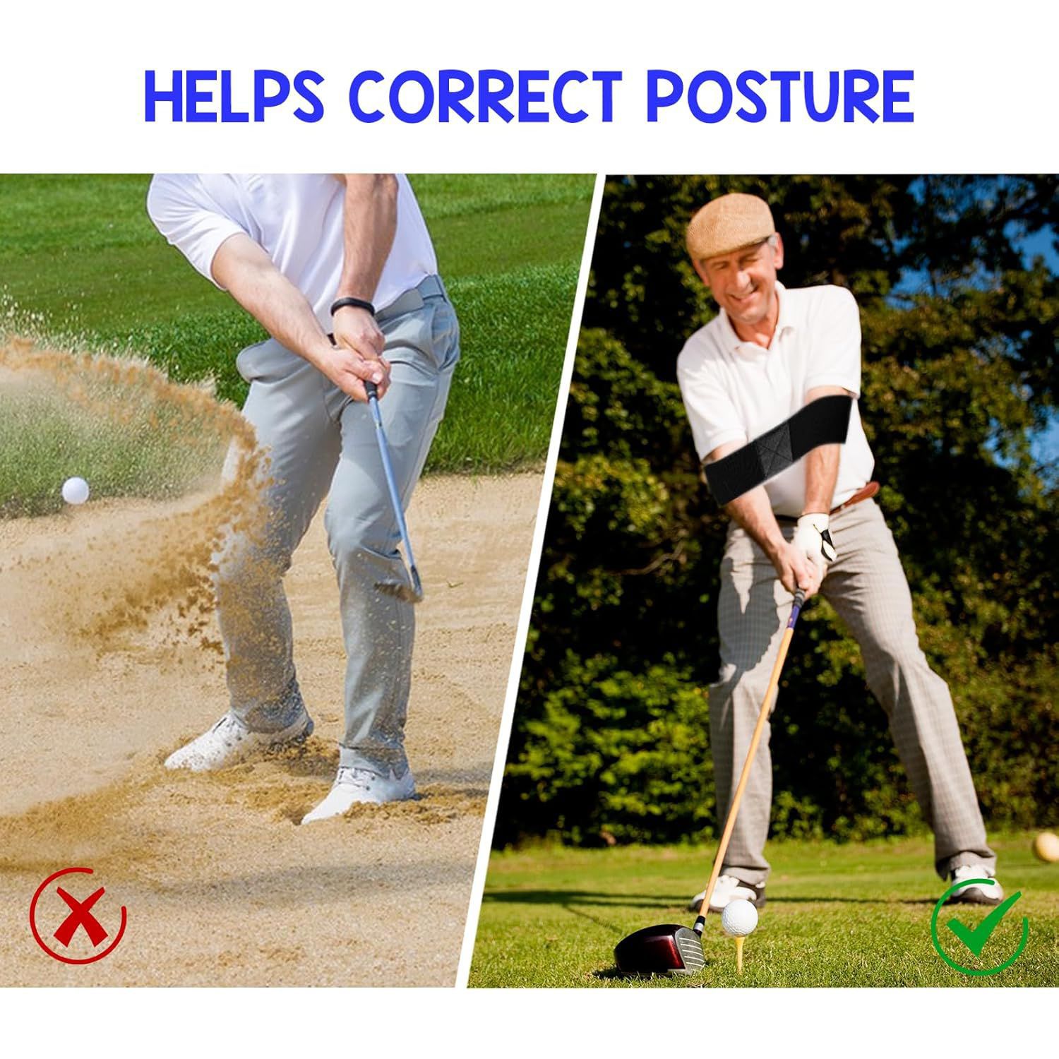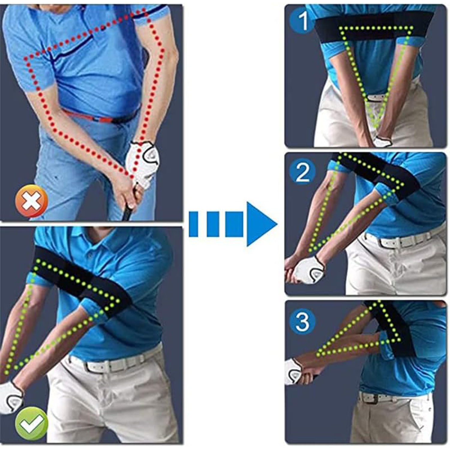 正确的上挥杆姿势是右手上臂内侧应该紧贴右臂腋窝,右臂手肘与伸直的左臂呈一个倒三角形,然而一些高球初学者在上杆的时候右臂向上抬起而并非紧贴身体。本品可以有效帮助球手在上挥杆时对右臂起到束缚作用。从而达到使双臂保持稳定的正确姿势。