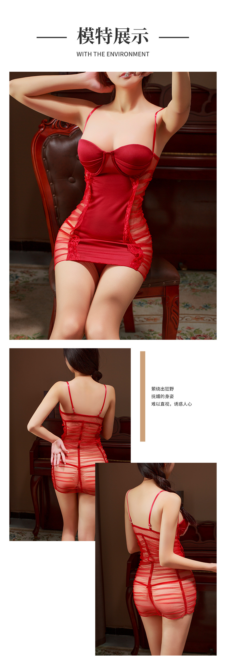Сексуальная перспективная пижамная маленькая грудь, сшитая сморщенные сетчатые пряжи, прозрачный набор ночной рубашки, сексуальный глубокий V эротический нижнее белье