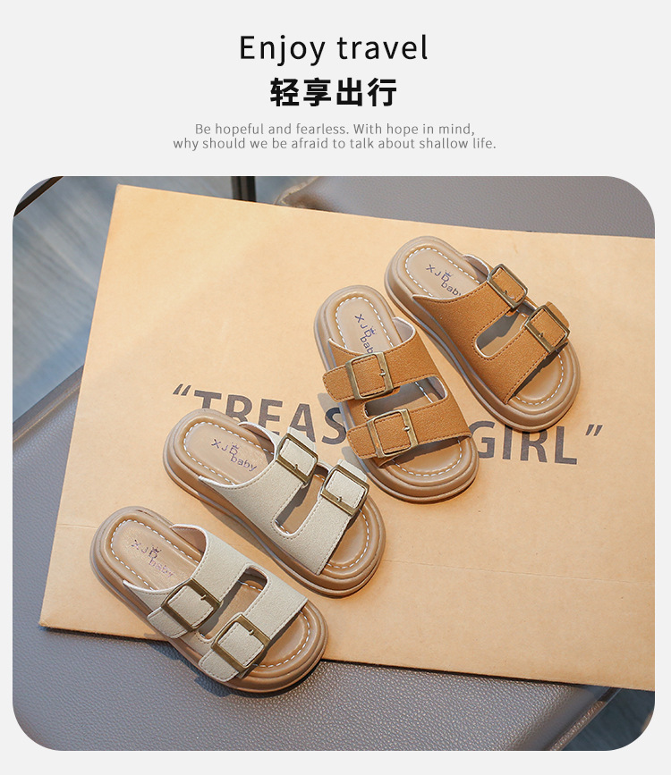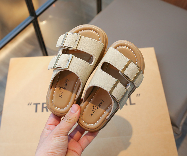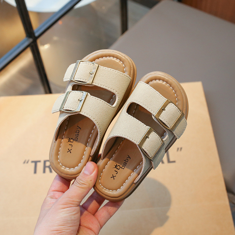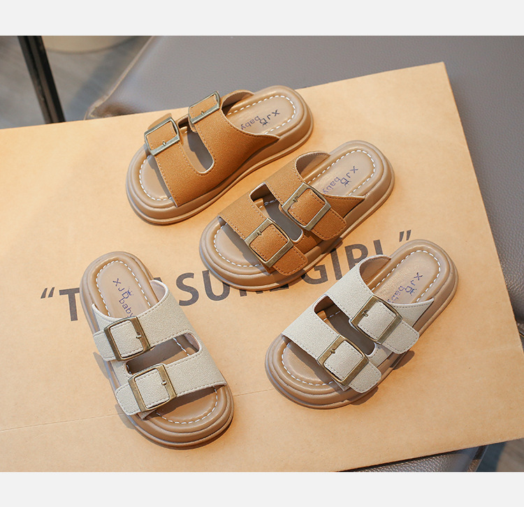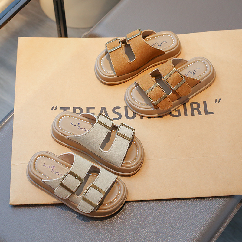 Детские дикие модные повседневные холодные тапочки 2025 новая летняя девушка с металлической пряжкой