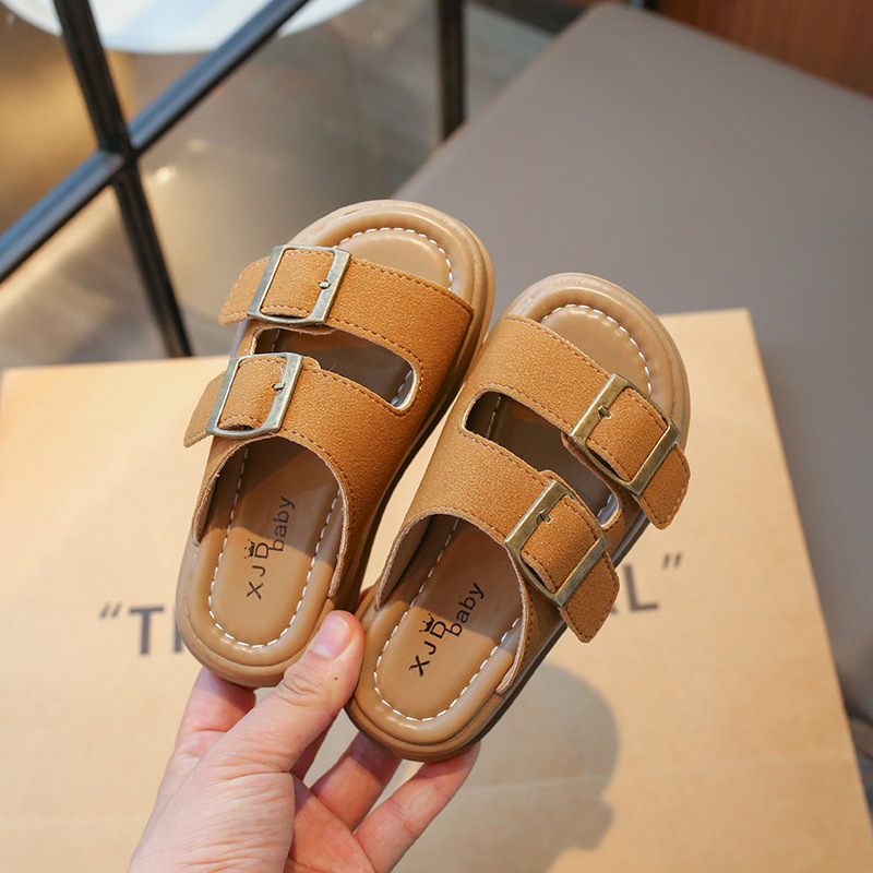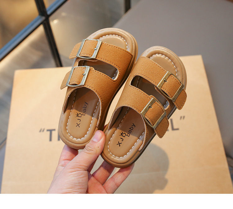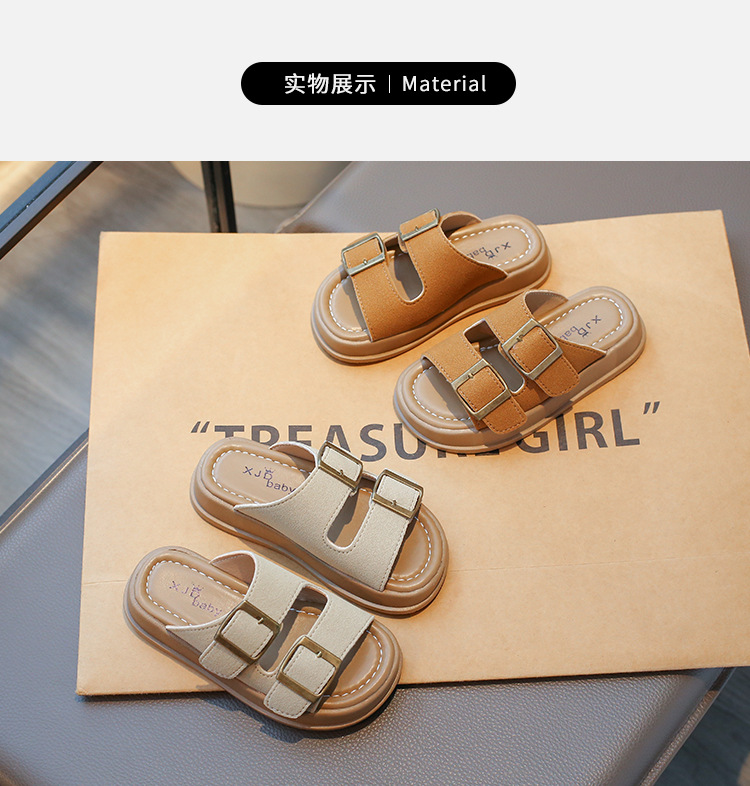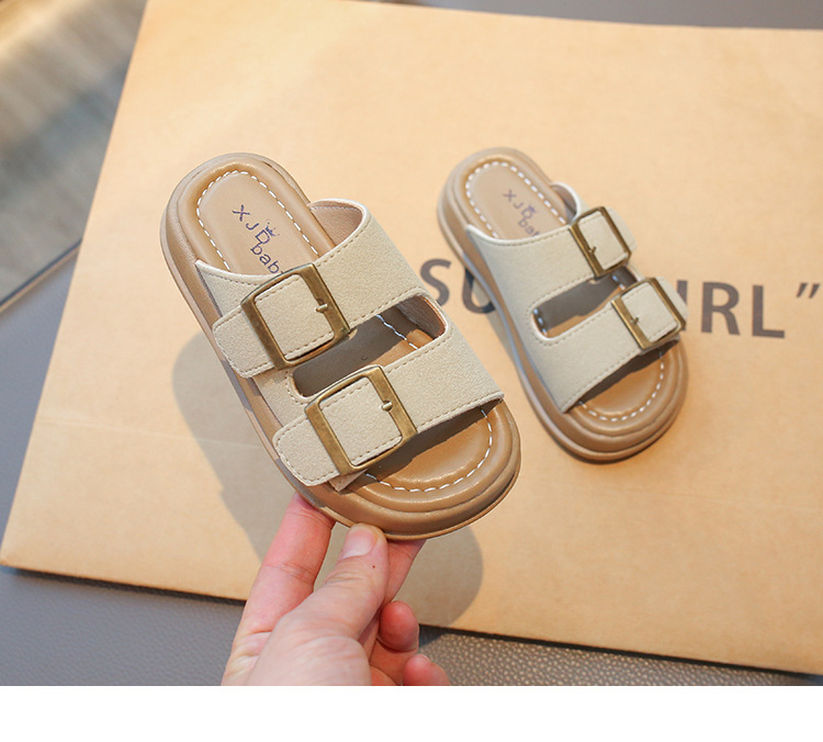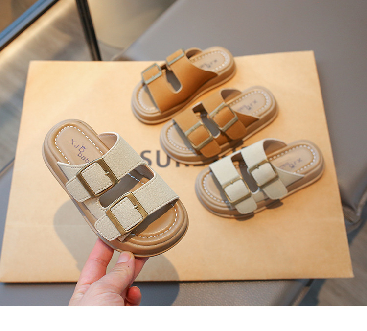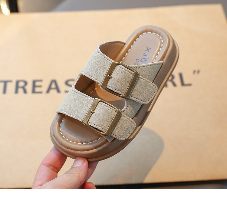Детские дикие модные повседневные холодные тапочки 2025 новая летняя девушка с металлической пряжкой