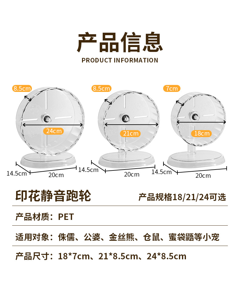 Прозрачное беговое колесо для хомяка с принтом 18см + кронштейн (комбинация); Прозрачное беговое колесо для хомяка с принтом 21см + кронштейн (комбинация); Прозрачное беговое колесо для хомяка с принтом 24см + подставка (комбинация)