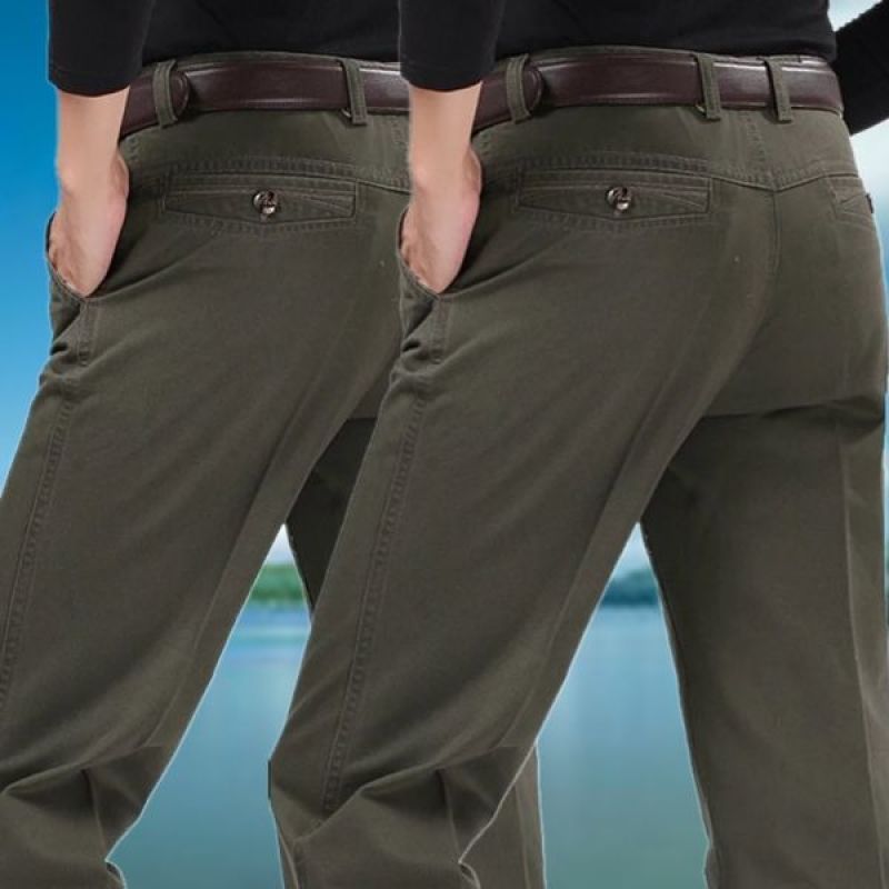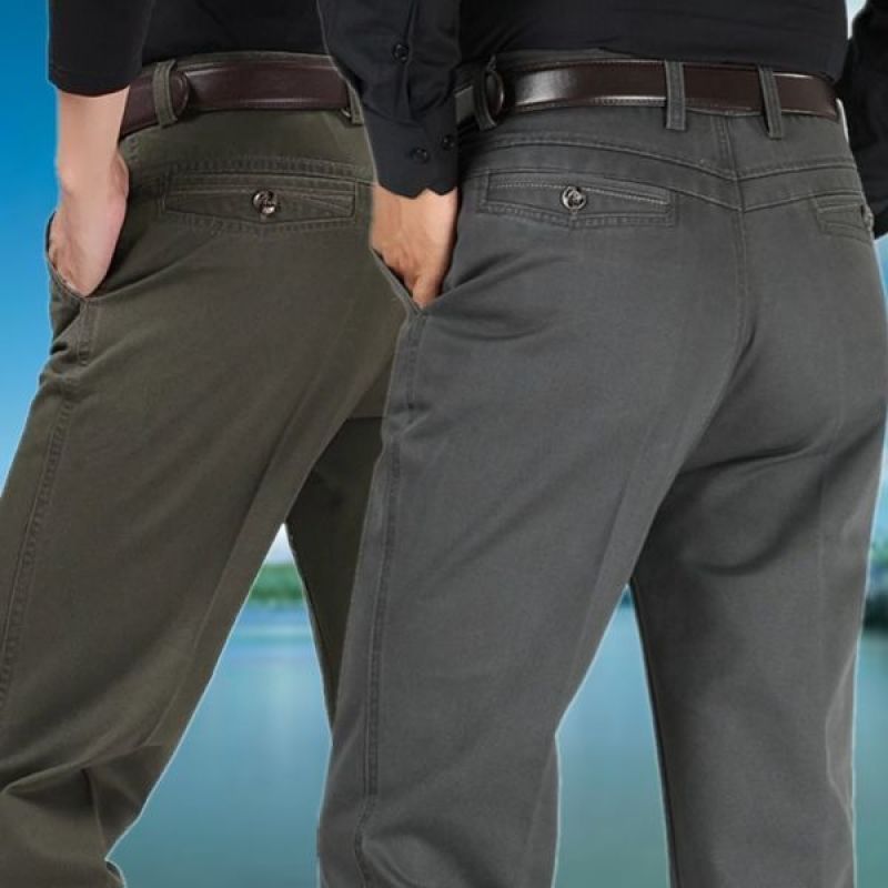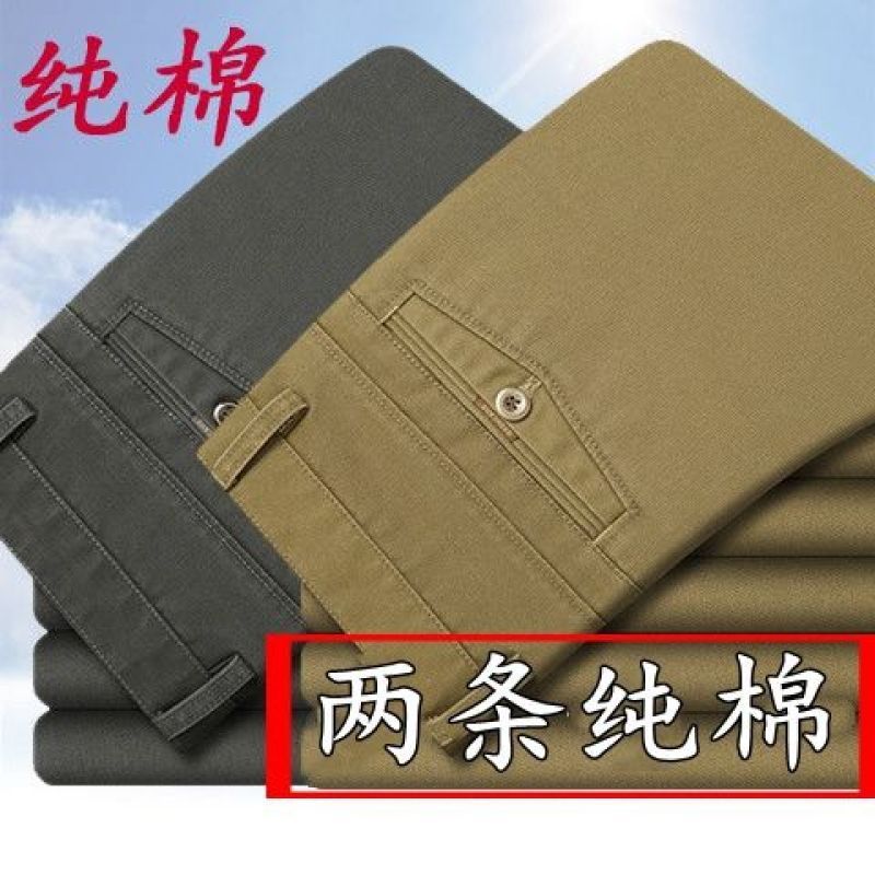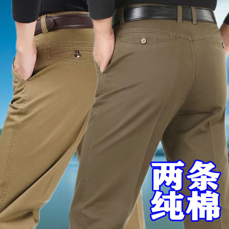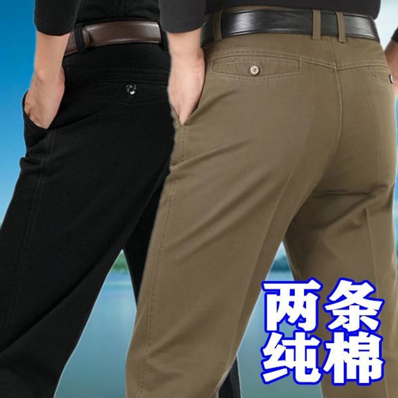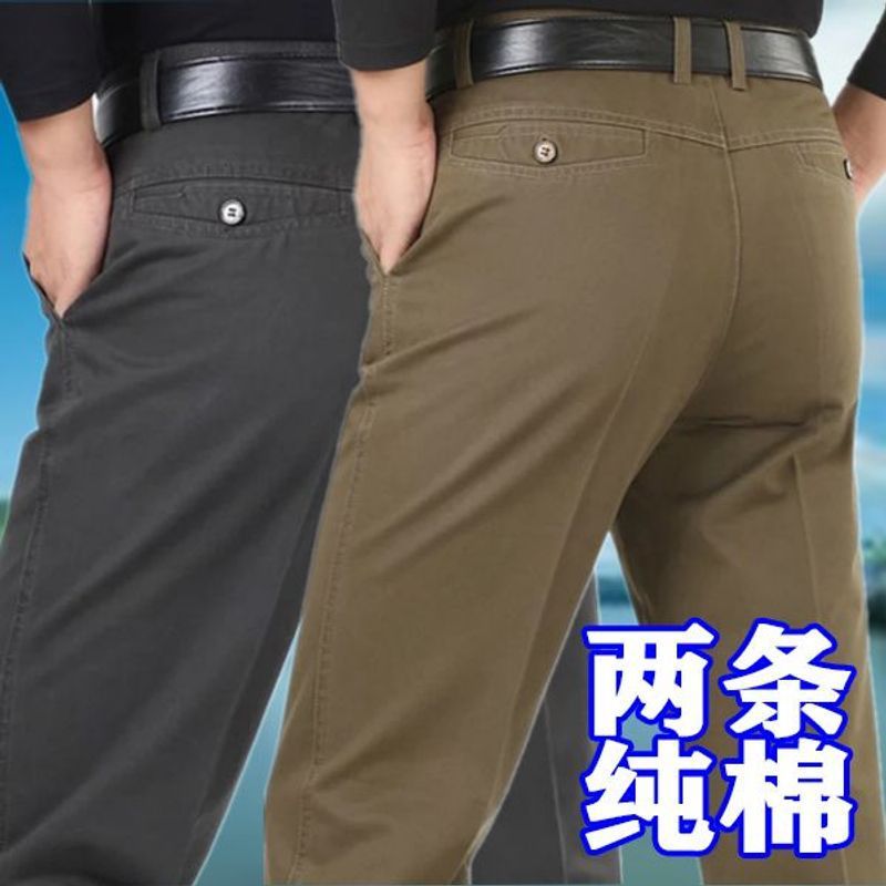 Осенние и зимние толстые хлопковые повседневные брюки среднего и пожилого возраста мужские брюки с высокой талией свободные прямые брюки среднего возраста с высокой талией