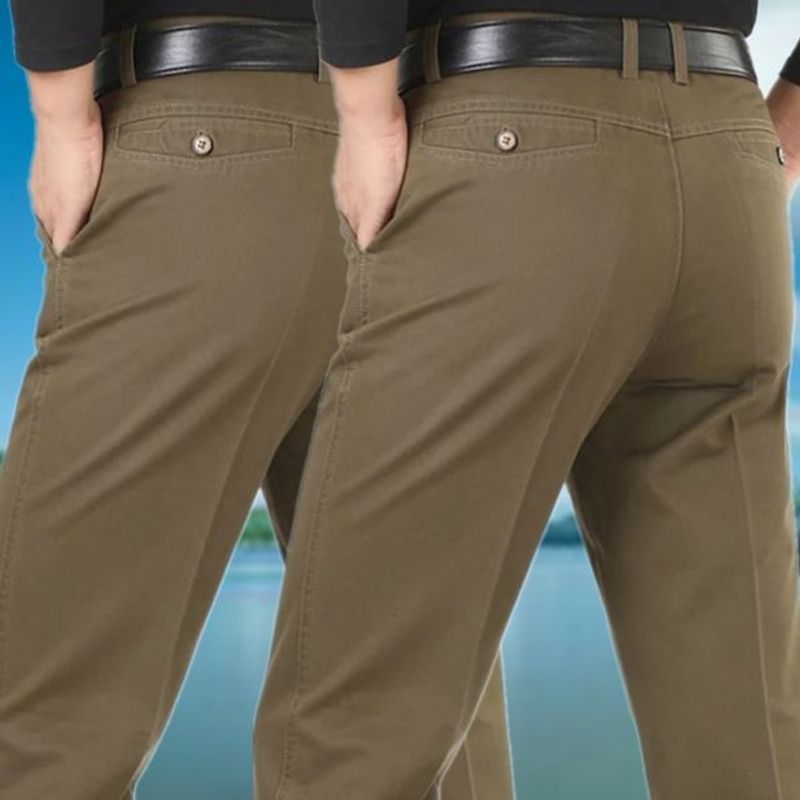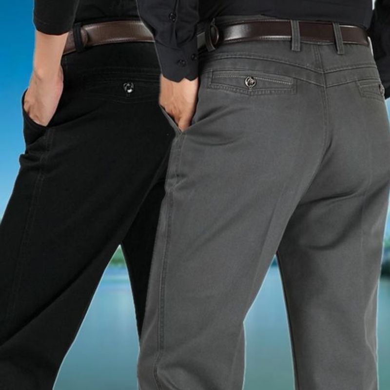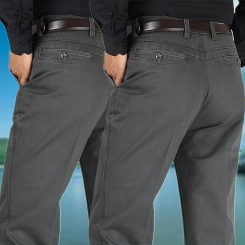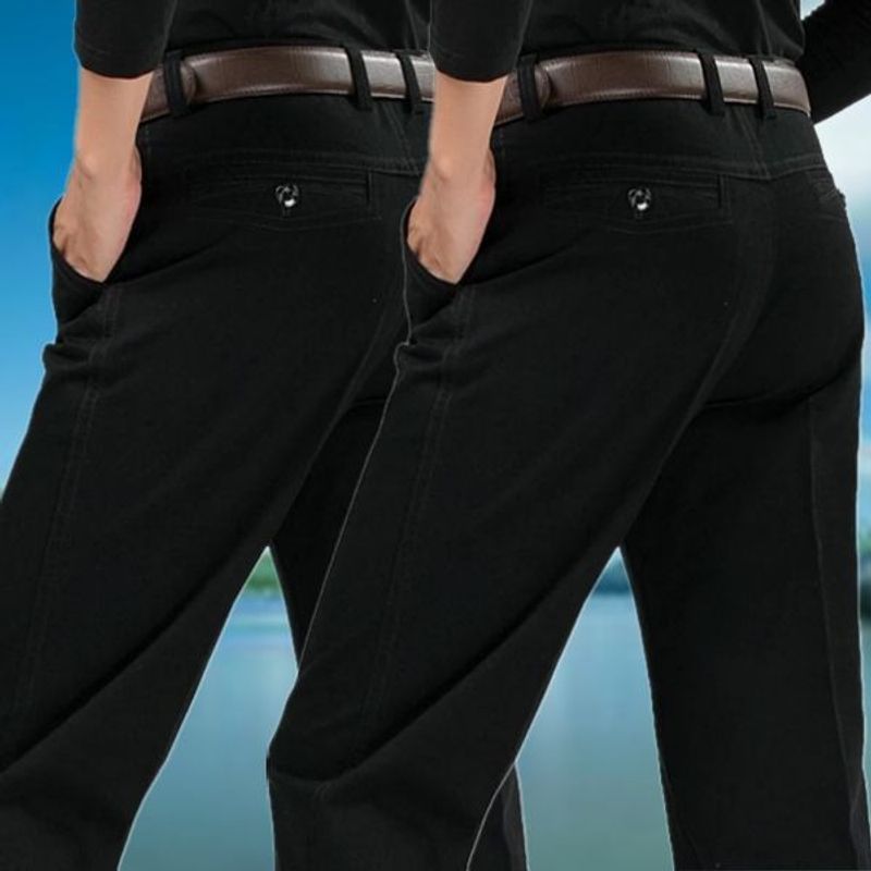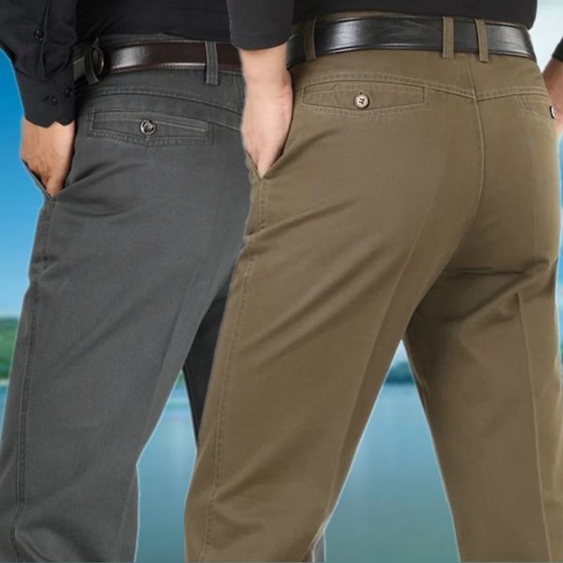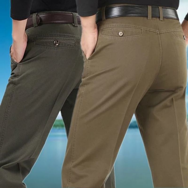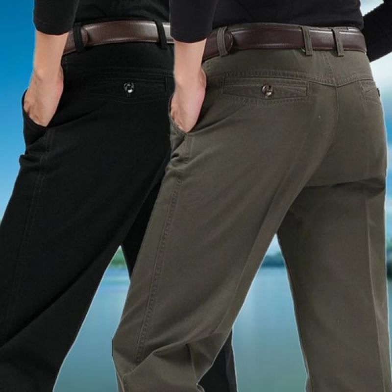 Осенние и зимние толстые хлопковые повседневные брюки среднего и пожилого возраста мужские брюки с высокой талией свободные прямые брюки среднего возраста с высокой талией