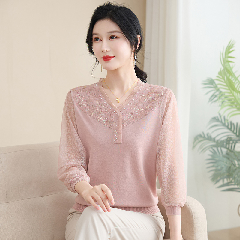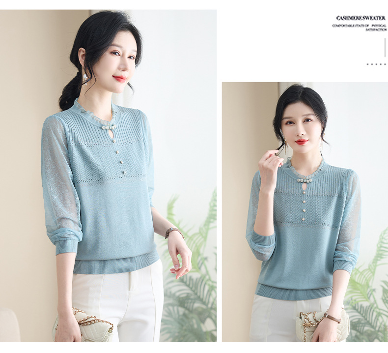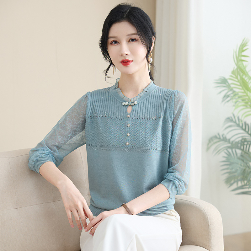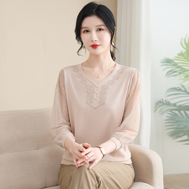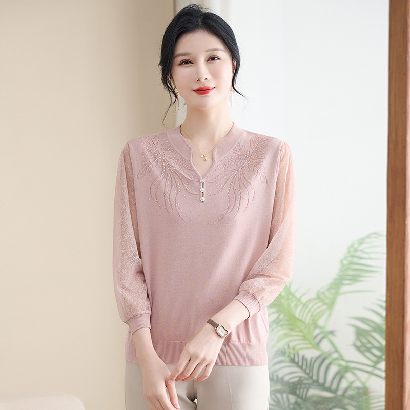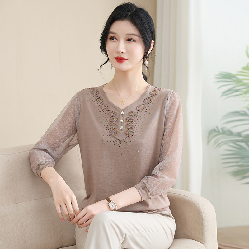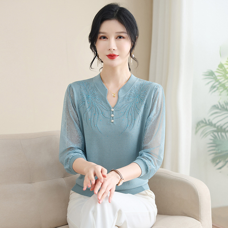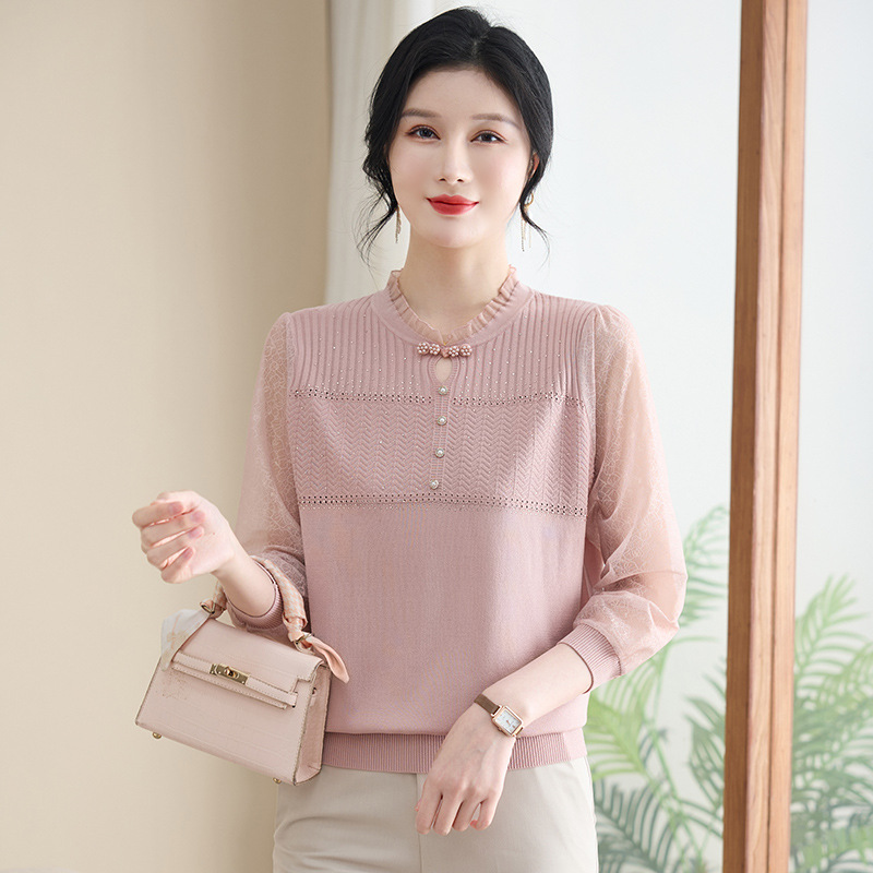 Мама средних лет весенняя трикотажная рубашка 2025 новый модный иностранный стиль