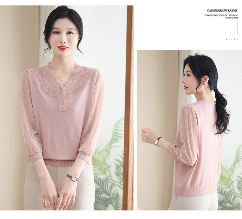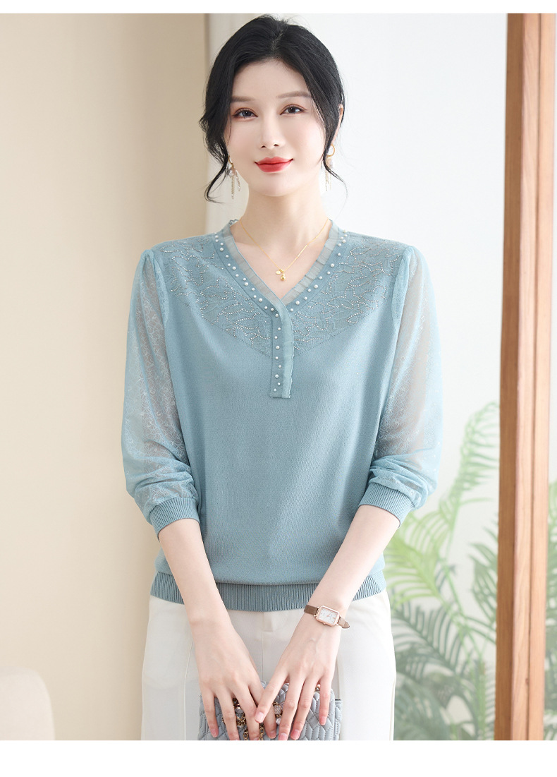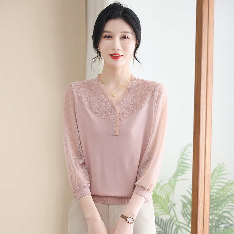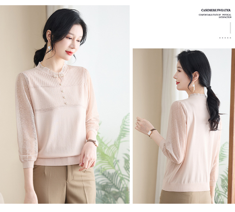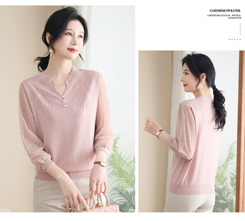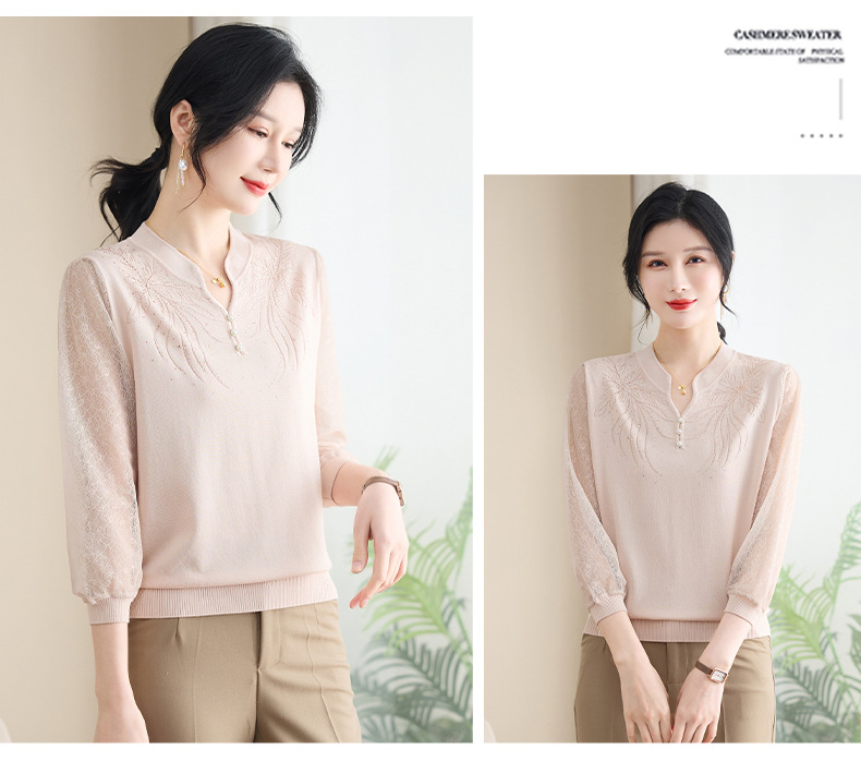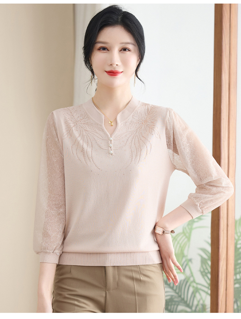 Мама средних лет весенняя трикотажная рубашка 2025 новый модный иностранный стиль