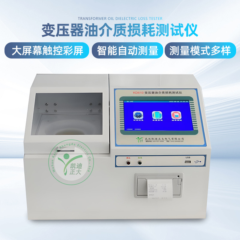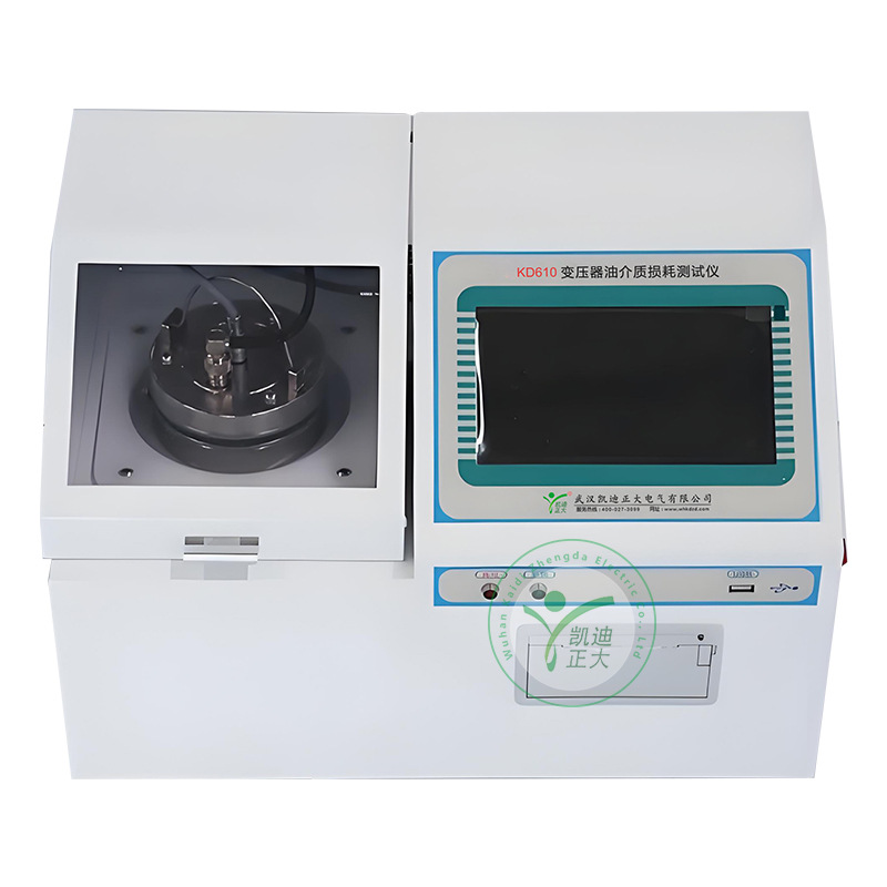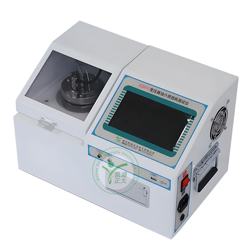 KD610绝缘油介质损耗测试仪是用于绝缘油等液体绝缘介质的介质损耗角及体积电阻率测试的一体化结构的高精密仪器。内部集成了介损油杯、温控仪、温度传感器、介损测试电桥、交流试验电源、标准电容器、高阻计、直流高压源等主要部件。其中加热部分采用了高频感应加热方式,该加热方式具备油杯与加热体非接触、加热均匀、速度快、控制方便等优点。交流试验电源采用AC-DC-AC转换方式,有效避免市电电压及频率波动对介损测试准确性影响,即便是发电机发电,该仪器也能正确运行。内部标准电容器为SF6充气三极式电容,该电容的介损及电容量不受环境温度、湿度等影响,保证仪器长时间使用后仍然精度一致。