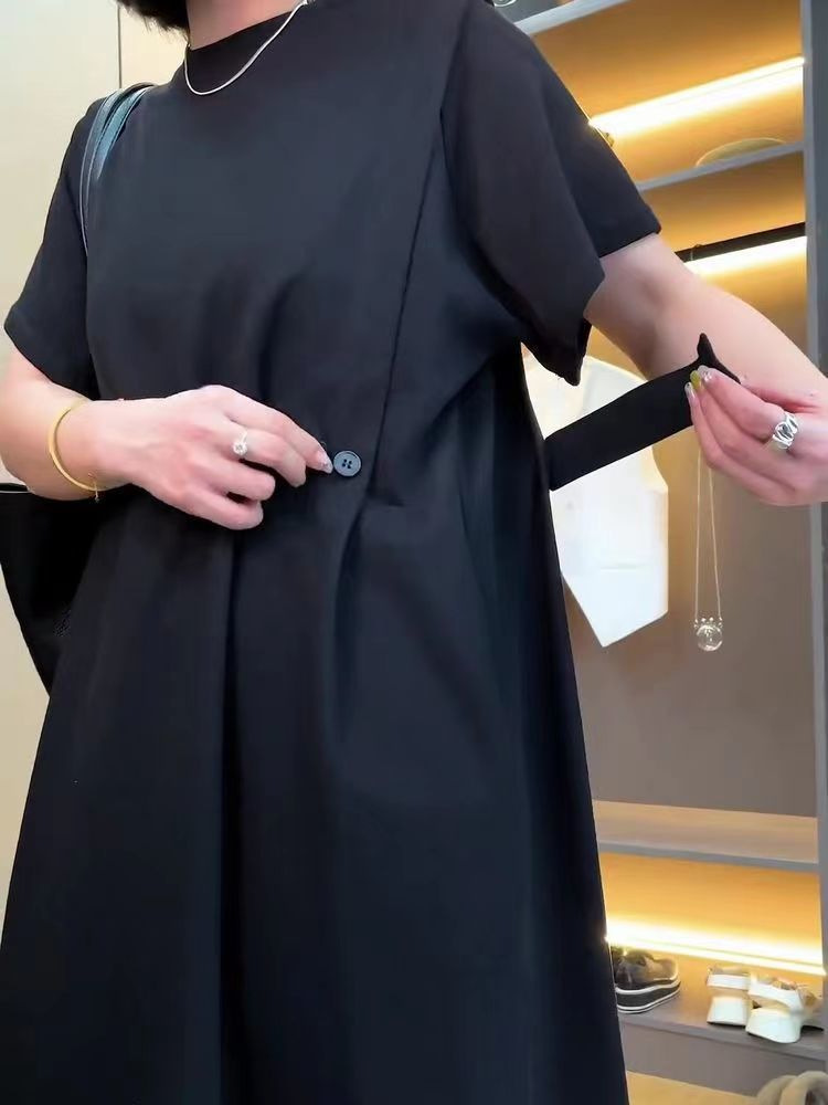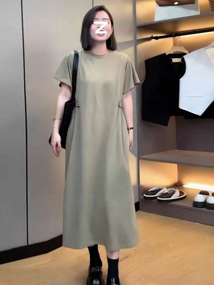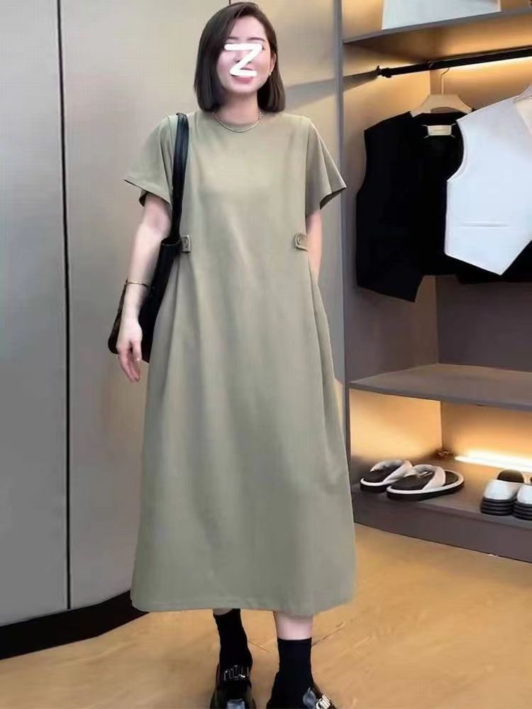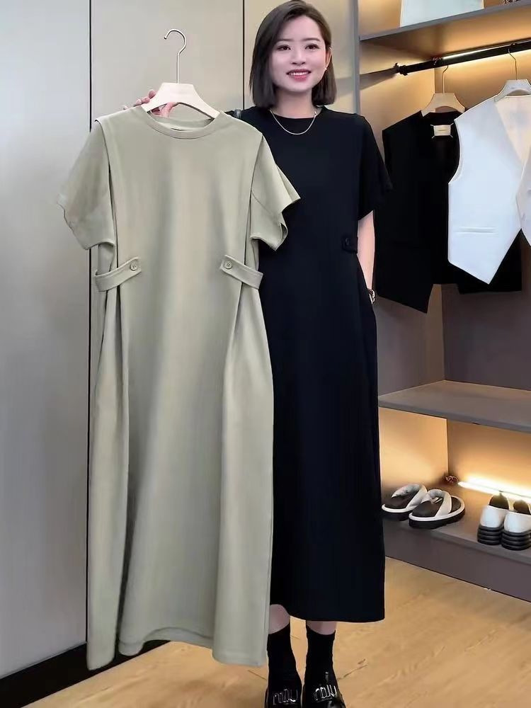 Дизайн Платье Женское Толстая ММ большой размер свободная тонкая прямая юбка Летнее корейское платье с короткими рукавами для детей