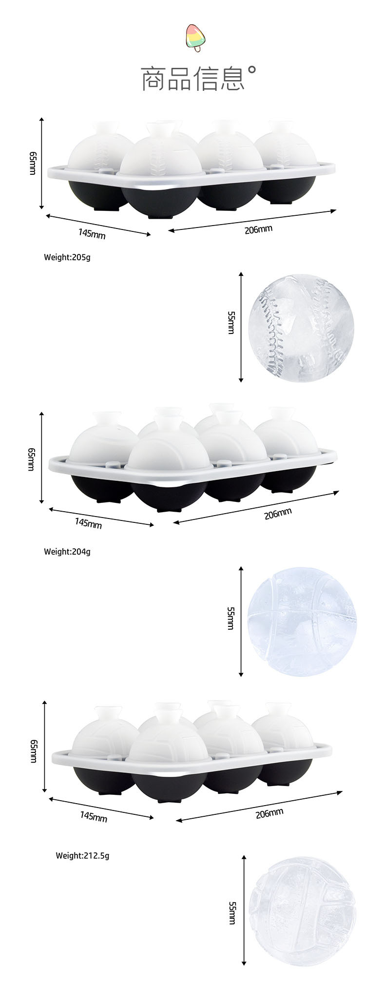 6-й бейсбол (черный); 6 последовательных бейсбольных мячей (белый сверху + черный снизу); 6 волейбольный (черный); 6 волейбольных мячей (белый сверху + черный снизу); 6 теннисных мячей (черных); 6 последовательных теннисных мячей (белый сверху + черный снизу)