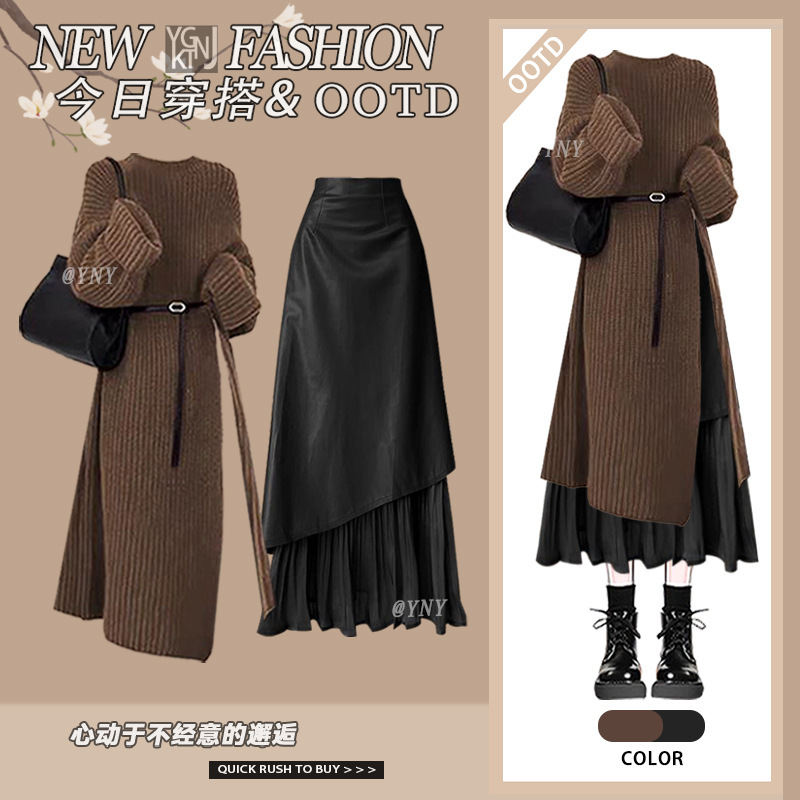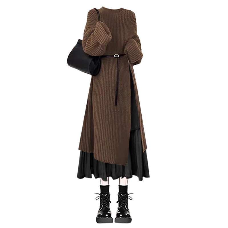 Трансграничный Майлард носит высококачественный вязаный длинный свитер моды дикие юбки с высокой талией