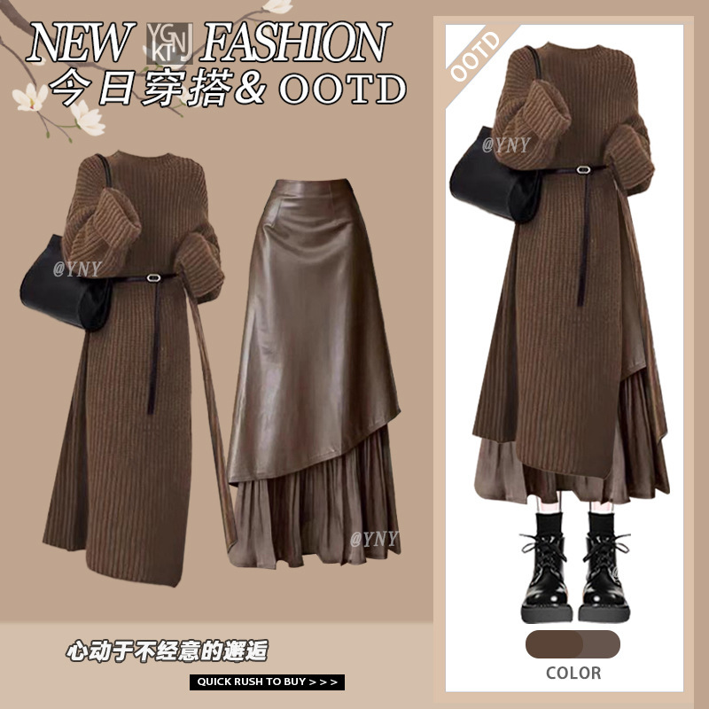 Y301#Коричневый свитер (с поясом); Y301#Абрикосовый свитер (с поясом); W095#черная юбка; W095#Коричневая юбка; Y301#Свитер абрикосовый (с поясом) +W095#черная юбка; Y301#Каштановый свитер (с поясом) +W095#Коричневая юбка; Y301#Каштановый свитер (с поясом) +W095#черная юбка