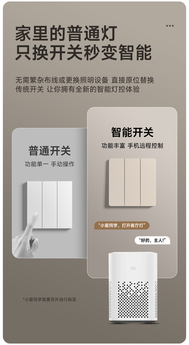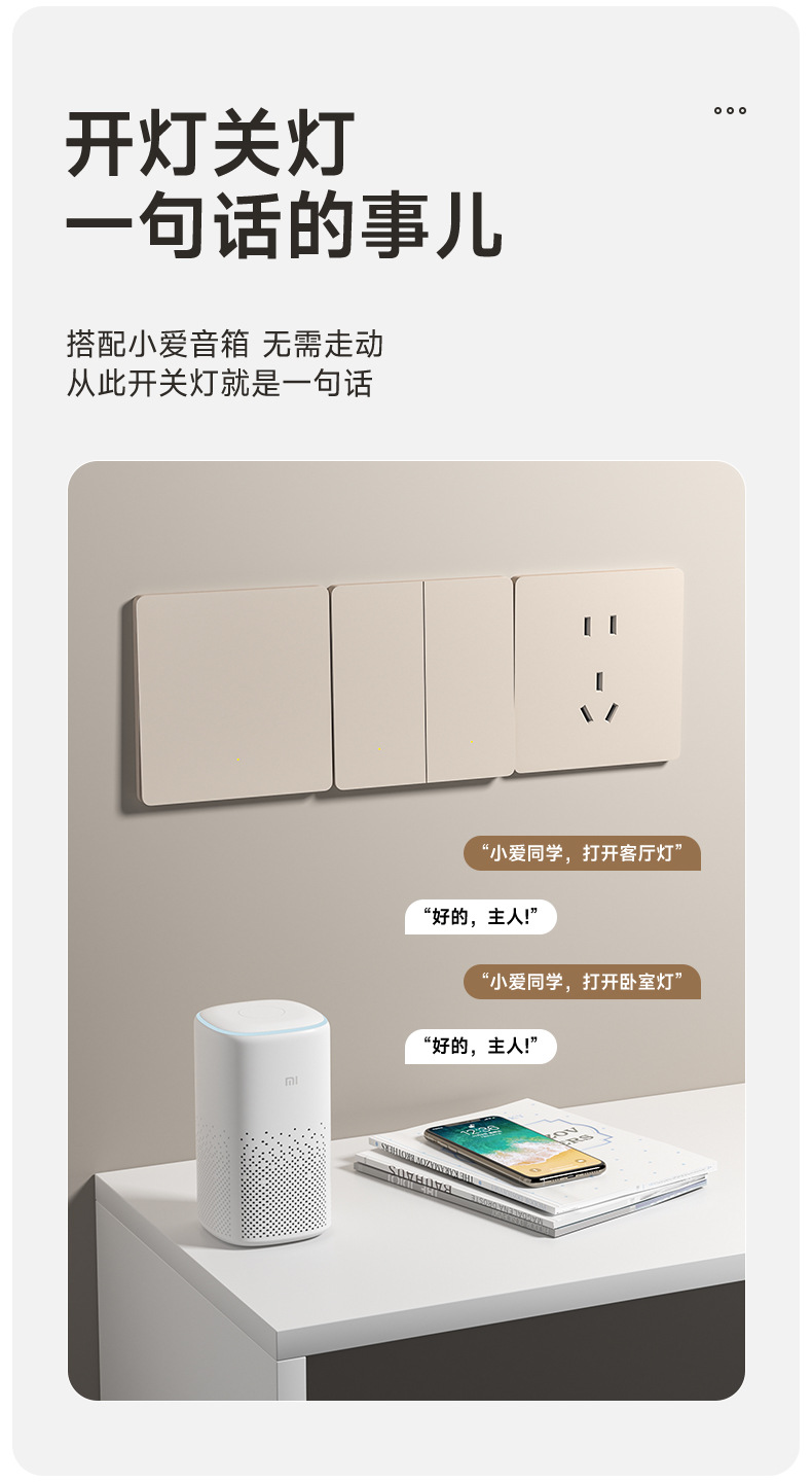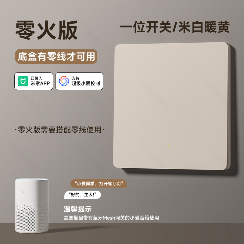 Уже подключен к приложению Mijia, теплый желтый интеллектуальный переключатель поддерживает голосовое управление по всему дому, ультратонкая панель с одним нулевым огнем и двойным управлением.