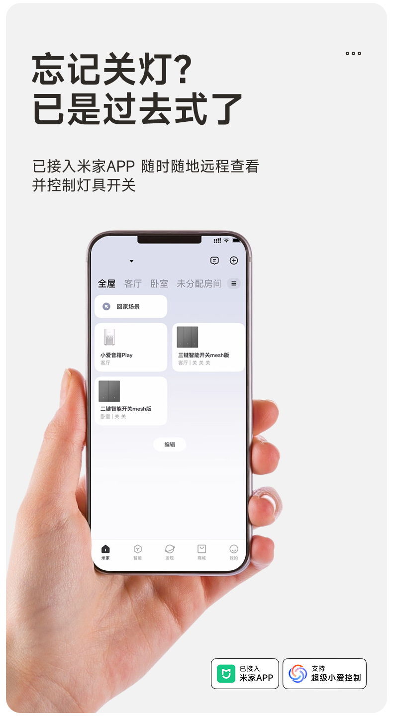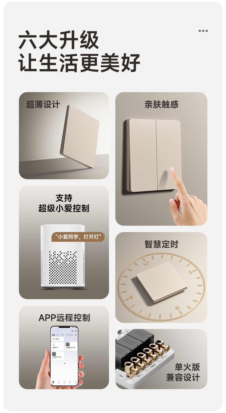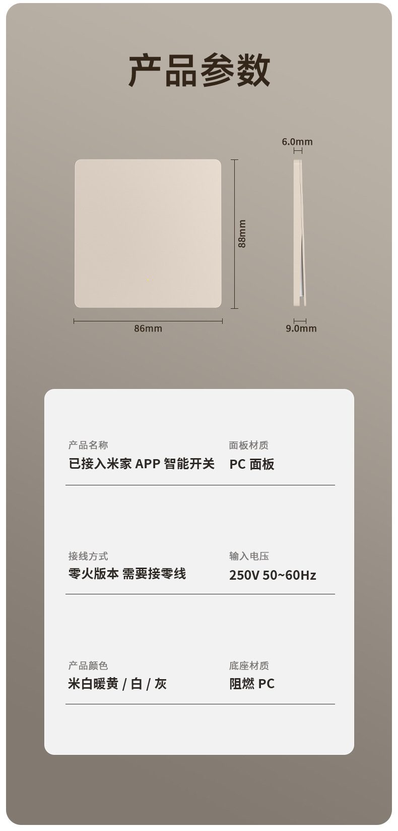 Уже подключен к приложению Mijia, теплый желтый интеллектуальный переключатель поддерживает голосовое управление по всему дому, ультратонкая панель с одним нулевым огнем и двойным управлением.