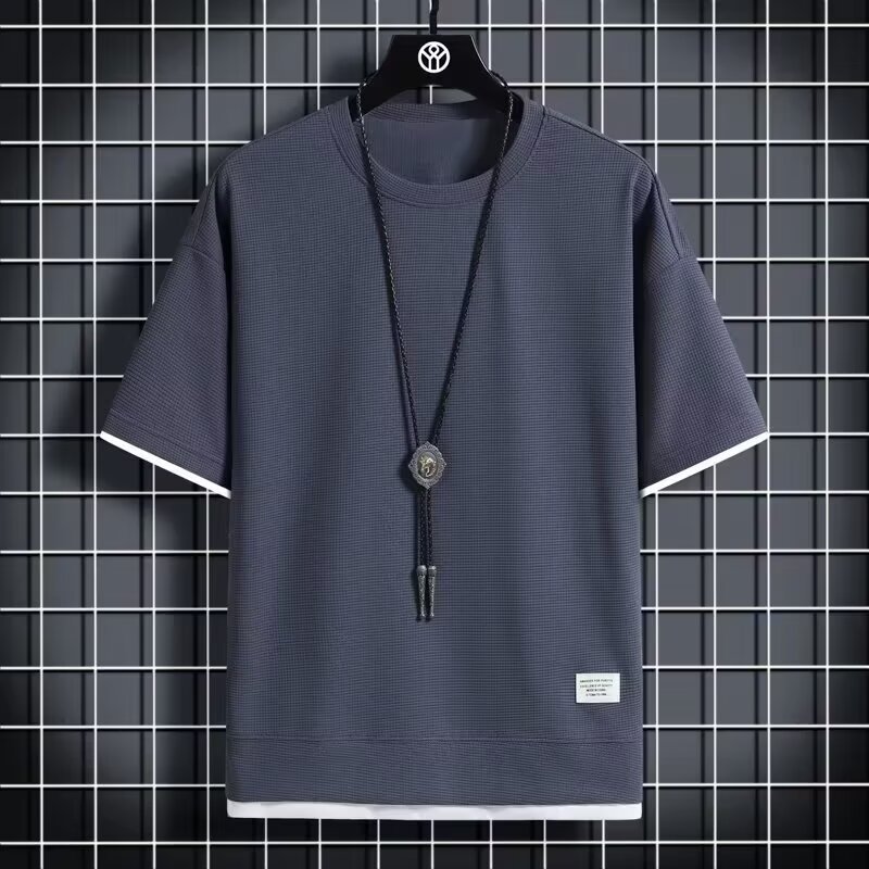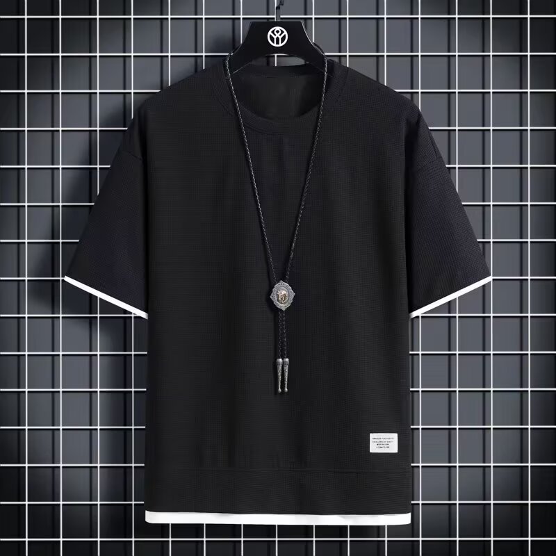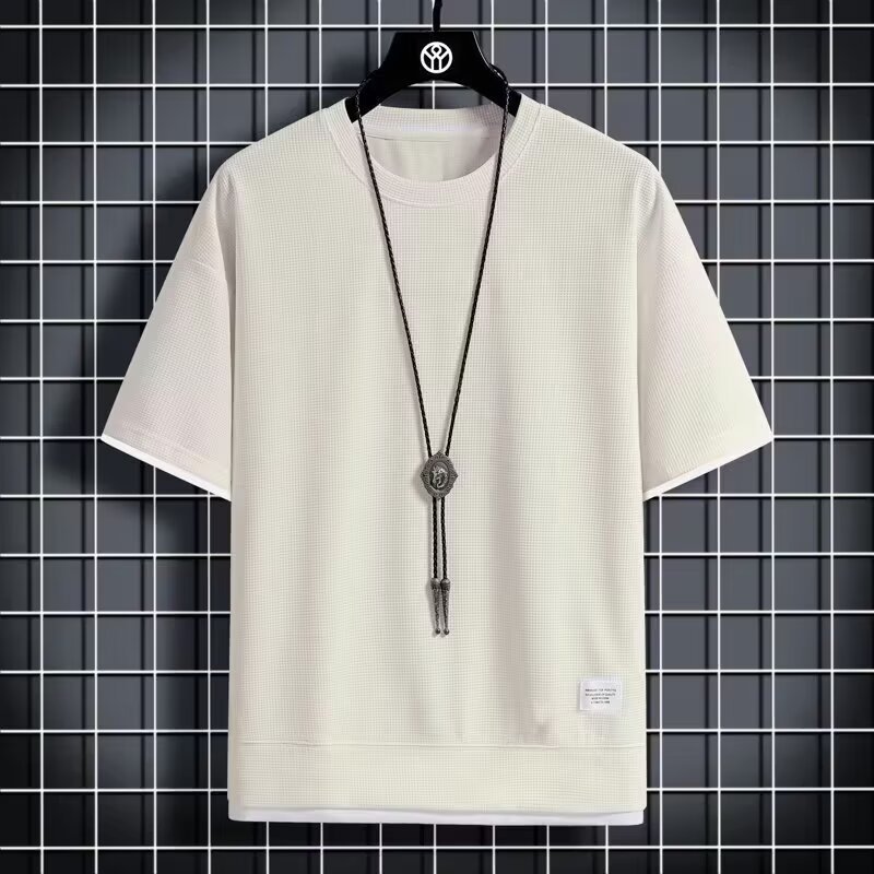 Мужская футболка с короткими рукавами, модная летняя свободная футболка с рукавом три четверти, новый модный интернет-знаменитый топ с простым принтом
