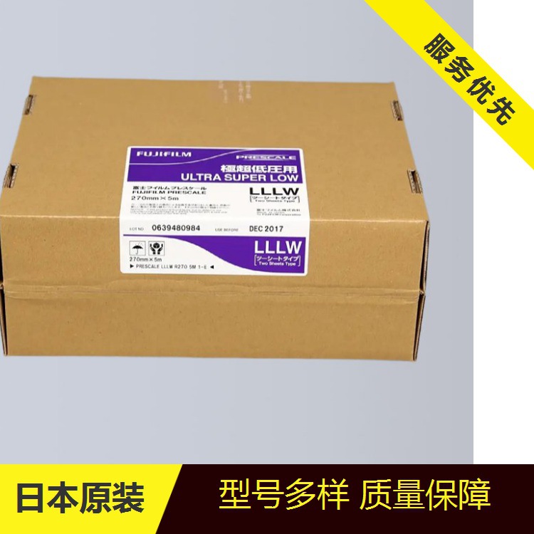 详细信息: 本产品有LW、LLW、LLLW等7种规格、用于电脑基版,精密产品、医疗等各行业,使用压力对产品质量检测和分析。 种类: 根据压力水平提供了七种Prescale胶片,请选择合适的Prescale胶片 注意:W表示双片型,S表示单片型。 双片型(LW、LLW、LLLW、LLLLW、MW) 正确裁切两张Prescale胶片(A胶片在黑色袋内,C胶片在蓝色袋内)。每个胶片的粗糙面相互面对、把胶片插入要测量压力的地方。施压,胶片上出现红色区,而且颜色密度随着压力水平的改变而改变。拿出C胶片,并检查压力的分布情况。如要更精确的压力值,请使用压力分析系统。 单片型(MS、HS、HHS) 正确裁切黑色袋里的Prescale胶片,把胶片插入要测量压力的地方。施压,红色区出现在胶片上,颜色密度随着压力水平的改变而改变。拿出胶片,检查压力的分布情况。 胶片类型 可测压力范围(MPa)1MPa=10.2kgf/cm2 产品尺寸 W(mm) X L(m) 分类 特超低压(LLLLW) 0.05~0.2 310×3 双片型 超级低压(LLLW) 0.2~0.6 270×5 双片型 超低压(LLW) 0.5~2.5 270×6 双片型 低压(LW) 2.5~10 270×12 双片型 中压(MW) 10~50 270×12 双片型 中压(MS) 10~50 270×12 单片型 高压(HS)