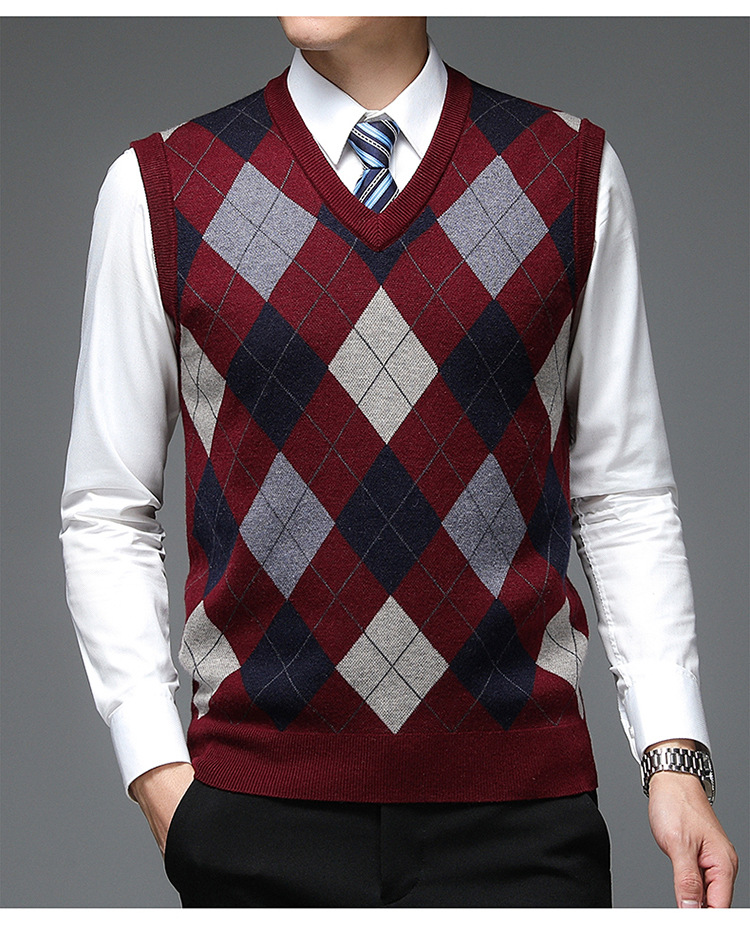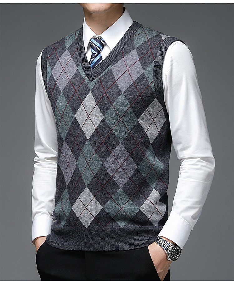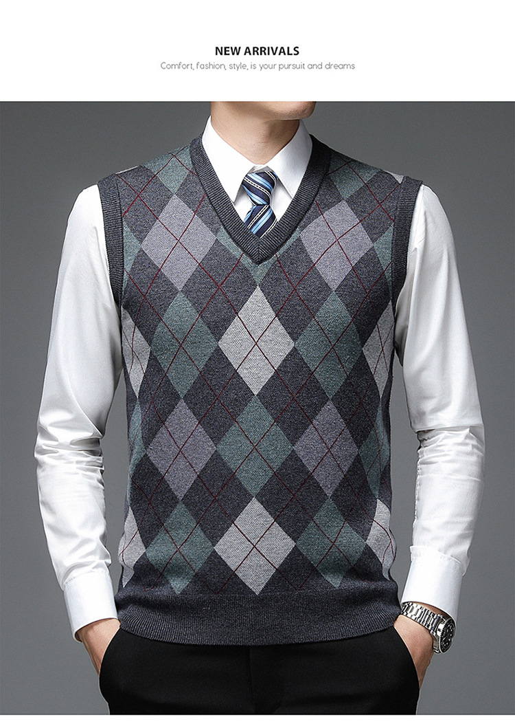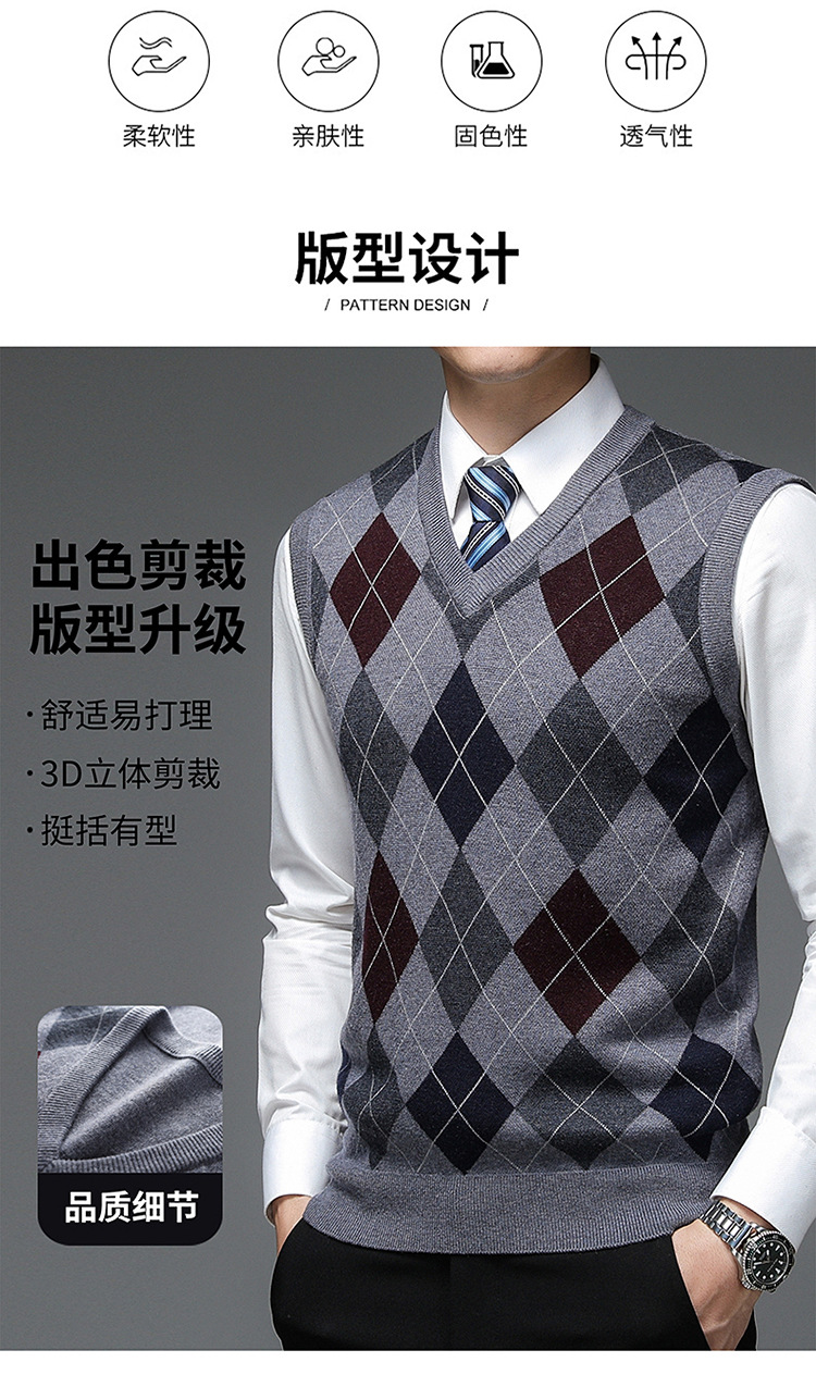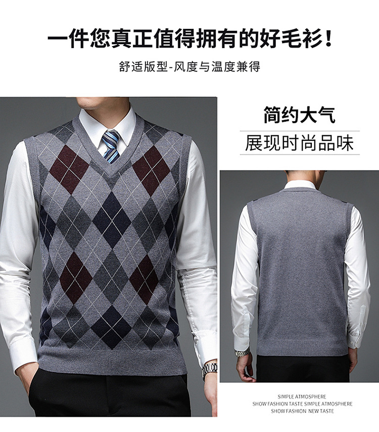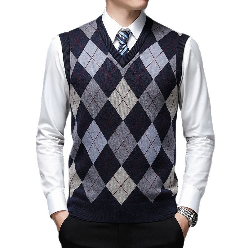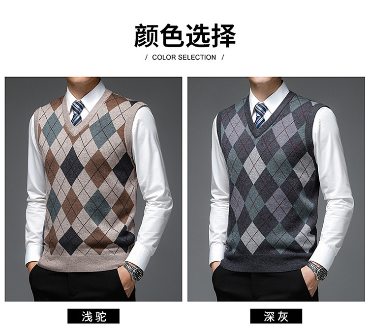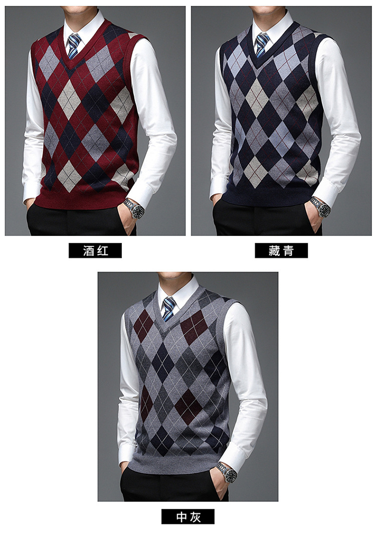 Мужской шерстяной жилет с V-образным вырезом, осень-зима 2025, утолщенный, повседневный, приталенный, для мужчин среднего возраста, без рукавов