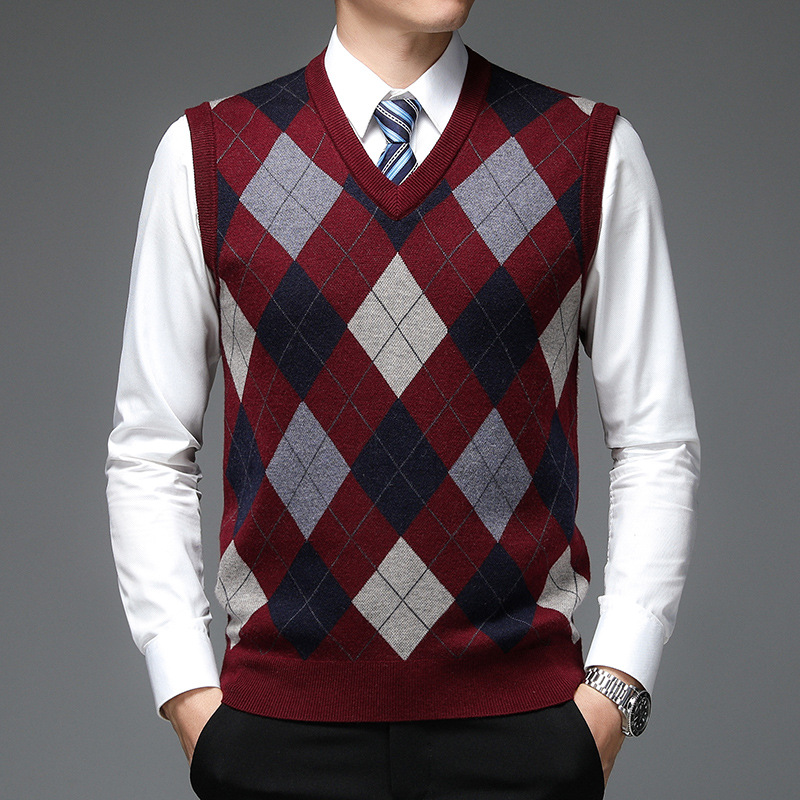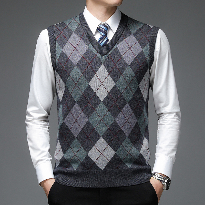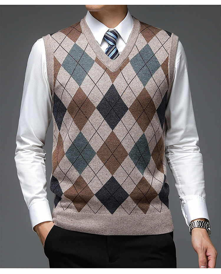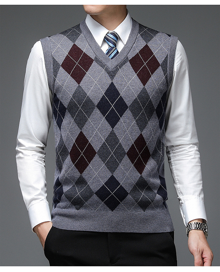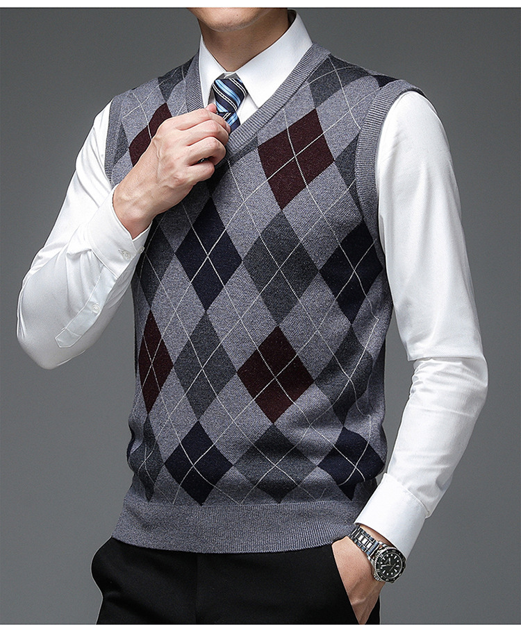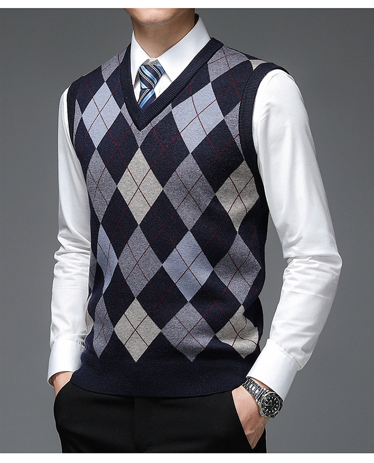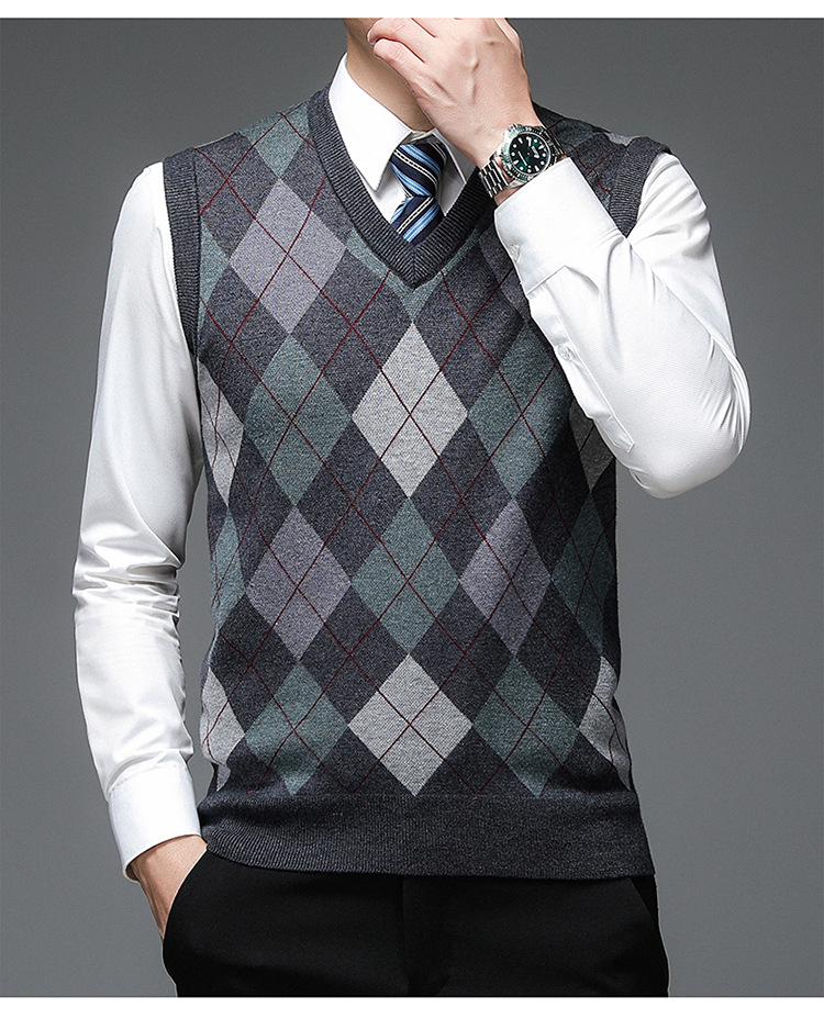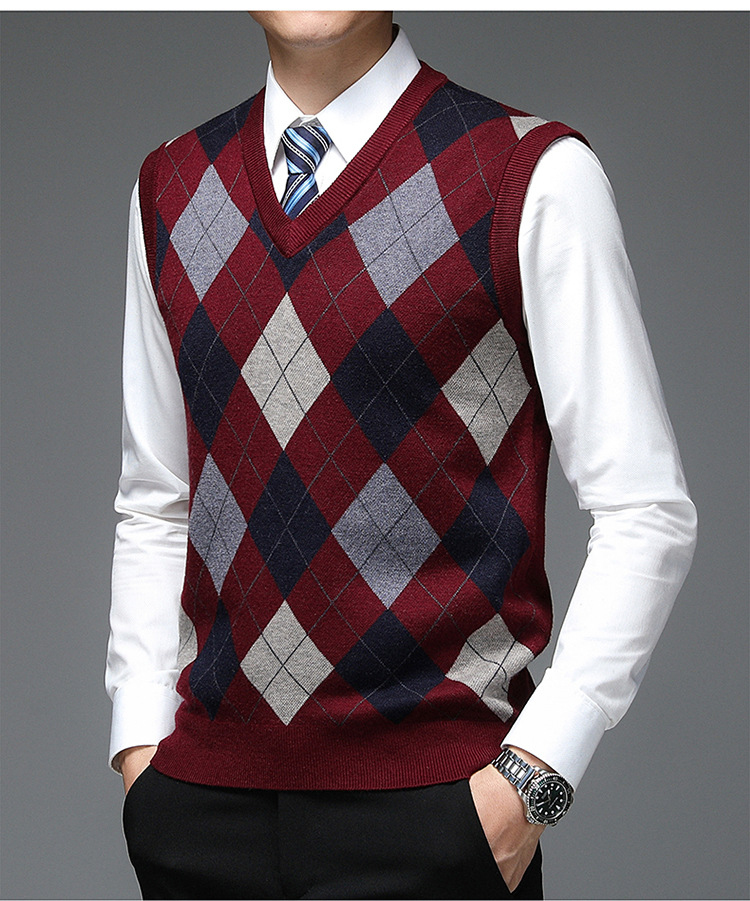 Мужской шерстяной жилет с V-образным вырезом, осень-зима 2025, утолщенный, повседневный, приталенный, для мужчин среднего возраста, без рукавов