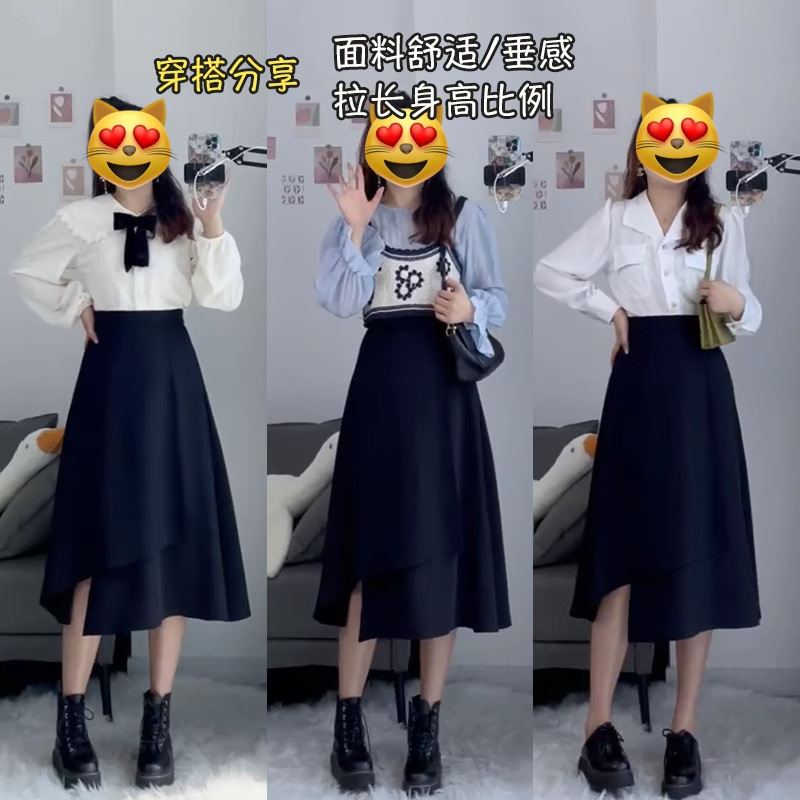 Черная нерегулярная юбка женского пола маленький 2025 новый весенний летний укрытие с высокой талией