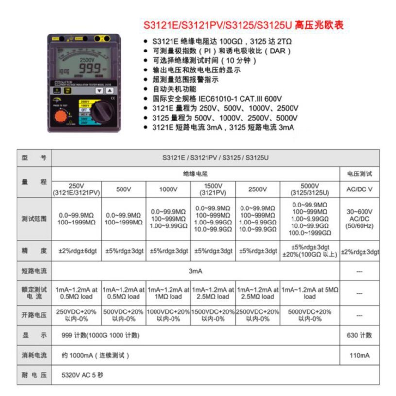 SLETEK共立 S3125U 高压兆欧表 5000V 绝缘电阻测试仪 摇表MODEL3125U