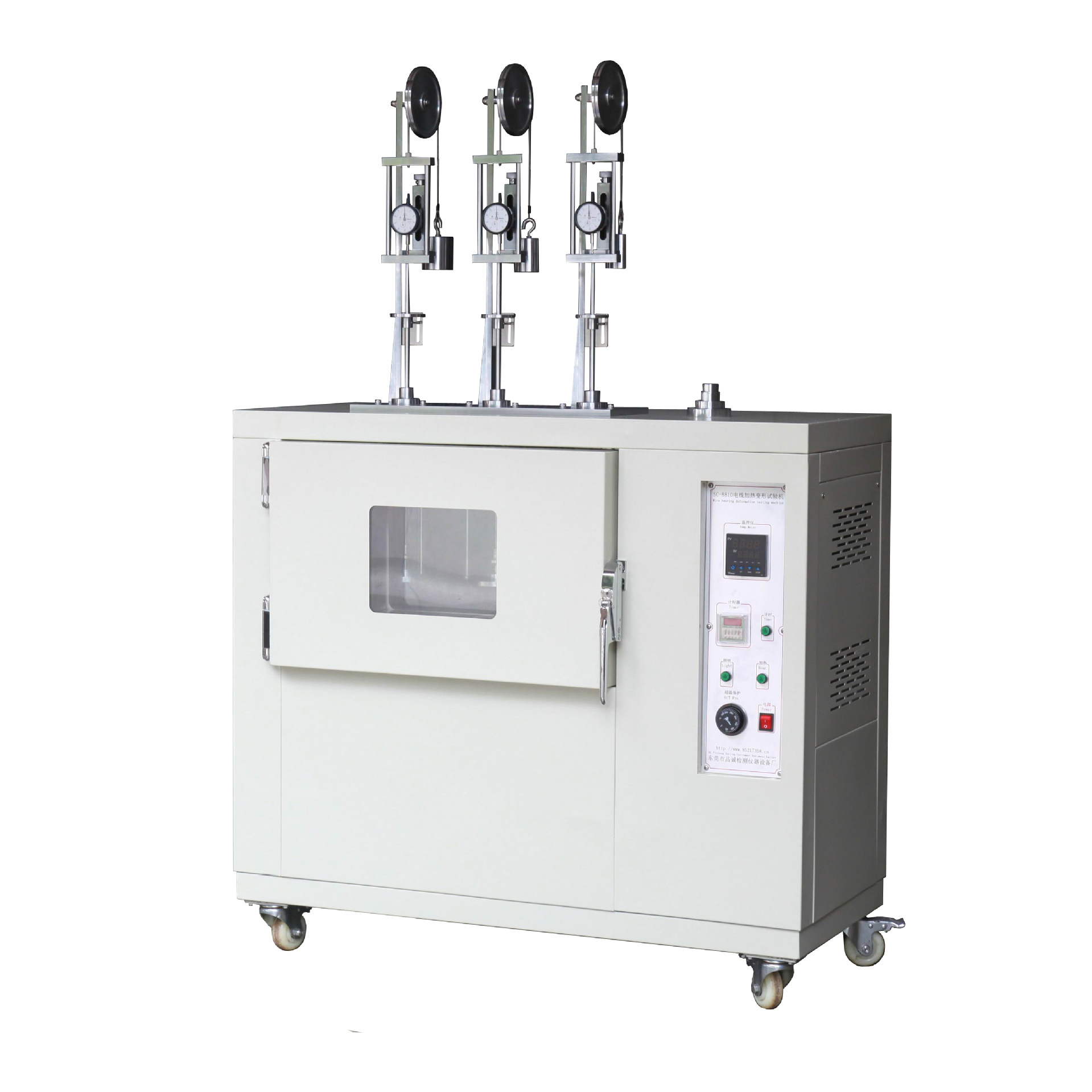 电线加热变形试验机,本机适用于测试皮类、塑料类、橡胶类、布类、受热前和受热后之变形量。辅助环氧粉沫喷涂层,重量轻、体积小、外观美观、用途广泛。