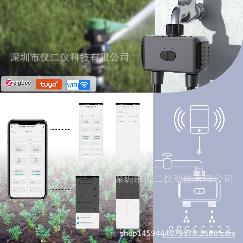 Zigbee граффити водяной клапан интеллектуальный контроллер ирригации двойной выходной таймер регулировки садового сада