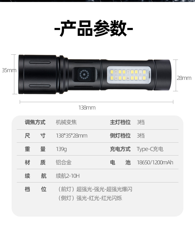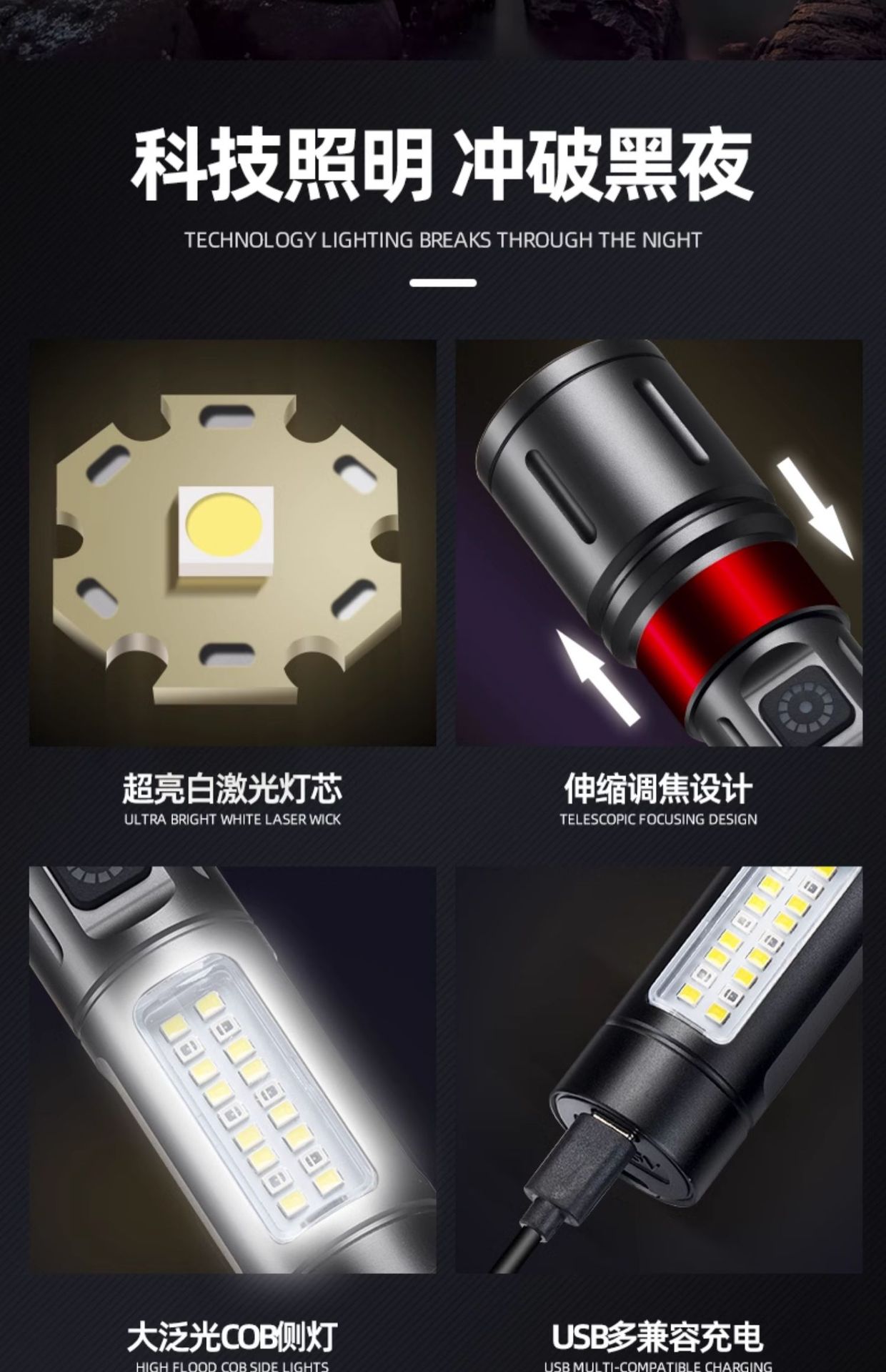 Многофункциональный фонарик, мощный лазерный пистолет, перезаряжаемый ультра-яркий уличный портативный ручной прожектор с зумом