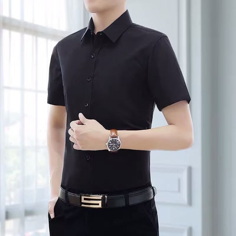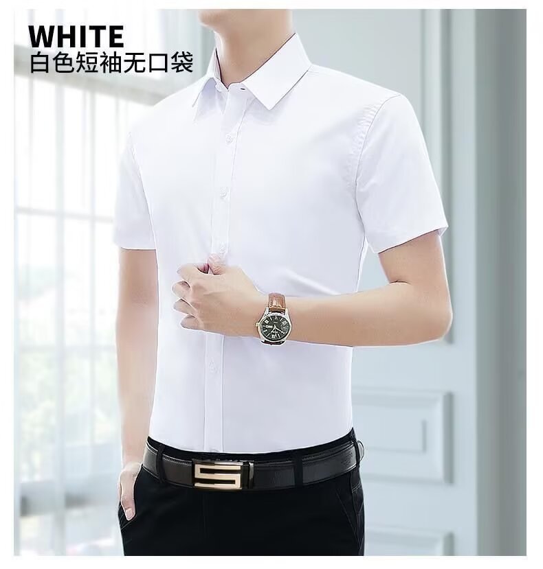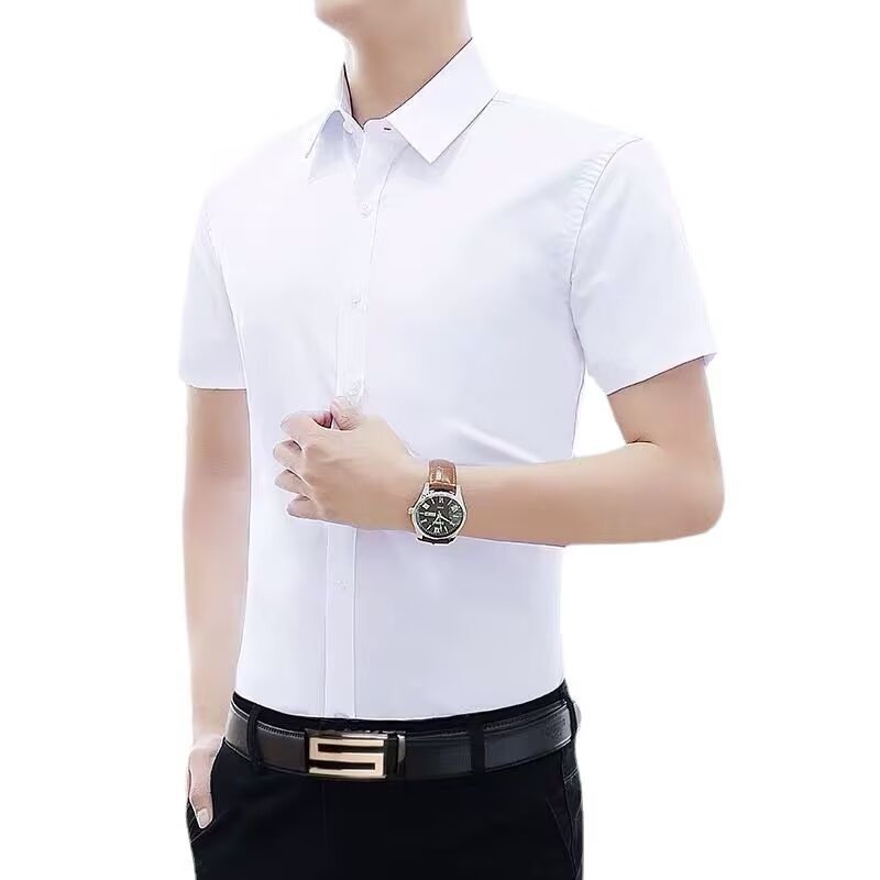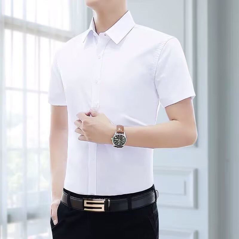 Летняя сплошная белая рубашка с короткими рукавами