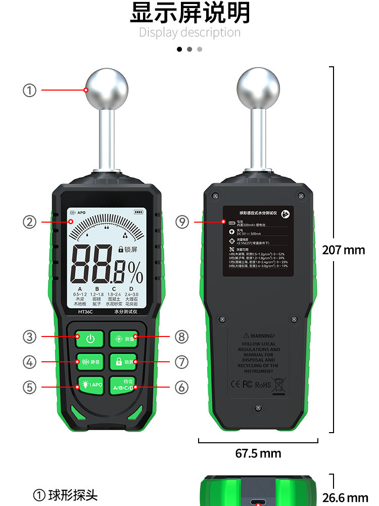 Новая китайская версия сферического измерителя влажности для обнаружения деревянных балок, гипсового бетона, фарфоровая кирпичная стена влажность мрамора
