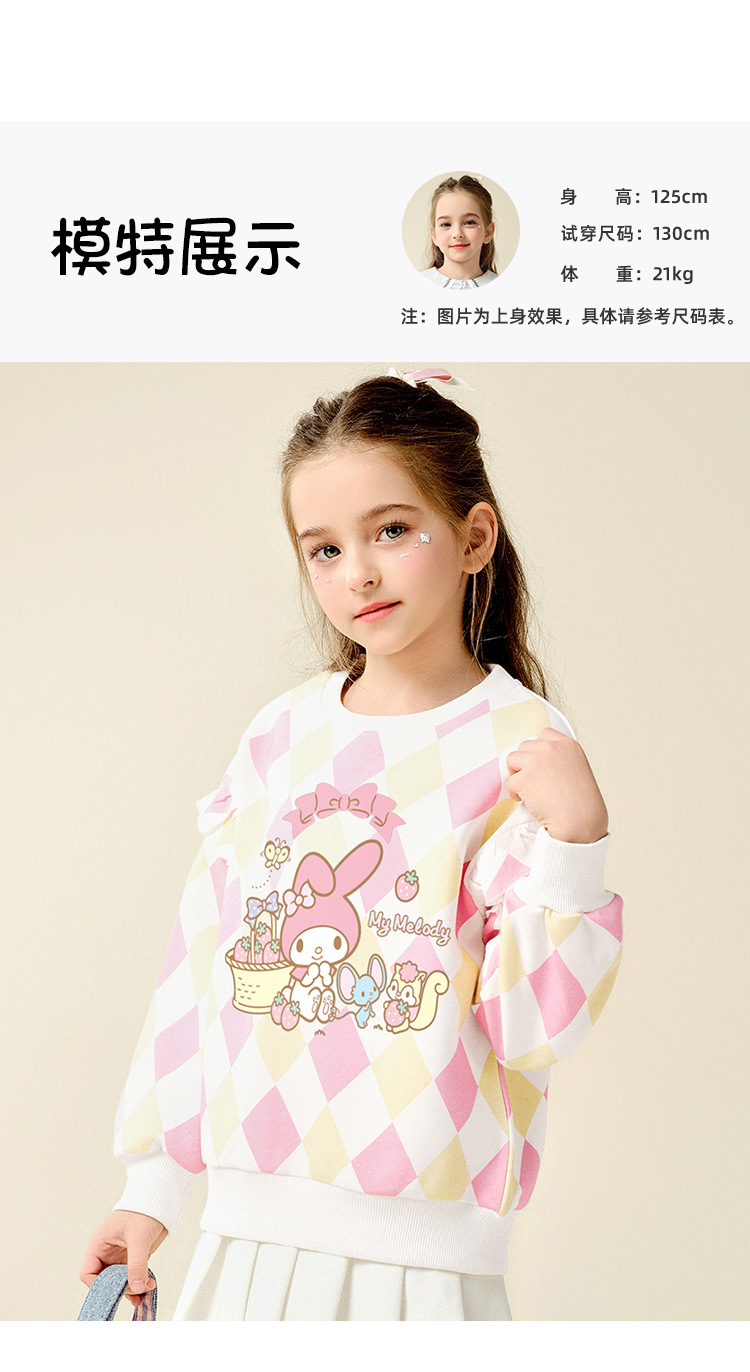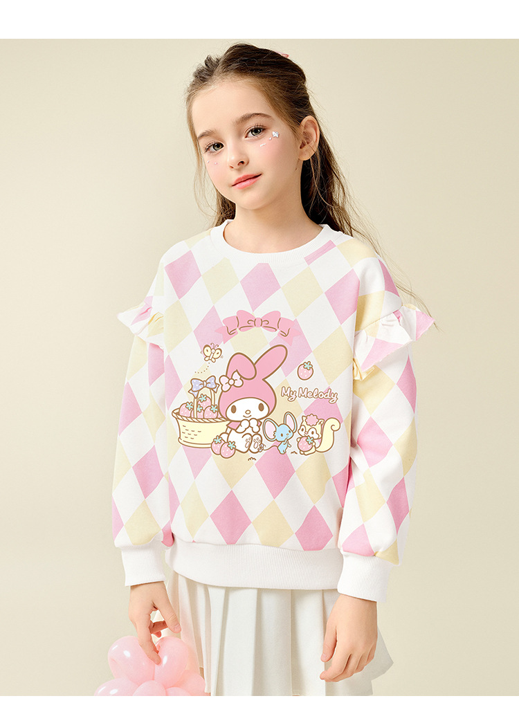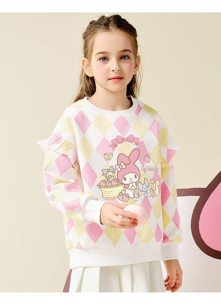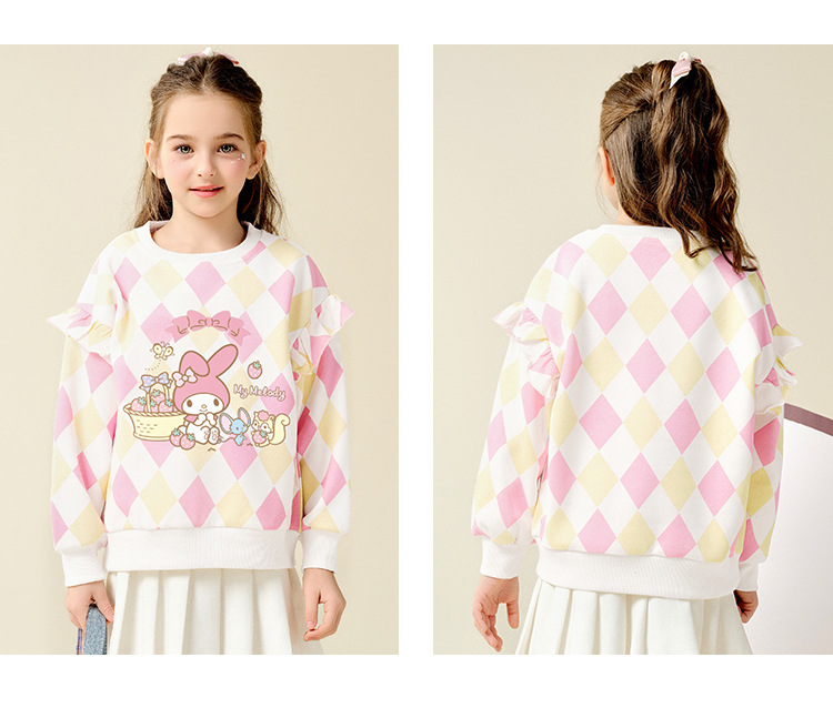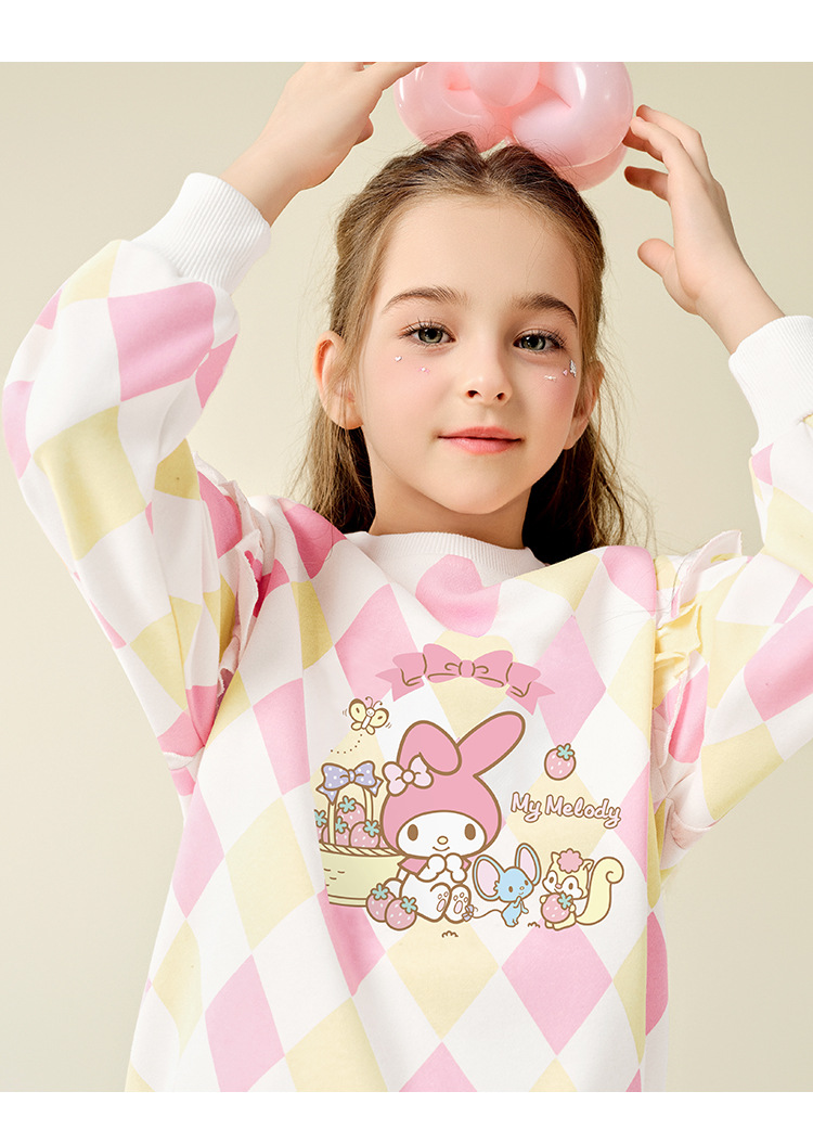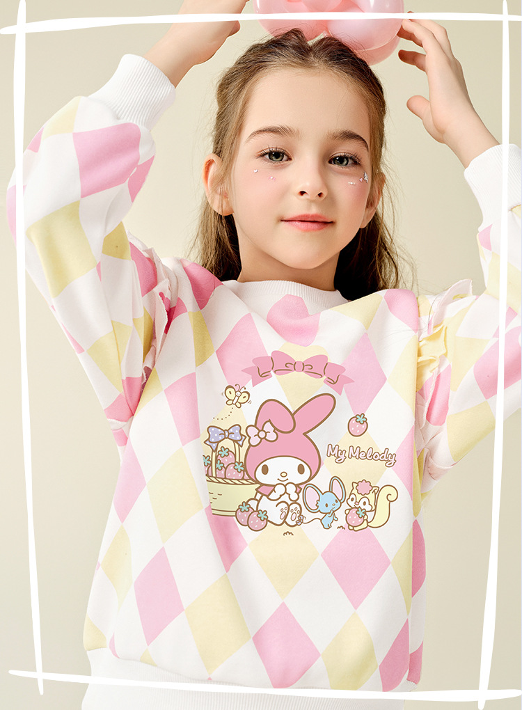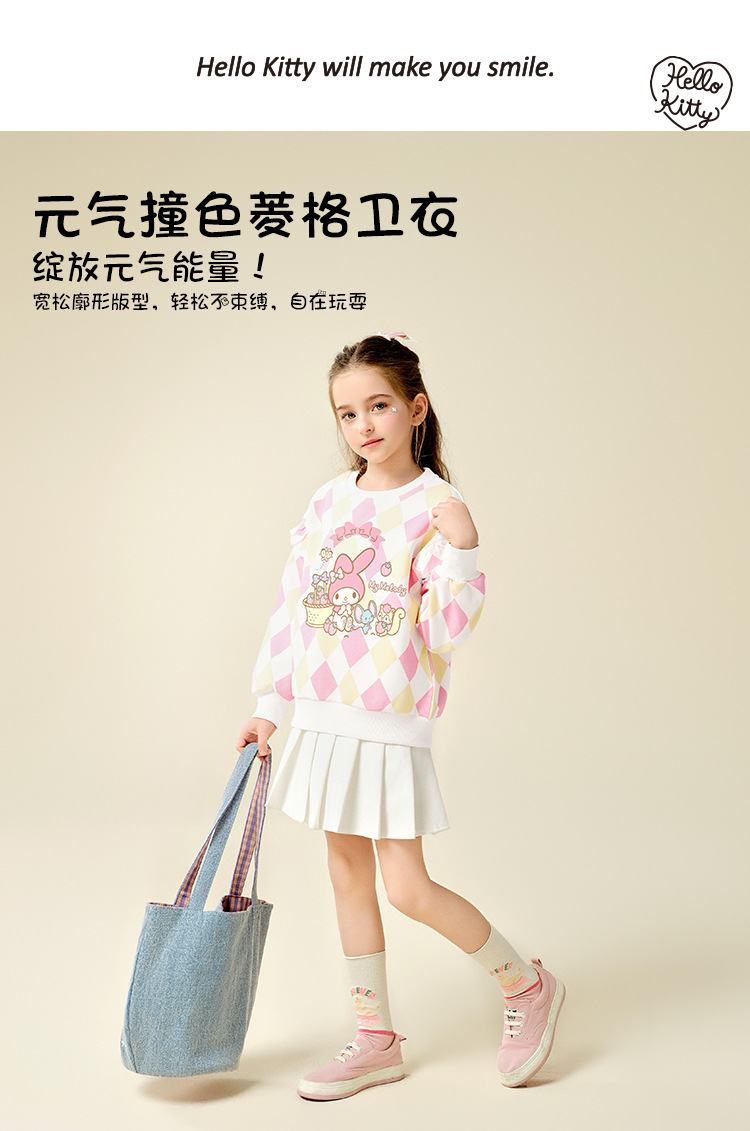 HelloKitty Hello Kitty Girls Spring Meletty ip свитер 2025 новый ромбовидный мультяшный принт