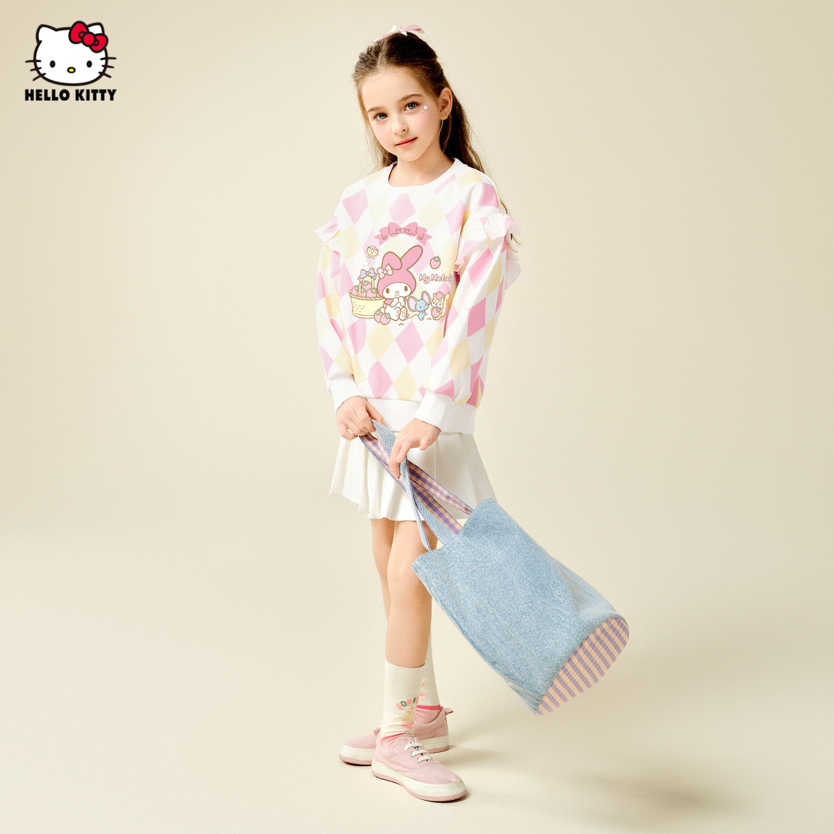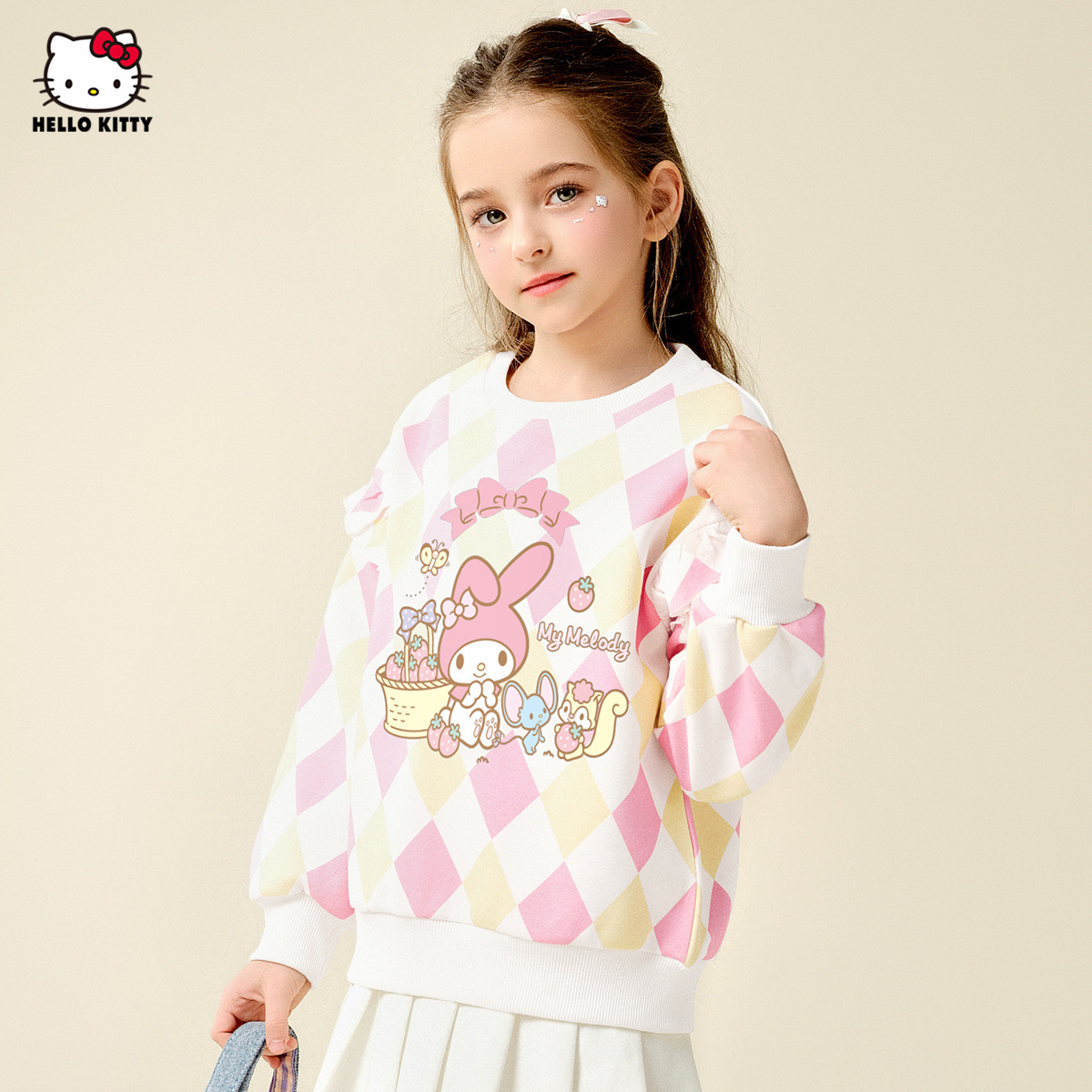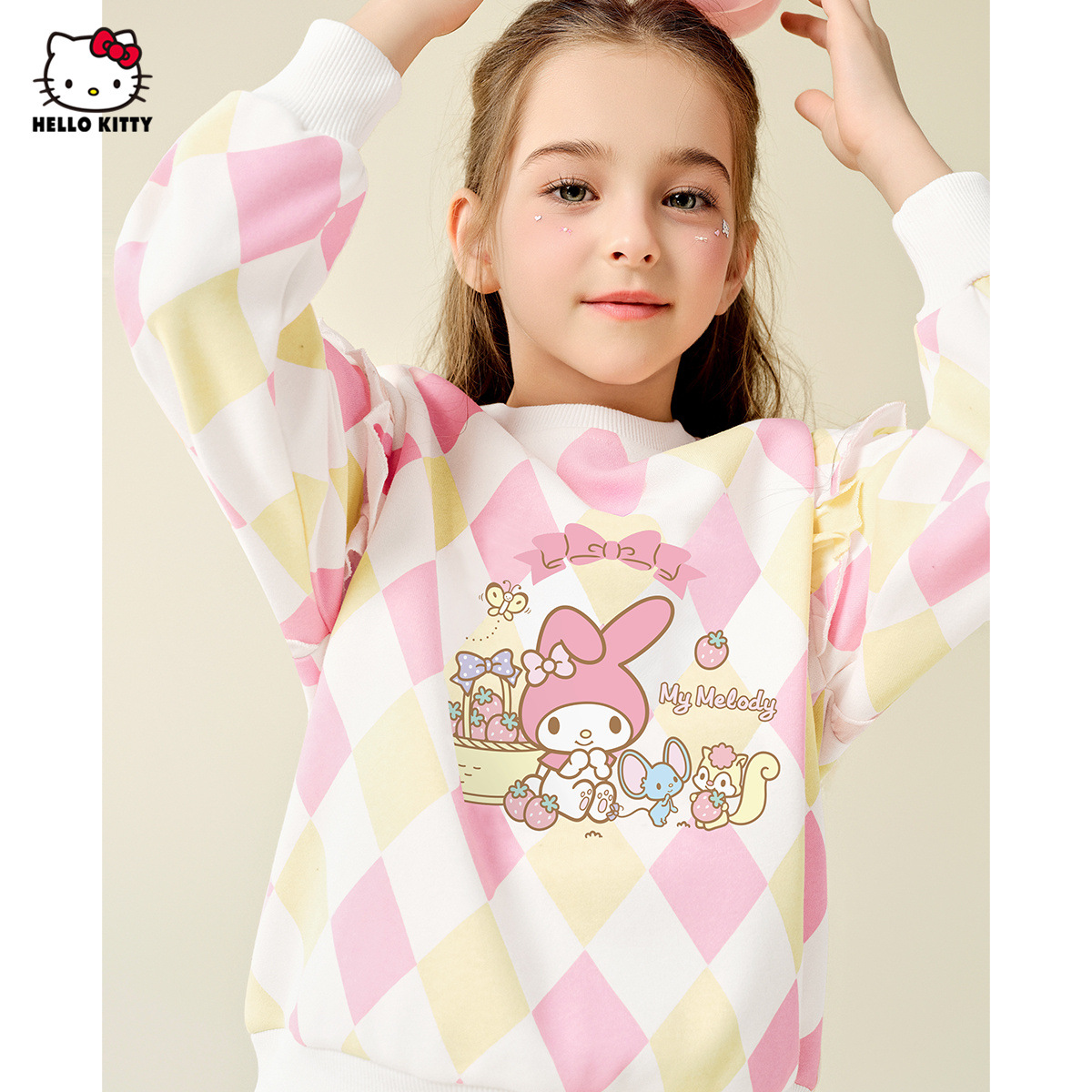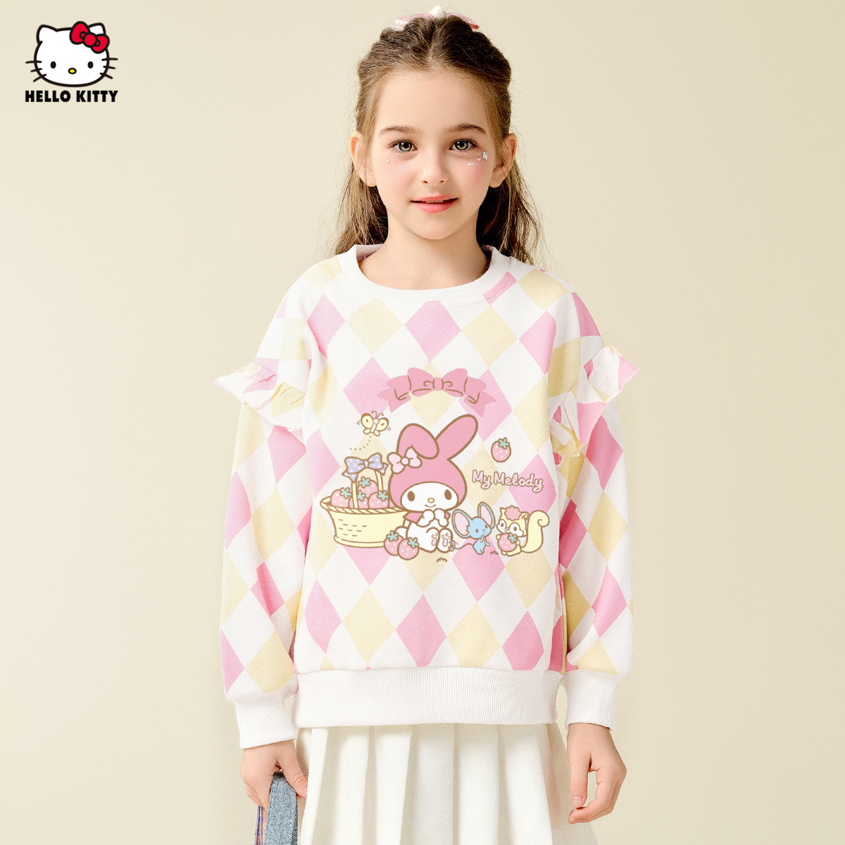 HelloKitty Hello Kitty Girls Spring Meletty ip свитер 2025 новый ромбовидный мультяшный принт