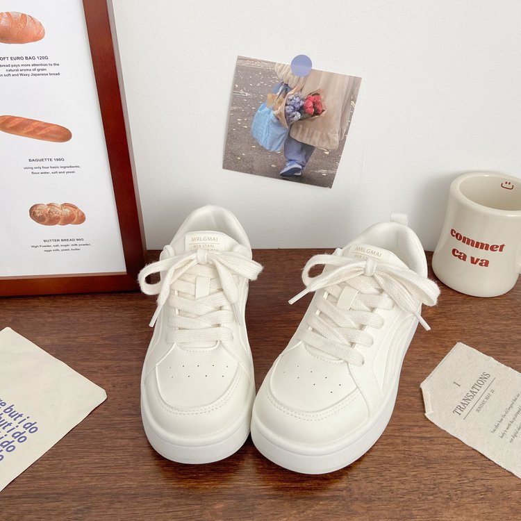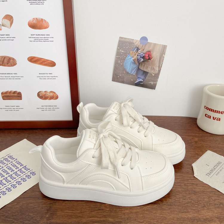 Женские повседневные кроссовки с широкими брюками, весна 2025, новый корейский стиль, белые, шикарные, спортивные, универсальные, «хлебные» туфли
