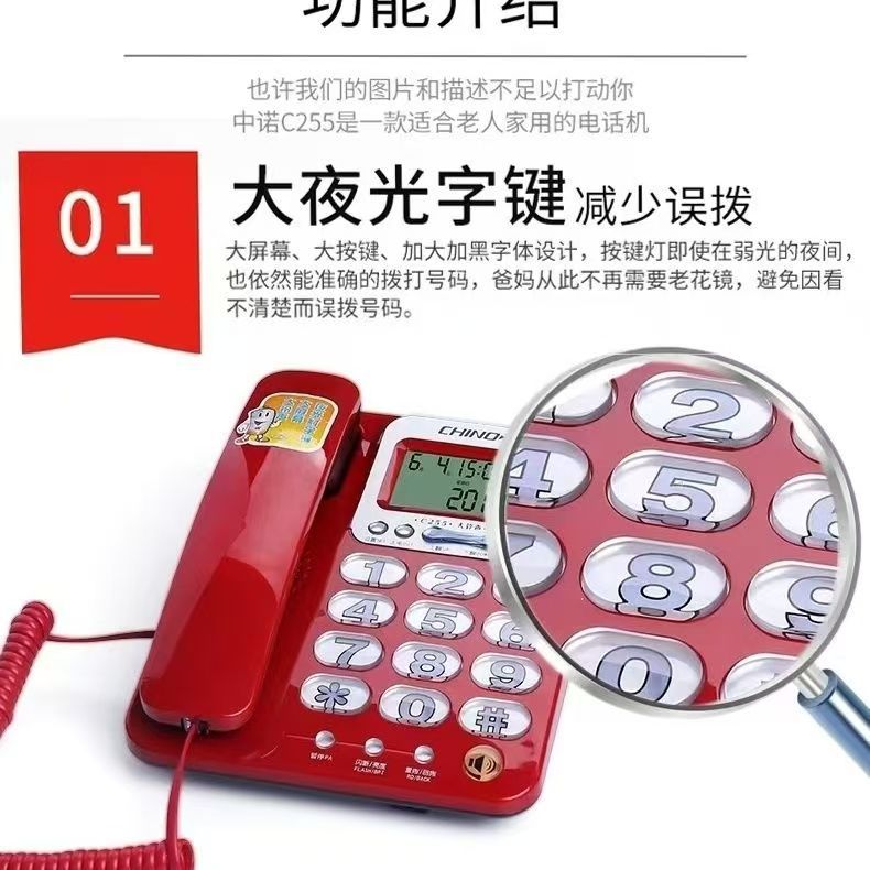 Zhongnuo C255 стационарный телефон для дома, стационарный телефон для пожилых людей, офисный настольный тип, одна машина, светящиеся большие кнопки, большие мелодии звонков