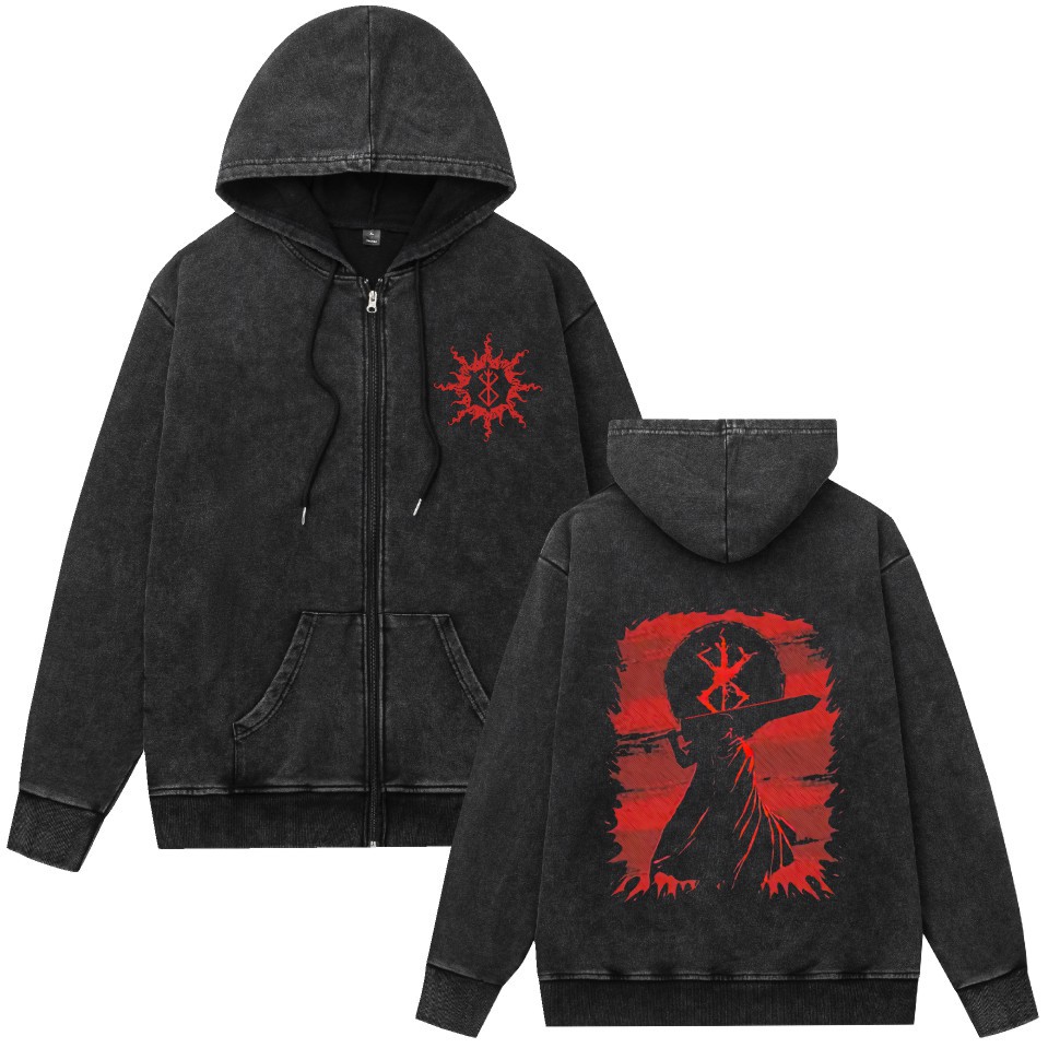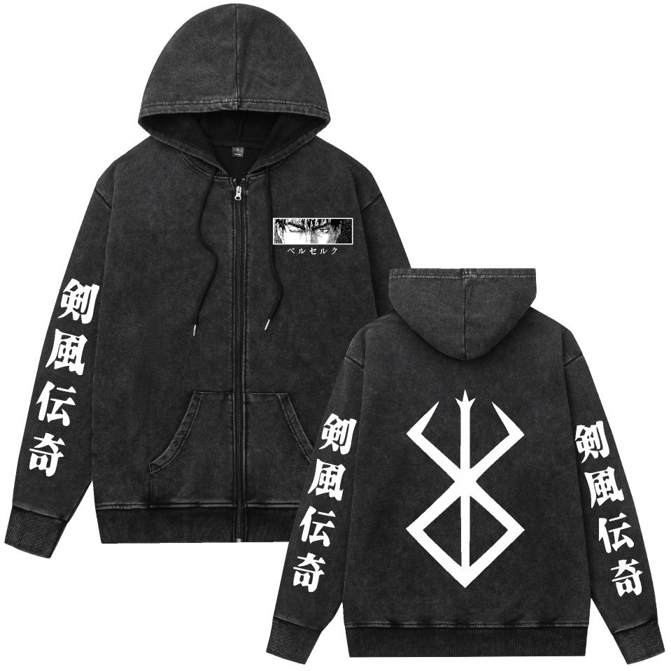 Новая стираная толстовка на молнии Amazon Sword Wind Legend с принтом, повседневная свободная толстовка для мужчин и женщин, пары