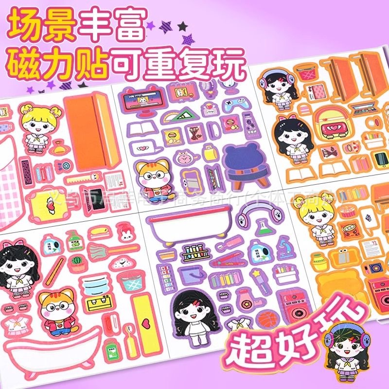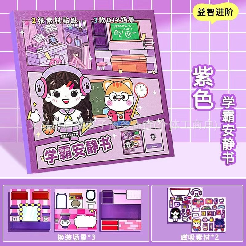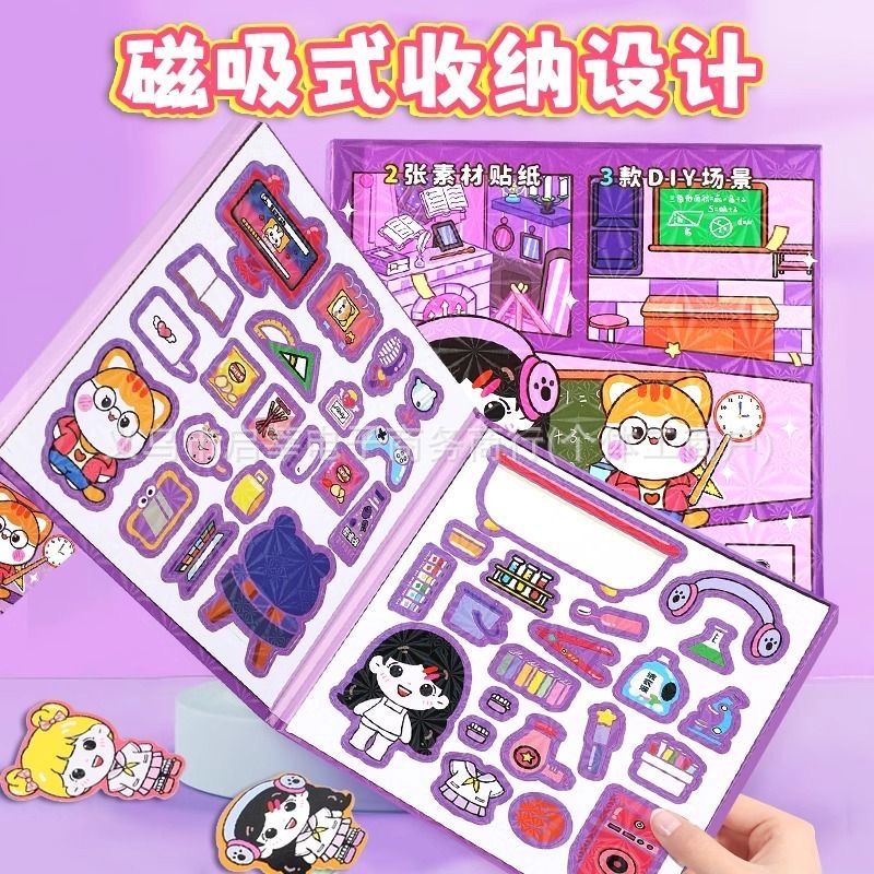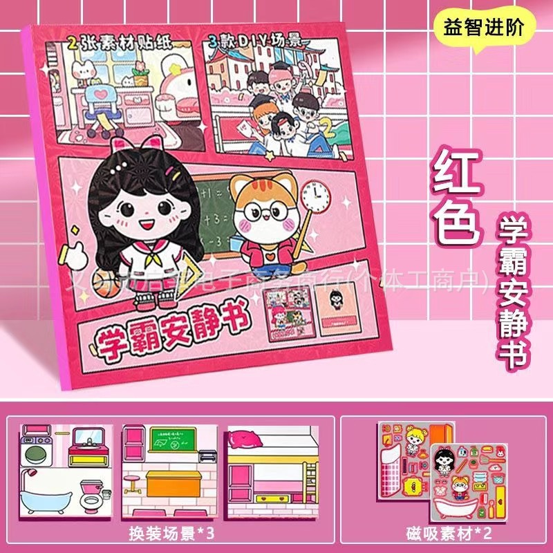 Сюэ Ба Сюэ Шлак Магнитная тихая книга 18x18 без резки diy пузырь наклейки с магнитной наклейкой Большая книга для девочек расширенная версия