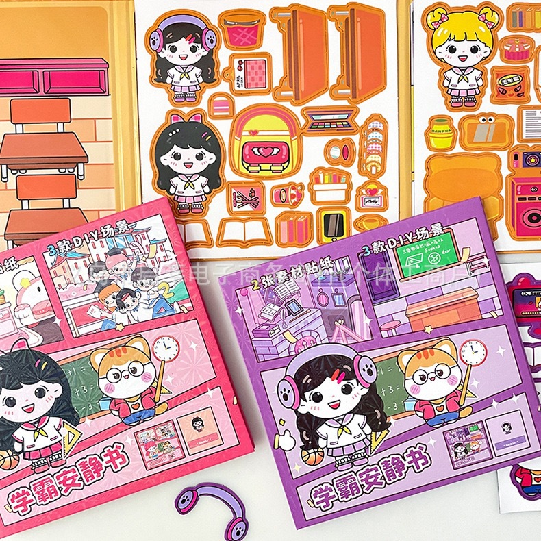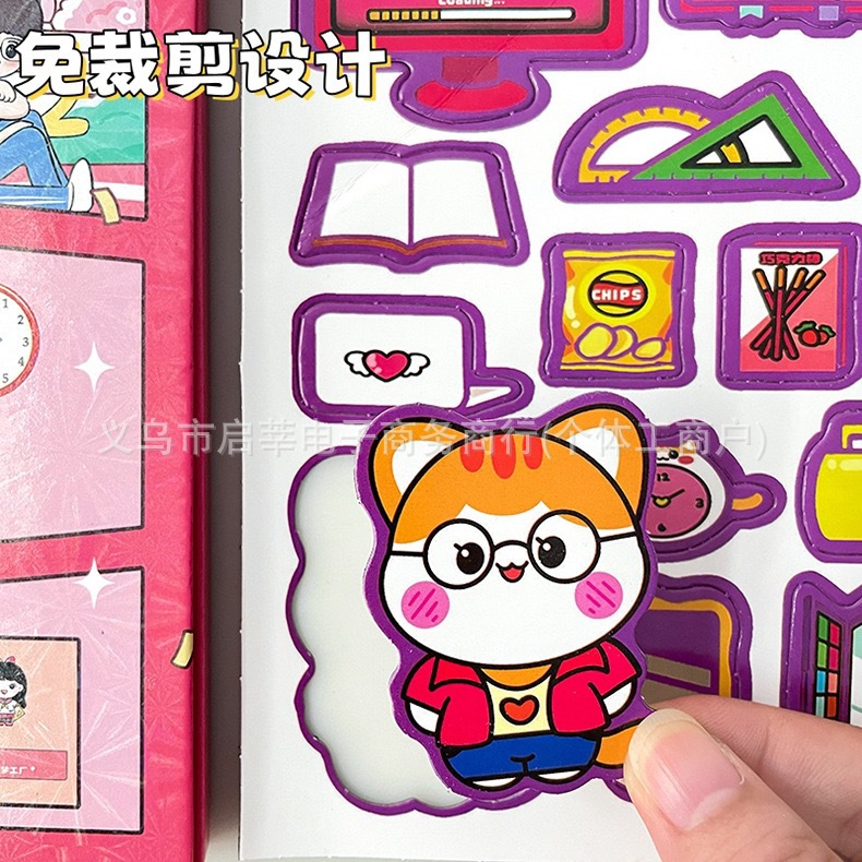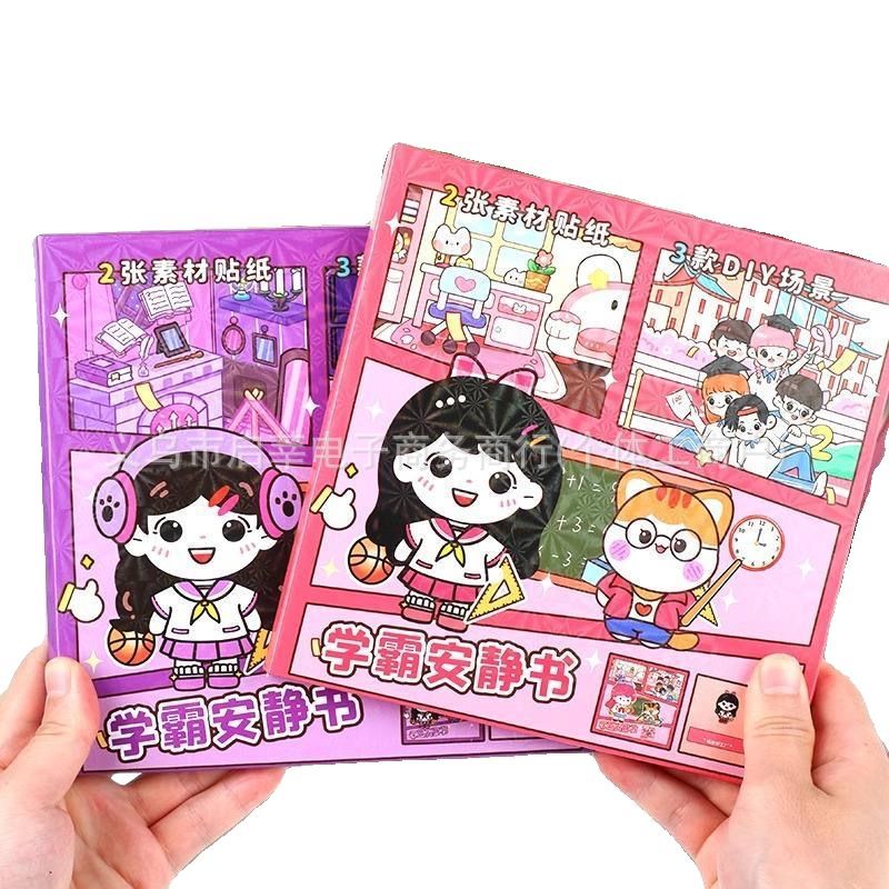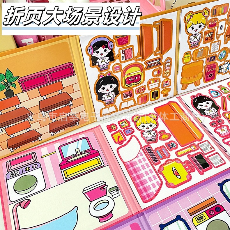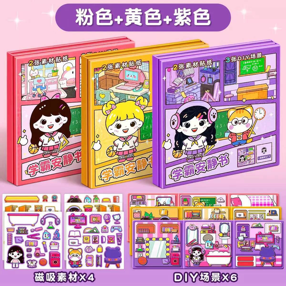 Сюэ Ба Сюэ Шлак Магнитная тихая книга 18x18 без резки diy пузырь наклейки с магнитной наклейкой Большая книга для девочек расширенная версия