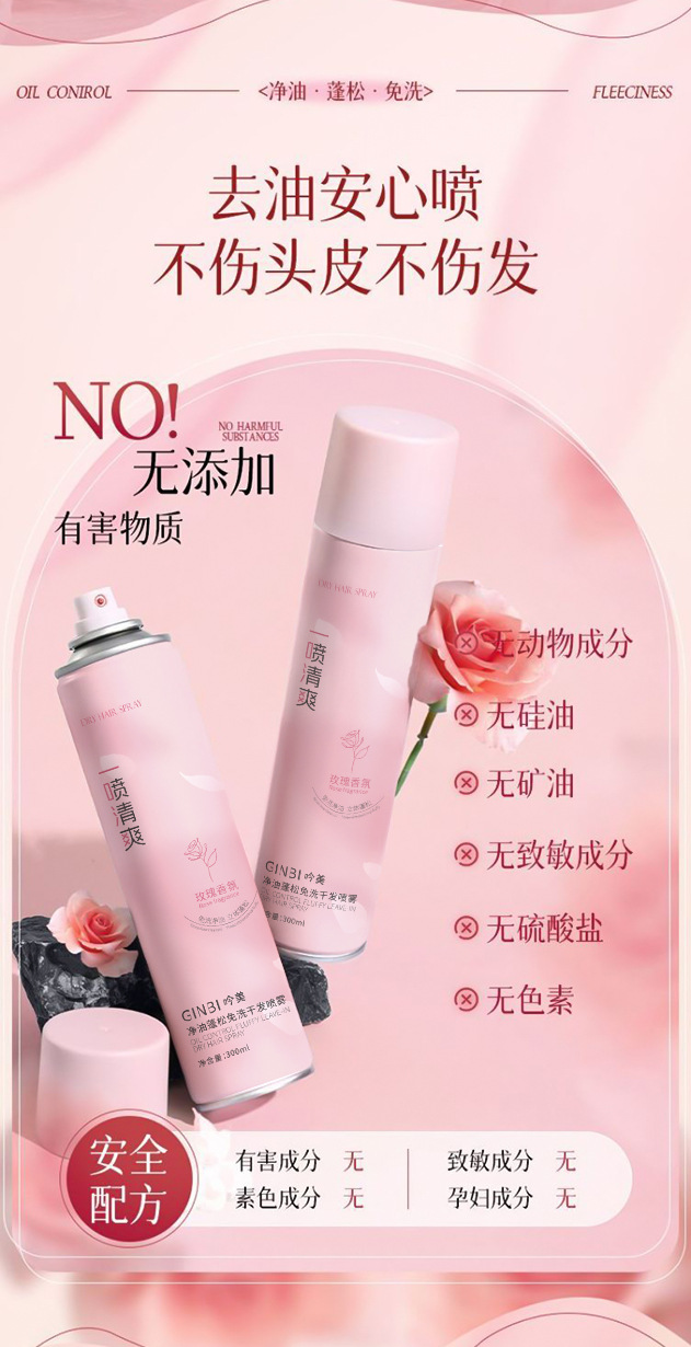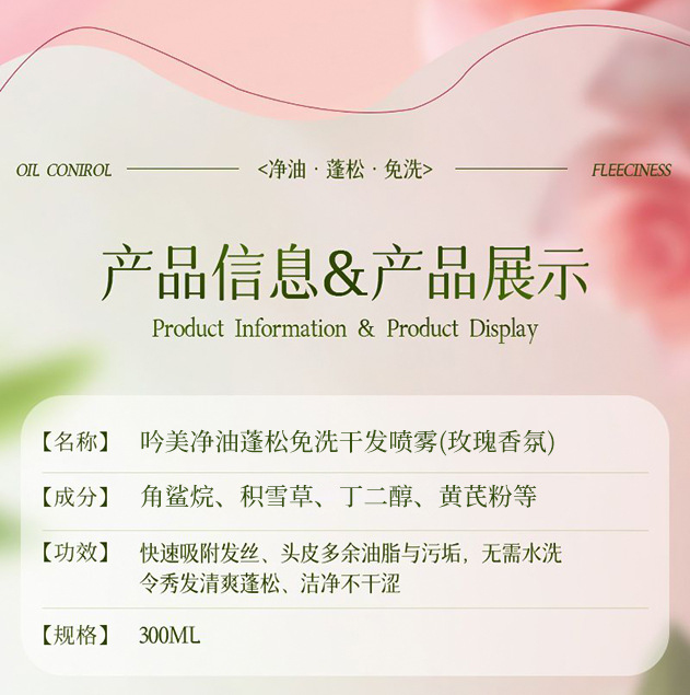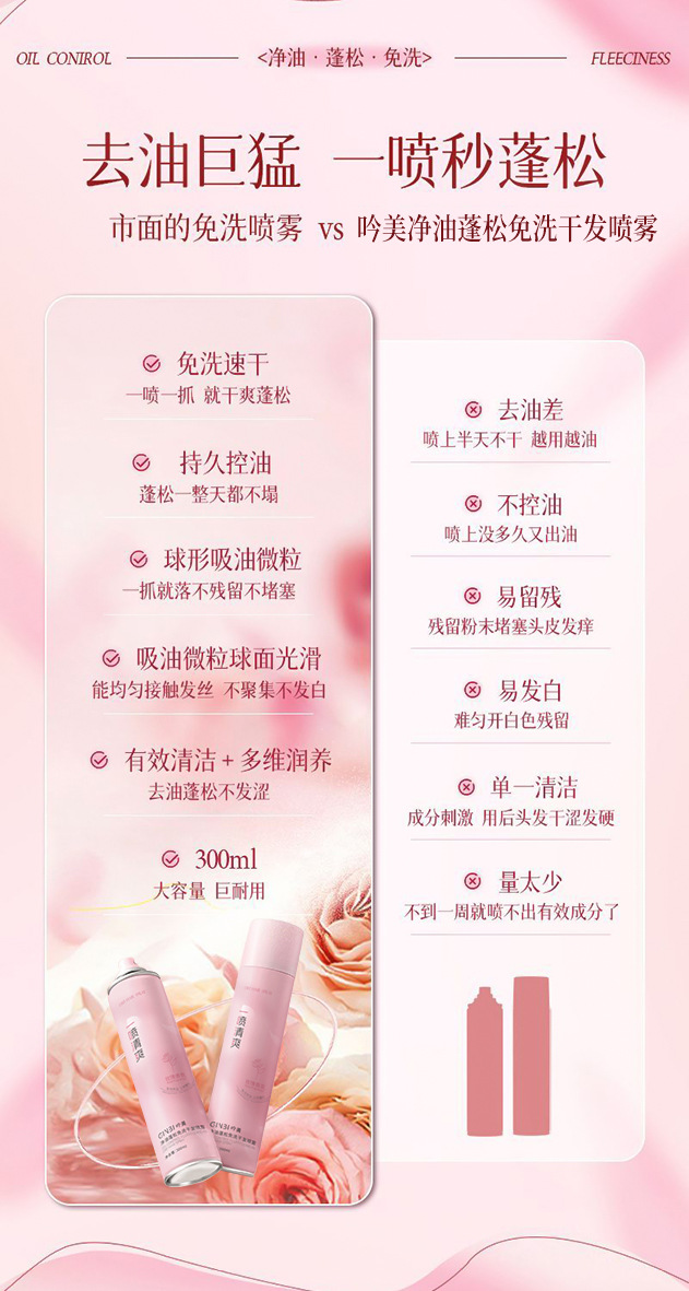 Yinmei Pure Oil Fluffy несмываемый спрей для сухих волос [аромат розы]; Yinmei Pure Oil Пушистый сухой спрей для волос [Аромат жасмина]