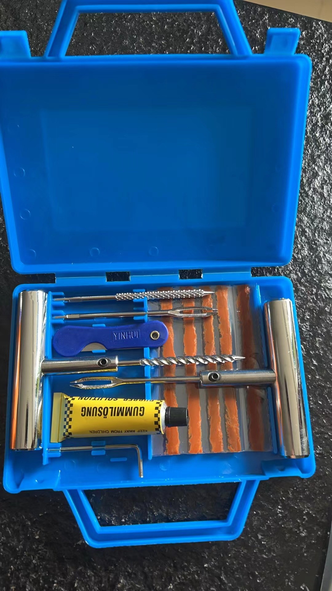 Набор инструментов для ремонта металлических шин [металлический ящик]; Желто-черный набор из 4 предметов [карточная упаковка]; Новый инструмент для ремонта шин.; Лента для ремонта шин