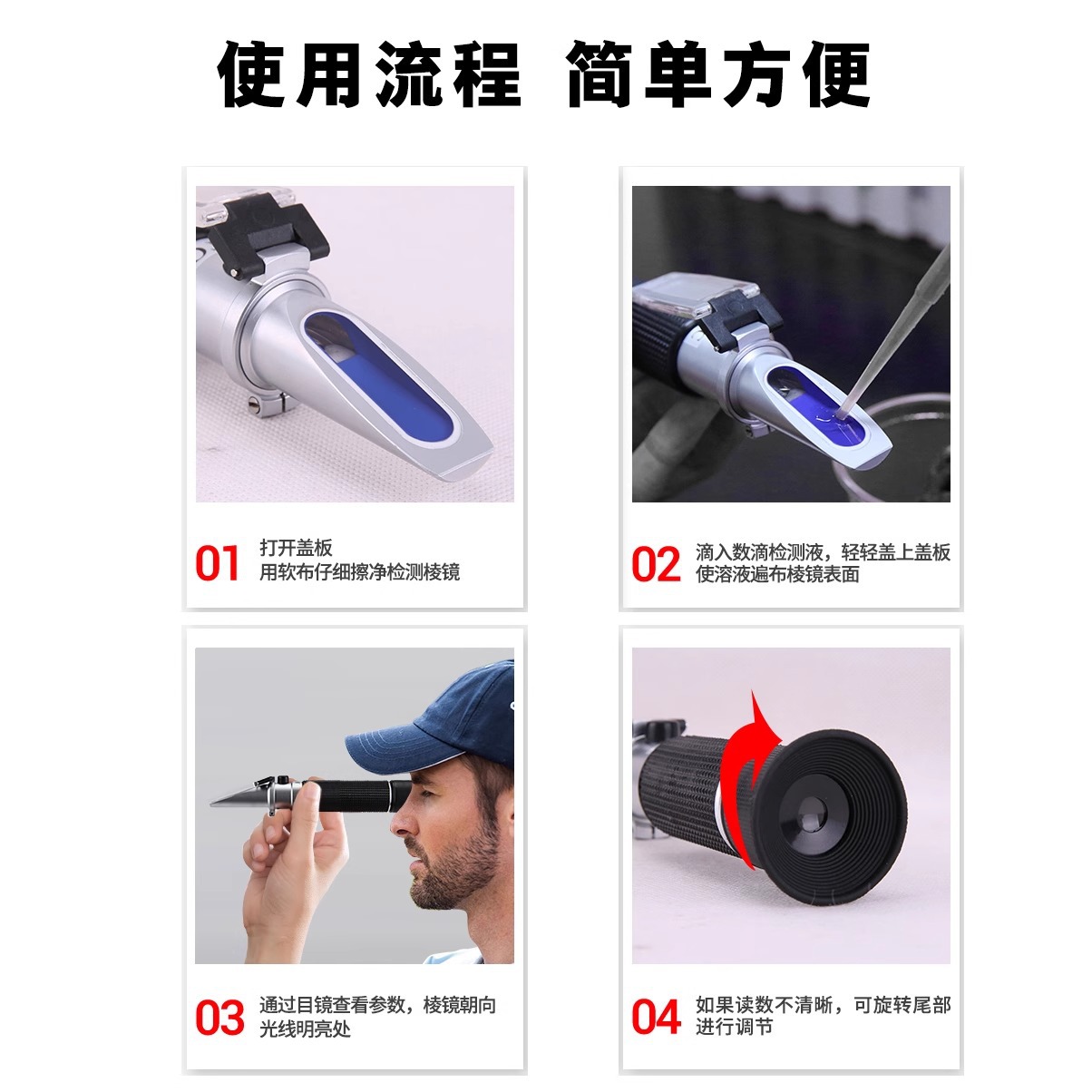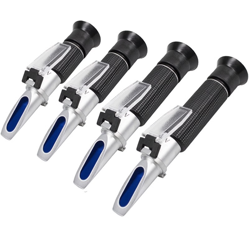 0–10 % содержание фруктового сахара/концентрация рабочей жидкости; 0–20 % содержания фруктового сахара/концентрации рабочей жидкости; 0–32 % содержание фруктового сахара/концентрация рабочей жидкости (материал корпуса из алюминия); 0–32 % содержание фруктового сахара/концентрация рабочей жидкости; 0–50 % содержания фруктового сахара/концентрации рабочей жидкости; 0–80 % содержания фруктового сахара/концентрация рабочей жидкости; 0–90 % содержания фруктового сахара/концентрации рабочей жидкости; Концентрация эмульсии 0–15 %; Концентрация соевого молока и содержание сахара 0–25 %.; 58-90% содержание сахара по Бриксу в меде, влажность (калибровочное масло в комплекте); 0-28% солености; Удельный вес зоны солености 0–100 ‰ (морское хозяйство); 414A Измеритель температуры замерзания этиленгликоля и пропиленгликоля (алюминиевый материал); 414A Измеритель температуры замерзания воды в метаноловом стекле (медное покрытие); 415 измеритель концентрации этиленгликоля, измеритель точки замерзания; 417 метаноловый стеклянный измеритель температуры замерзания воды