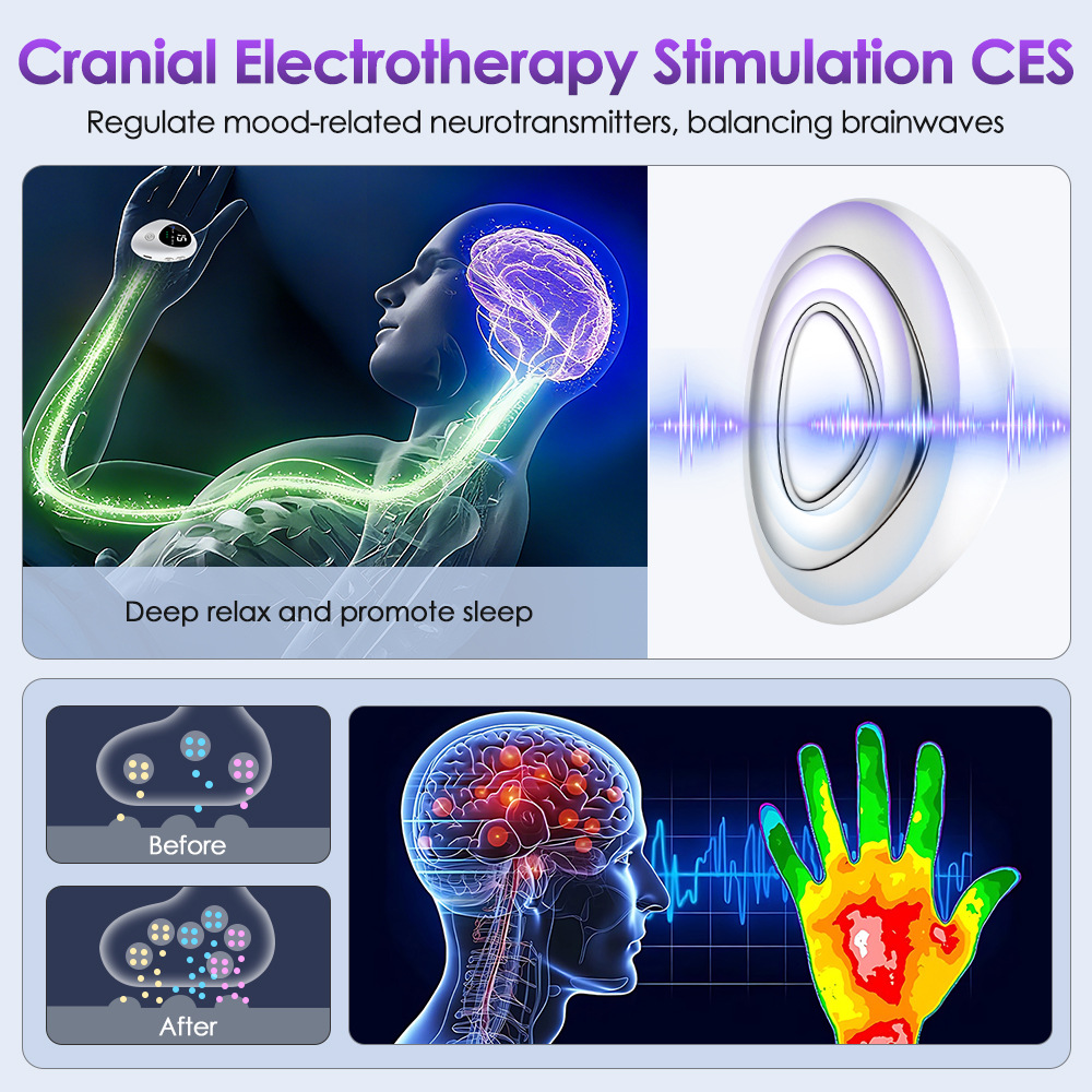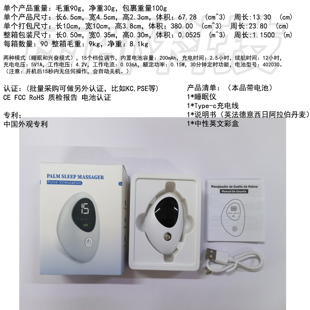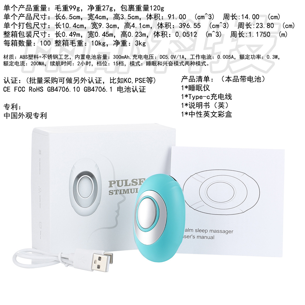 2.手持舒缓仪,EMS微电流调节,缓解压力,轻松入睡,物理调节,不伤身,无副作用,无依赖性,辅助睡眠;