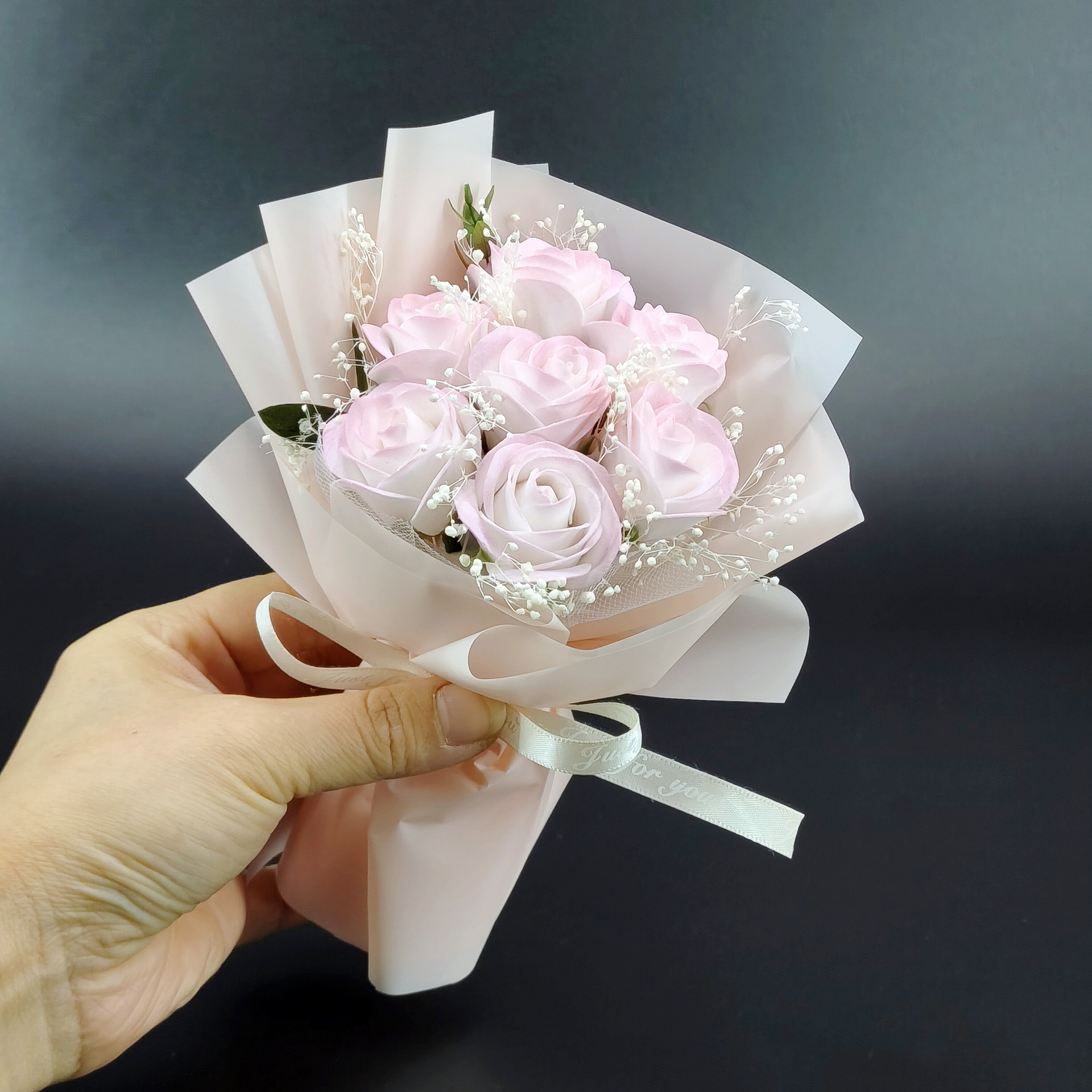 Мыльный букет роз, подарок на выпускной, сухоцветы, маленький свежий декор, сувенирный мини-букет, бессмертный цветок