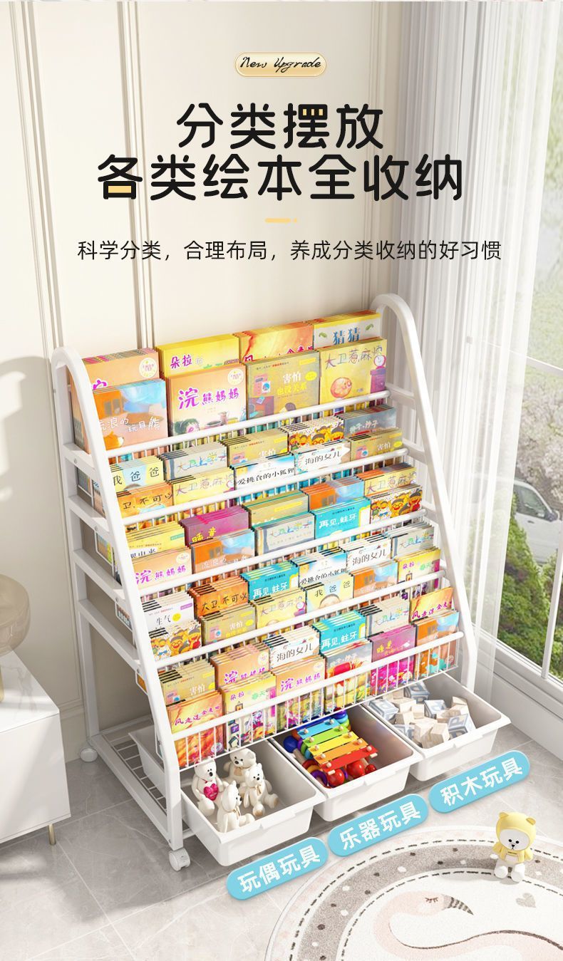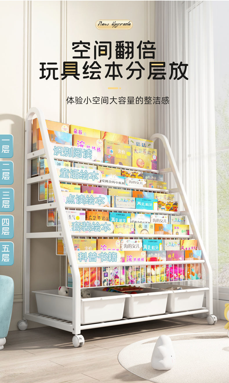 Детская полка для хранения игрушек, многослойная классификация, напольная полка для хранения детских закусок, книг, ящик для хранения книг с картинками, книжный шкаф