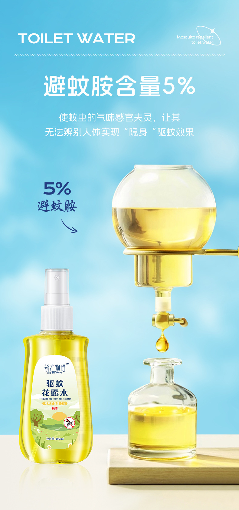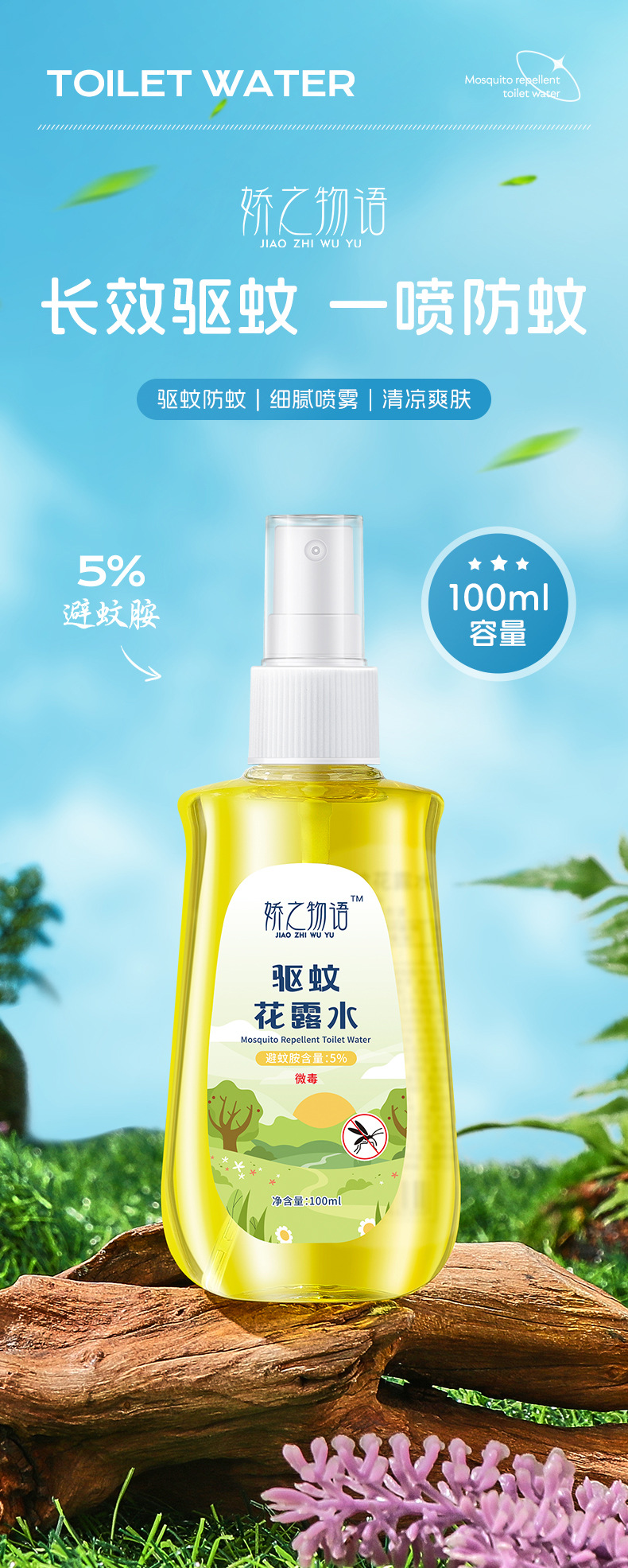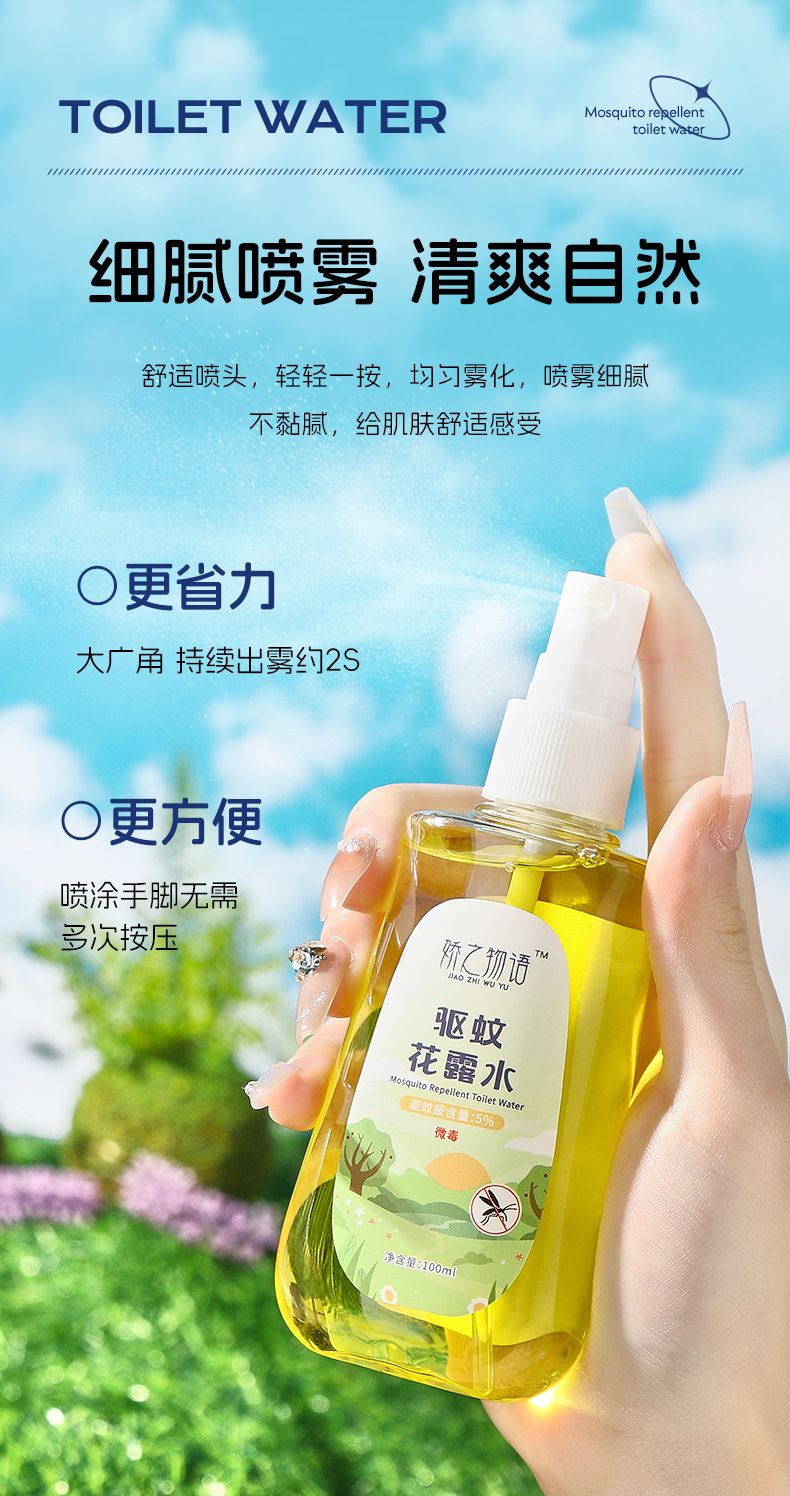 Оптовая продажа Jiaoji история комаров туалетная вода на открытом воздухе прохладная защита от укусов комаров жидкость от комаров репеллент спрей 100 мл