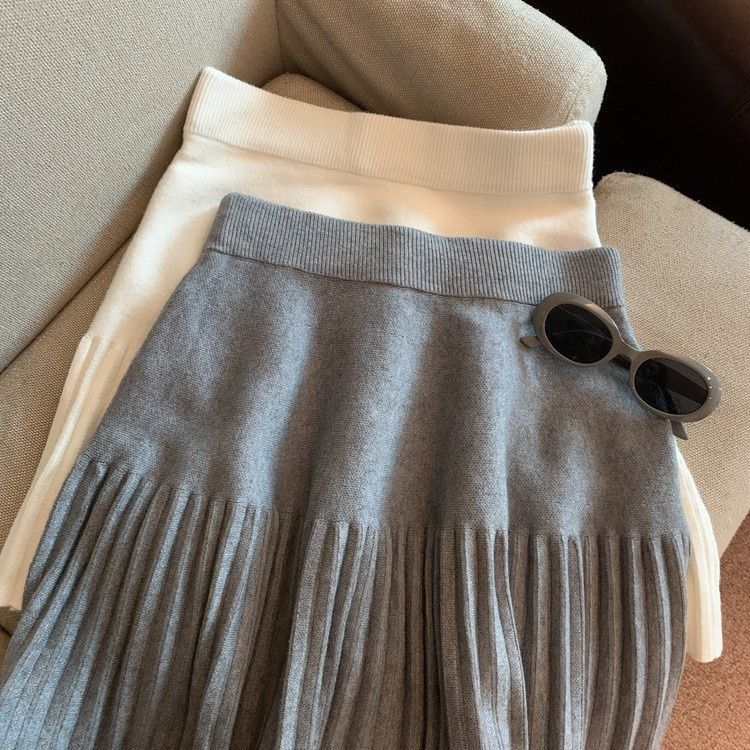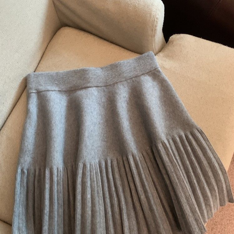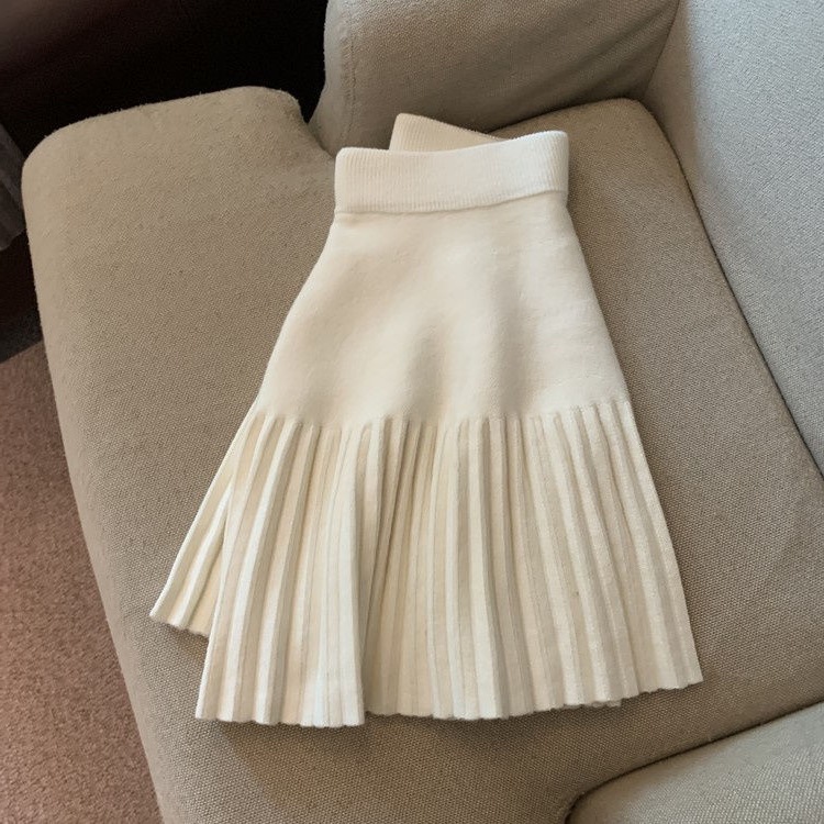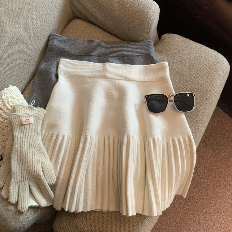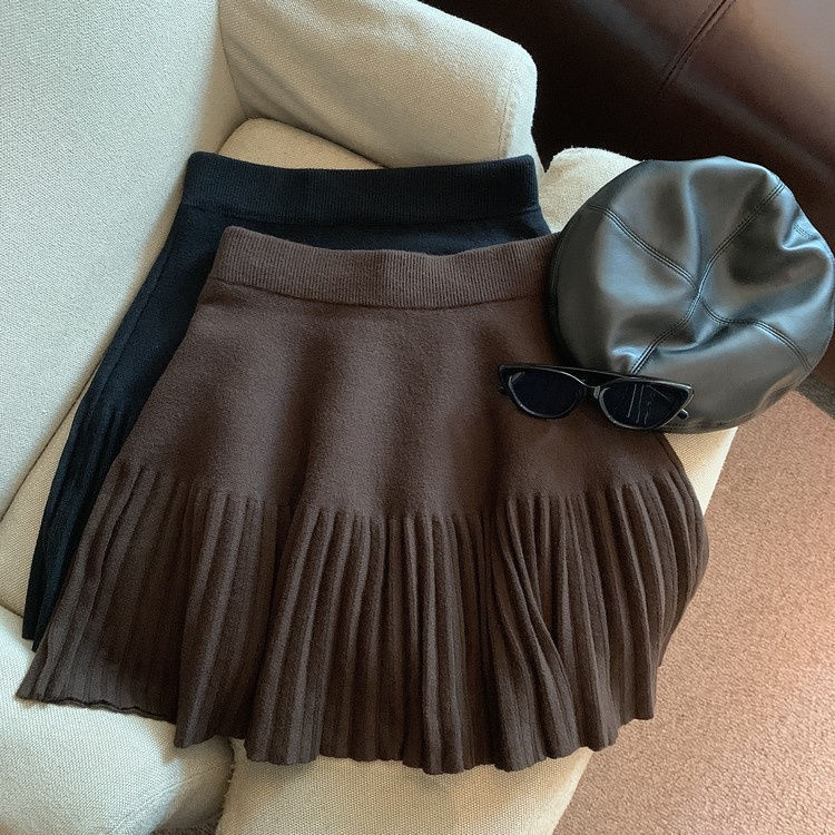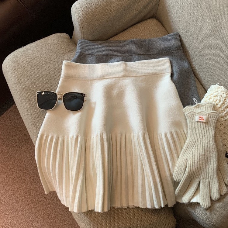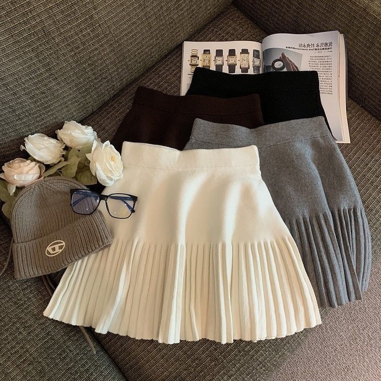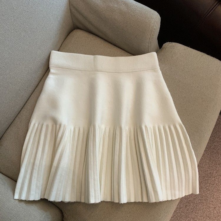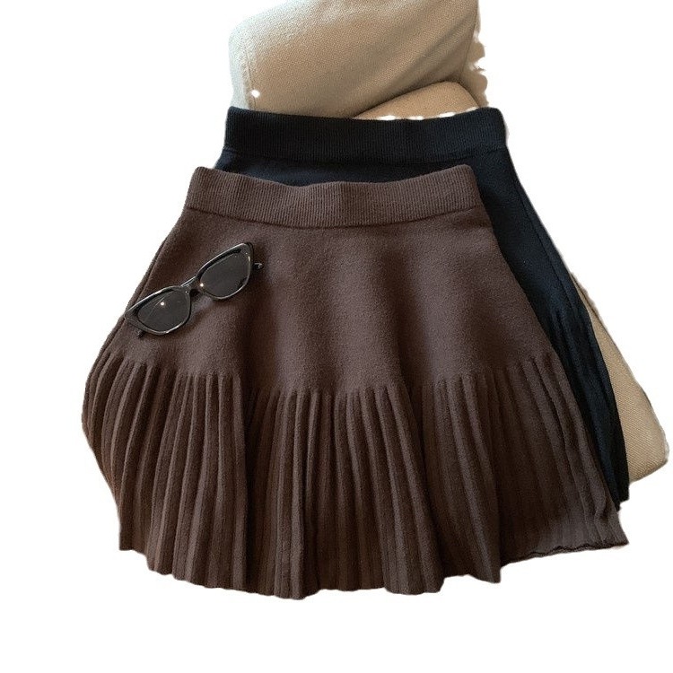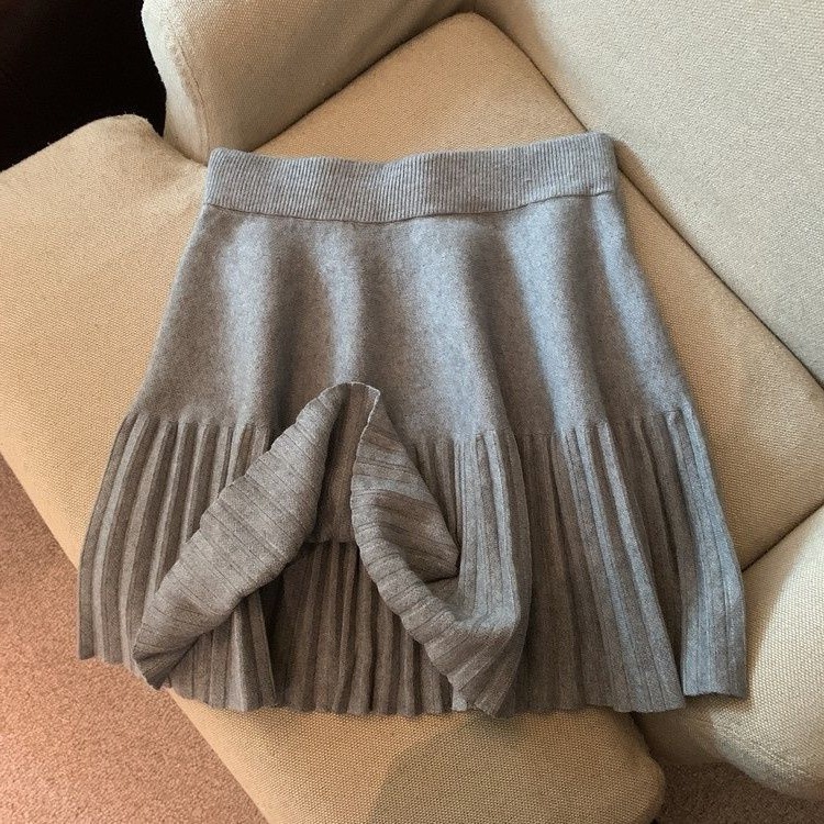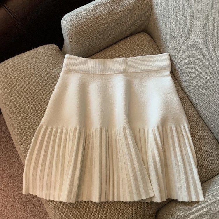 2024 осень-зима абрикосовый цвет нежная мягкая вощеная вязаная короткая юбка универсальная юбка-трапеция популярная модная плиссированная юбка