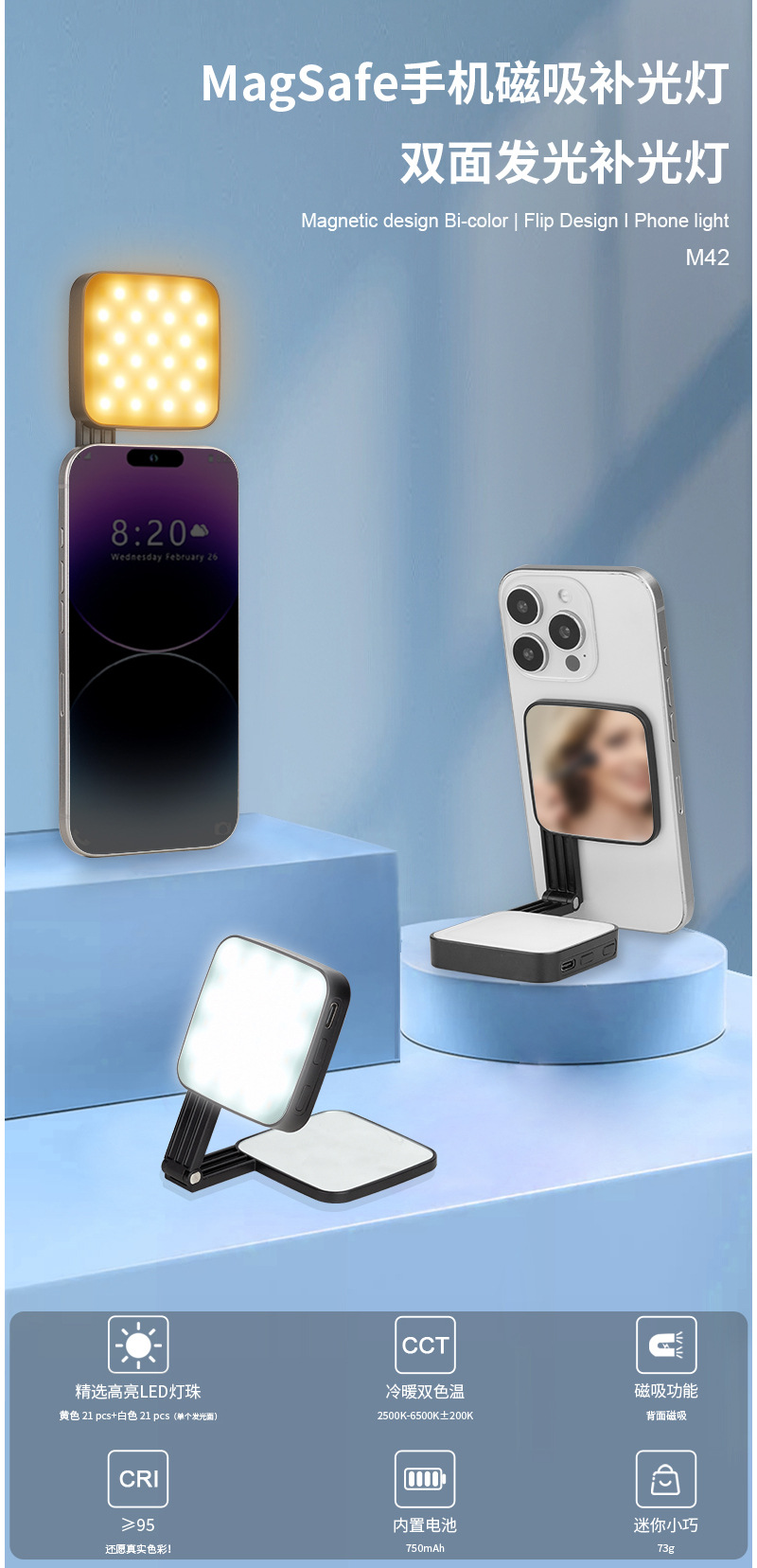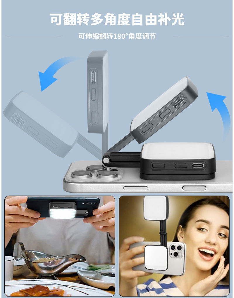 新品自拍美颜手机双面补光灯便携迷你magsafe手机磁吸补光灯