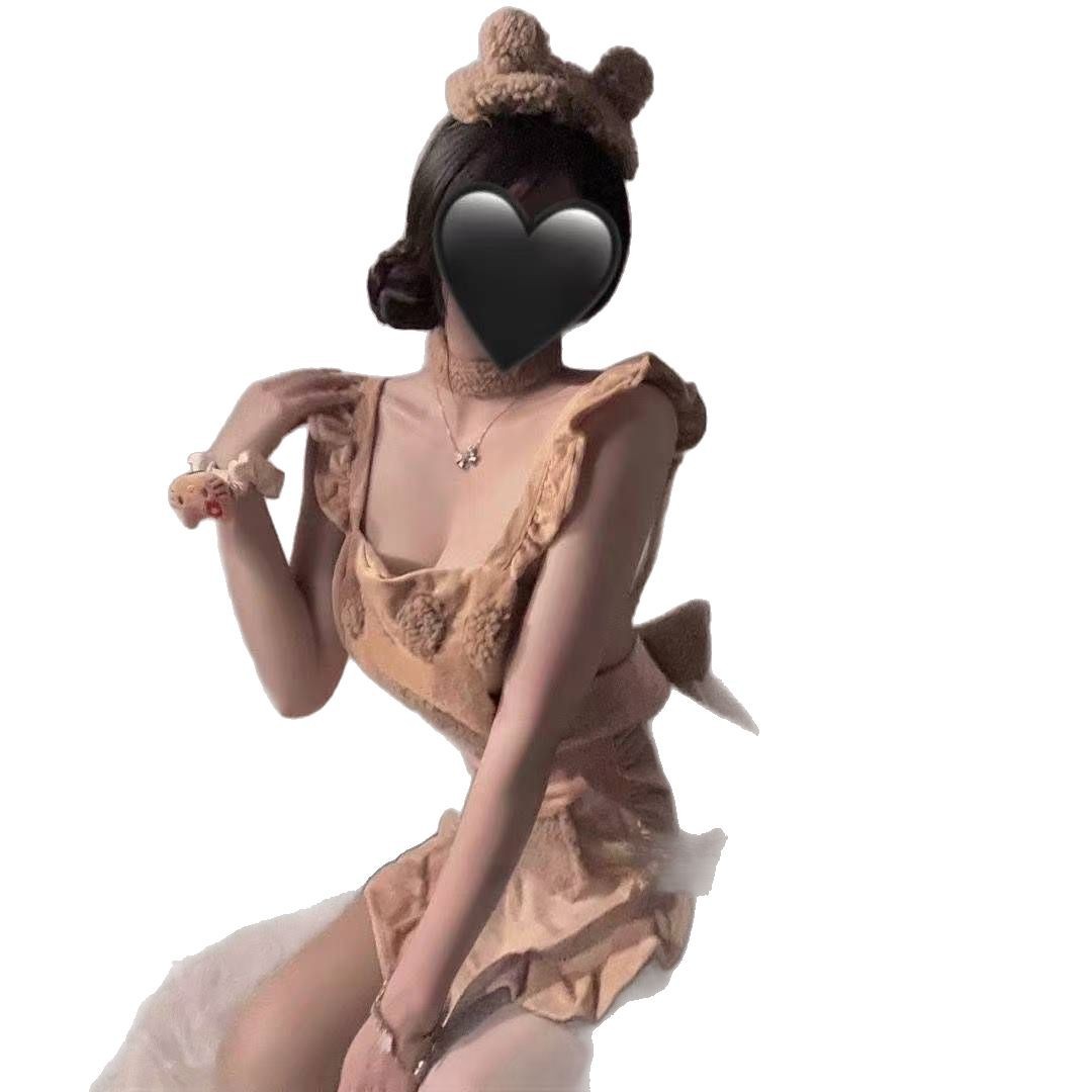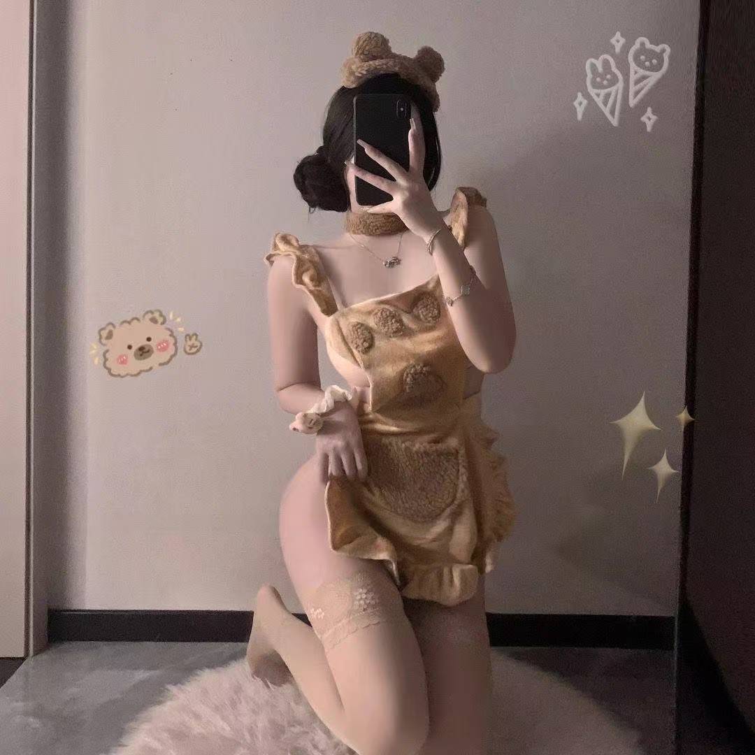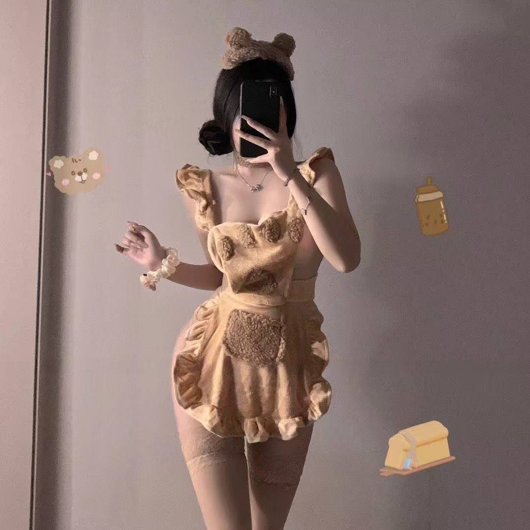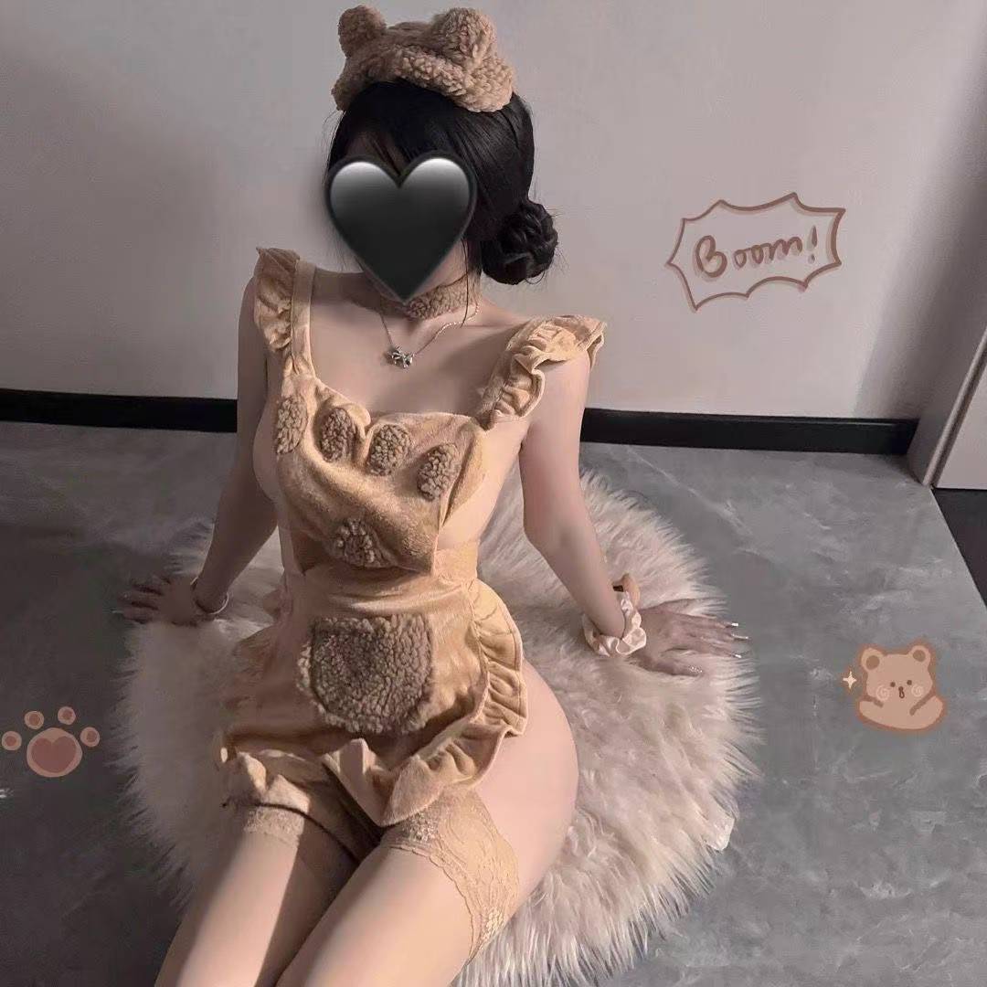 Чистая соблазнительная эротическая нижнее белье сексуальная бархатная кружева, вырезая милый плюшевый медведь горничная униформа костюм