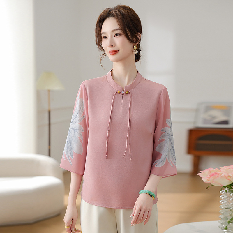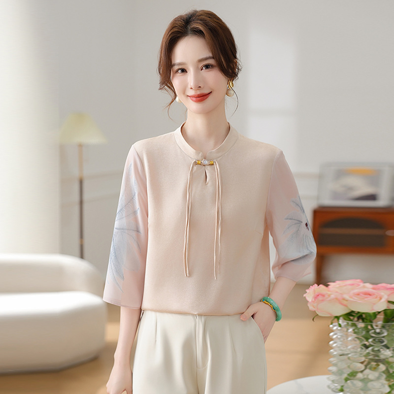 Новая китайская мама весной и летом рубашка 2025 новая женская одежда среднего возраста