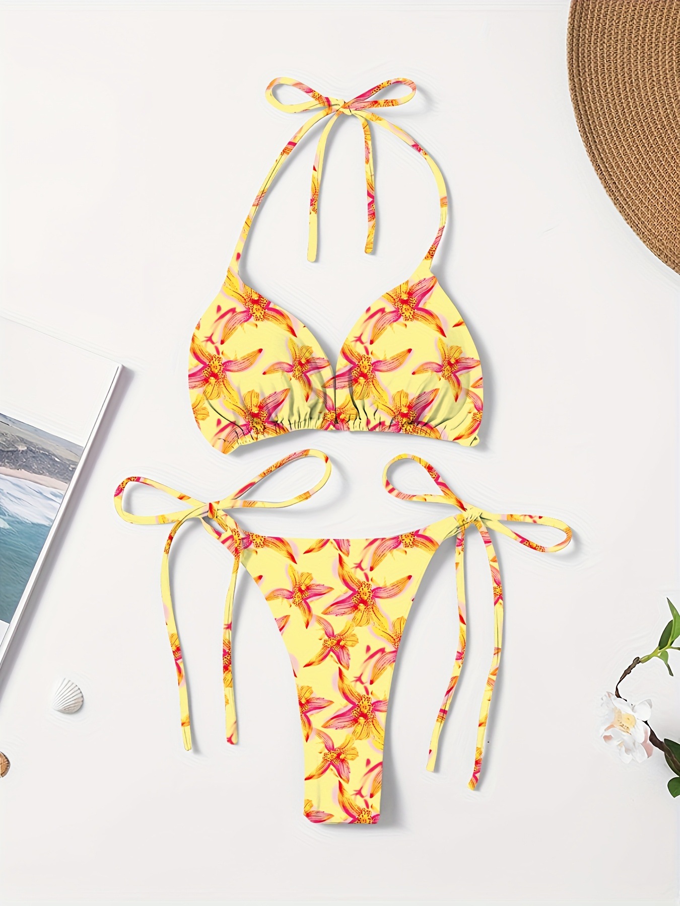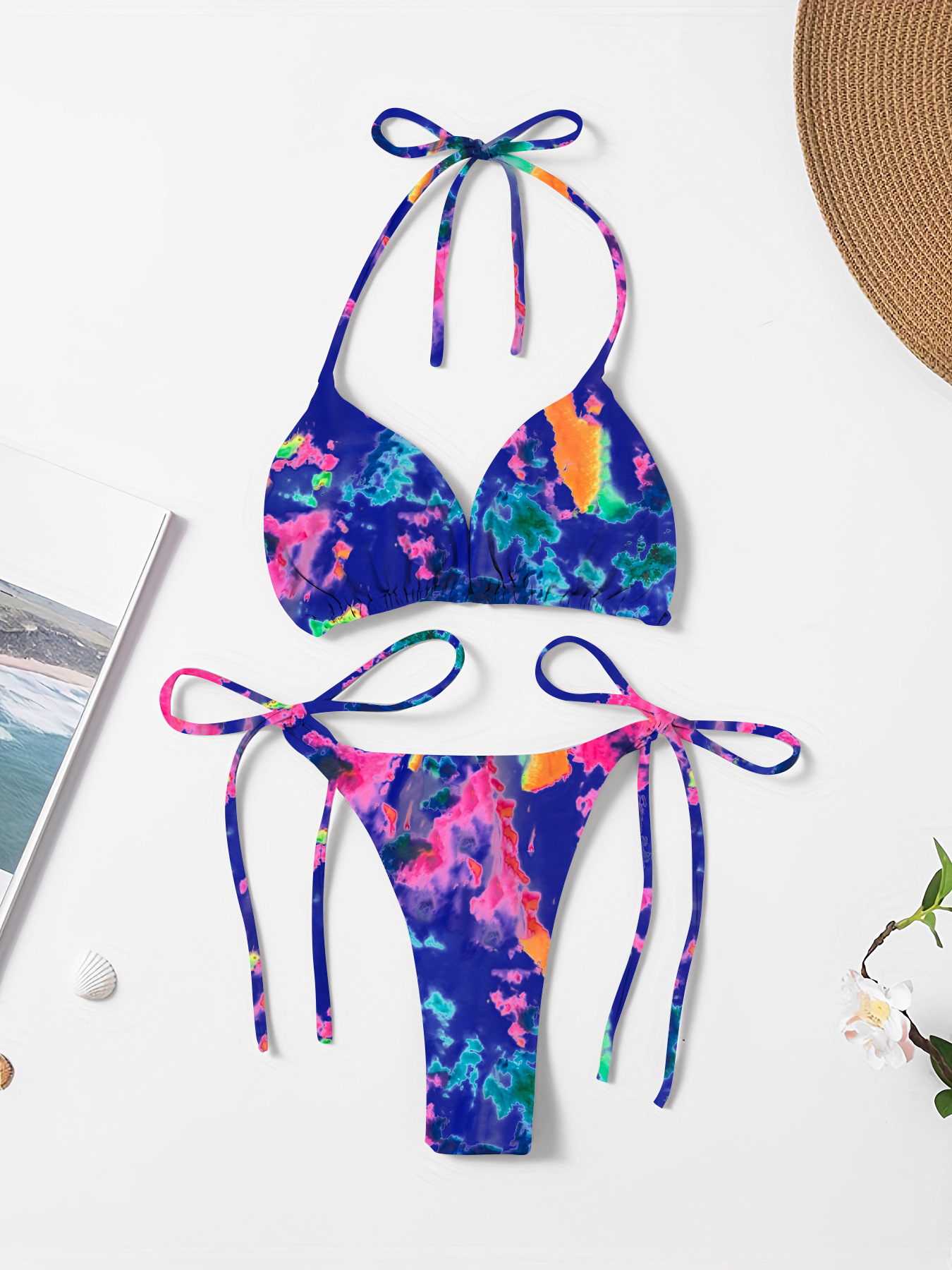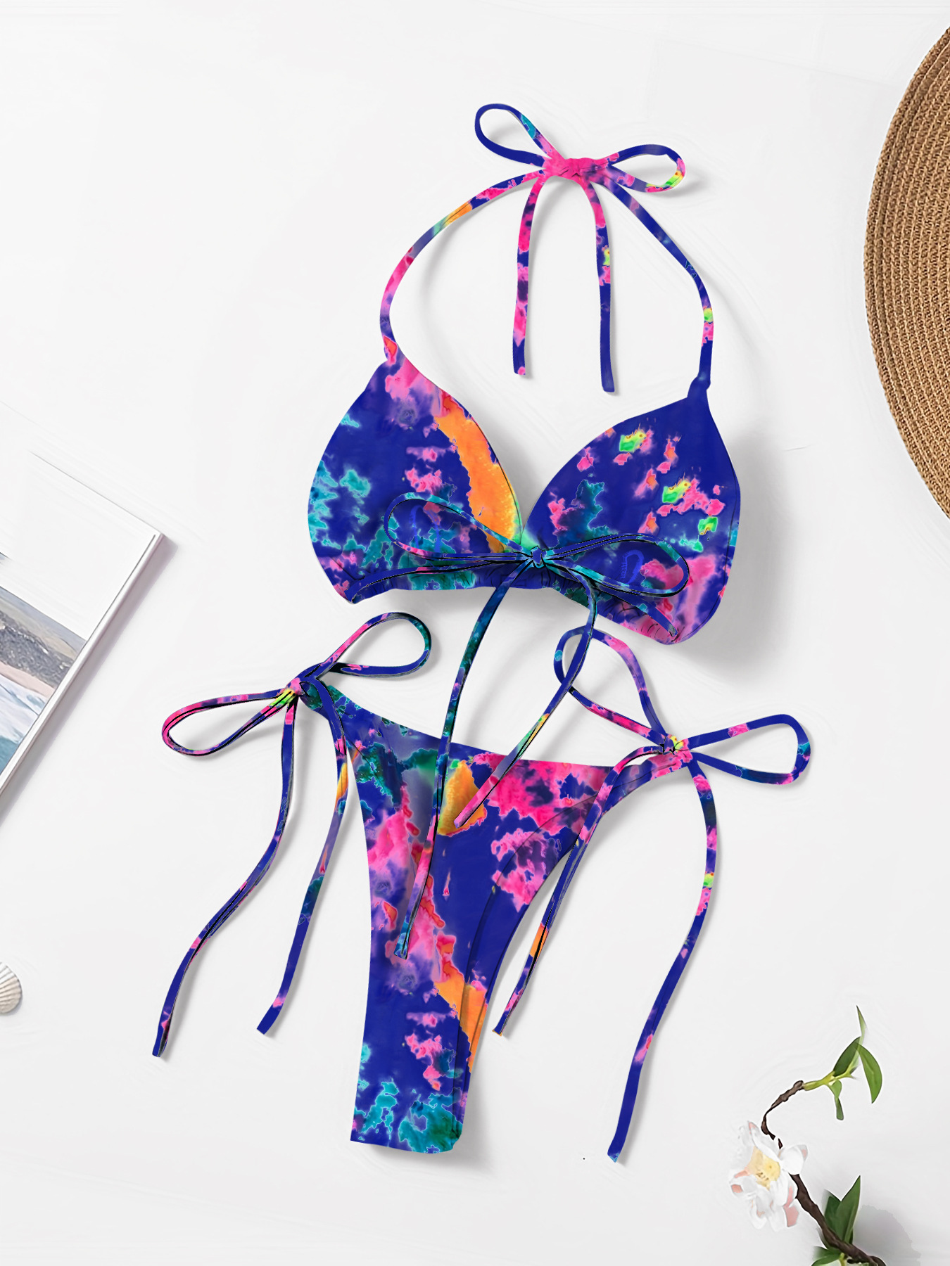 Новый европейско-американский стиль, однотонный, сексуальный, с завязками, для стильных девушек, модный женский купальник-бикини, состоящий из двух частей, облегающий.