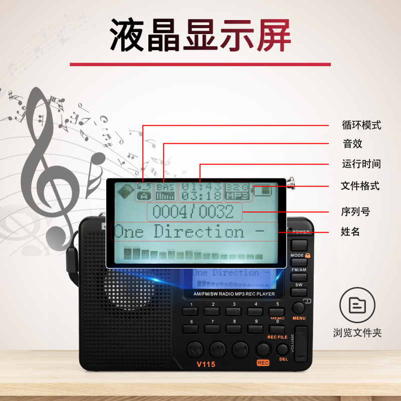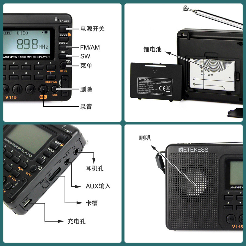 Полнодиапазонный радиорегистратор Retekess V-115 FM/AM/SWMP3, воспроизведение, трансграничная поставка