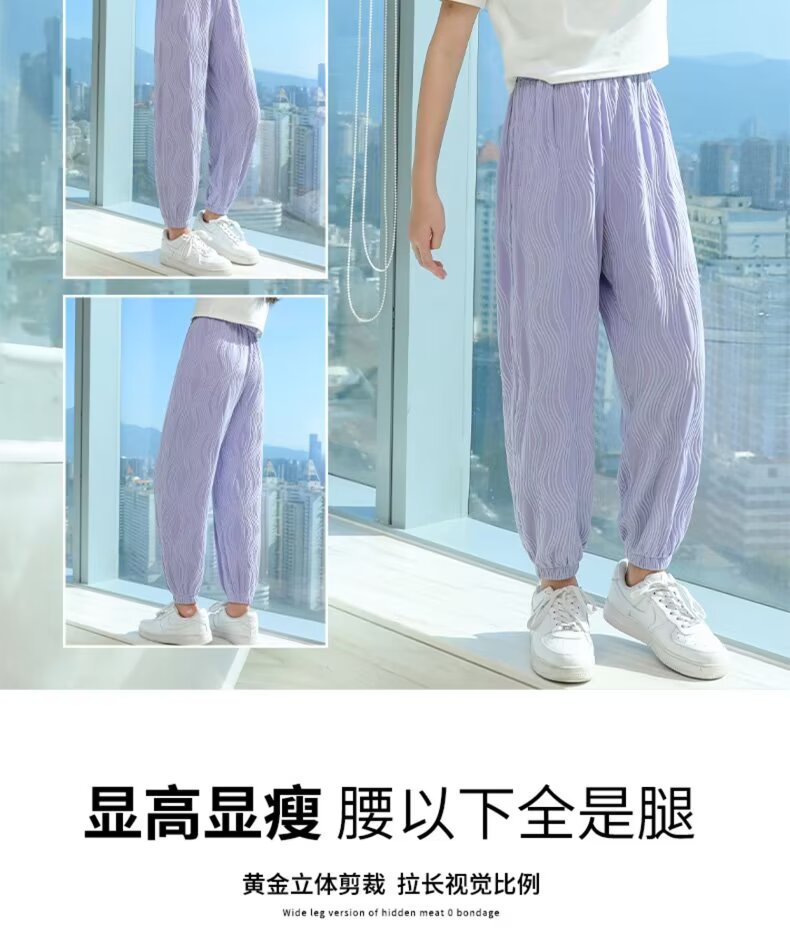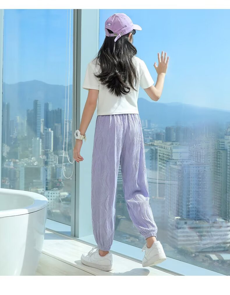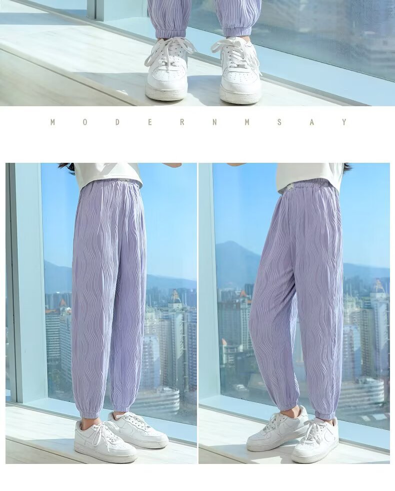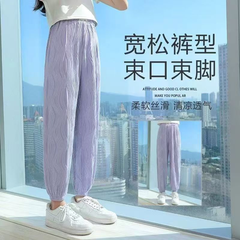 Летние тонкие брюки для девочек, новые стильные свободные брюки из ледяного шелка с защитой от комаров, детские повседневные спортивные брюки на лето